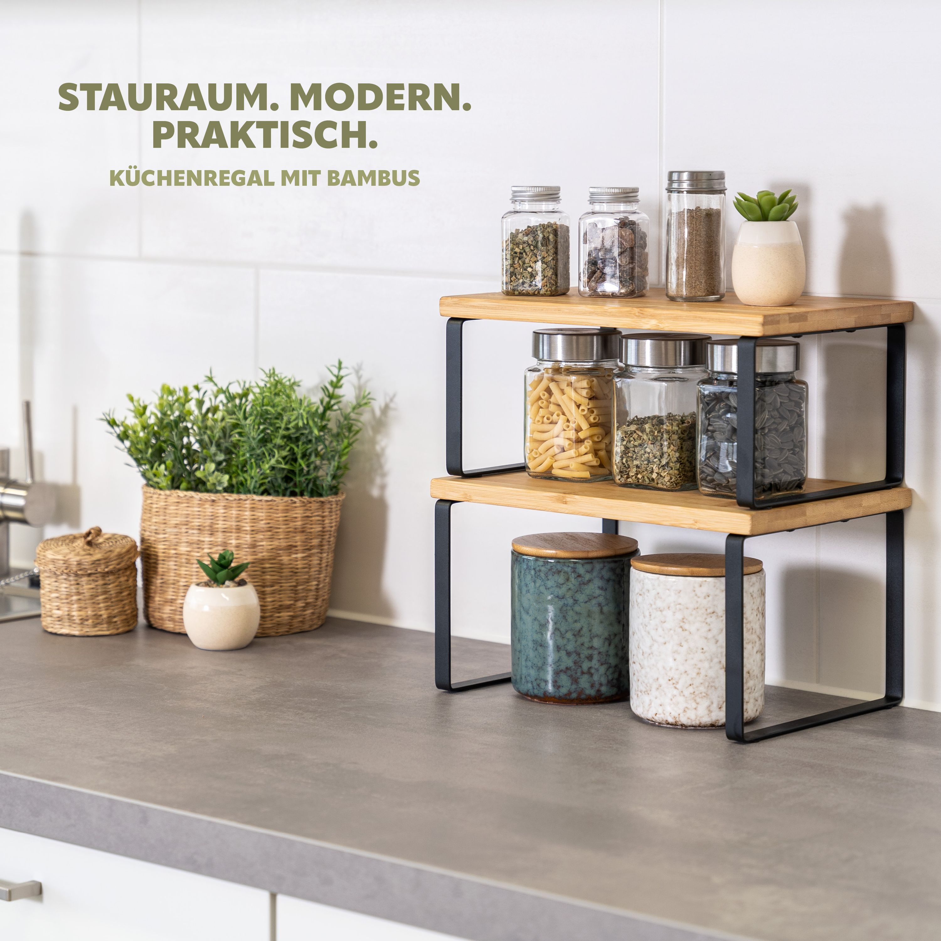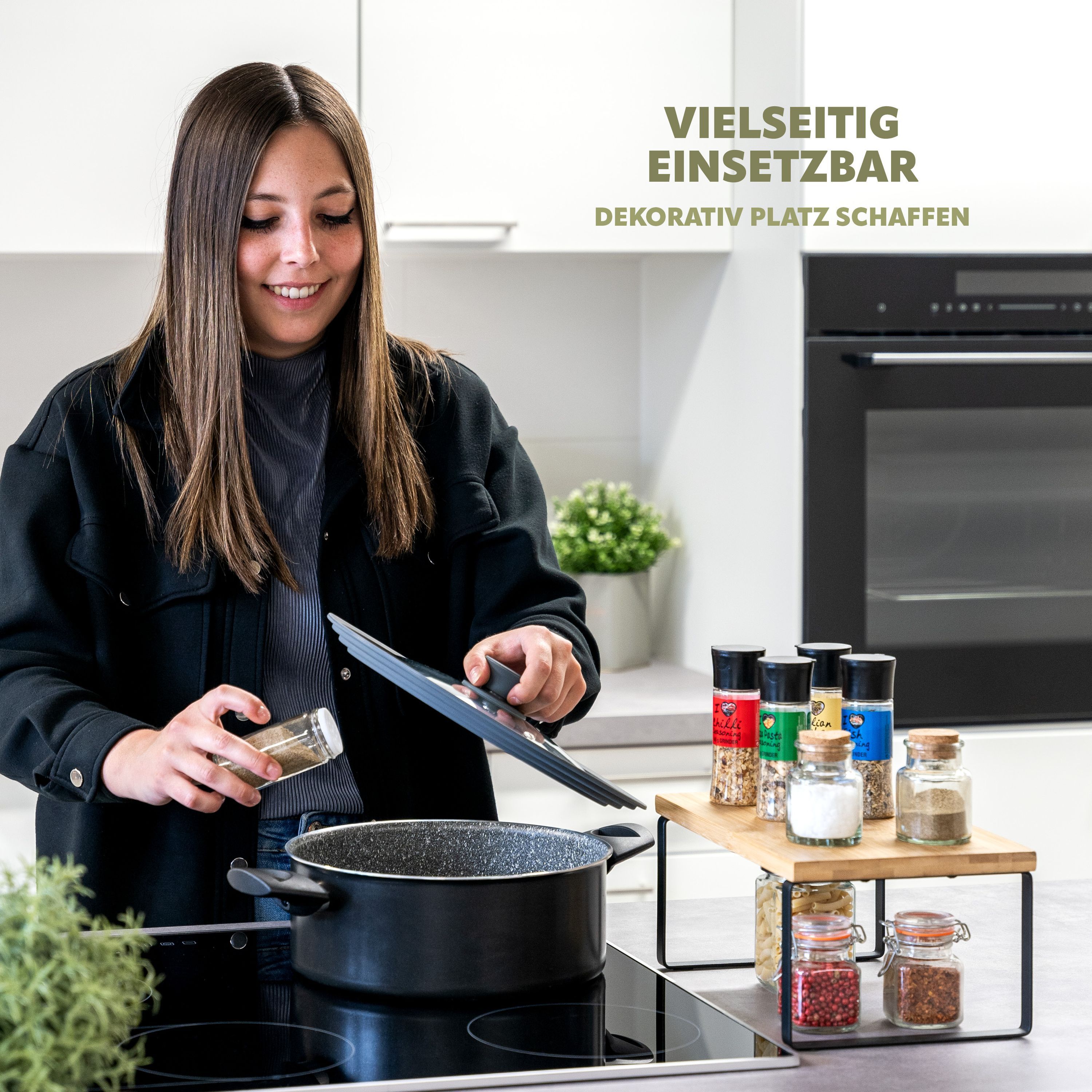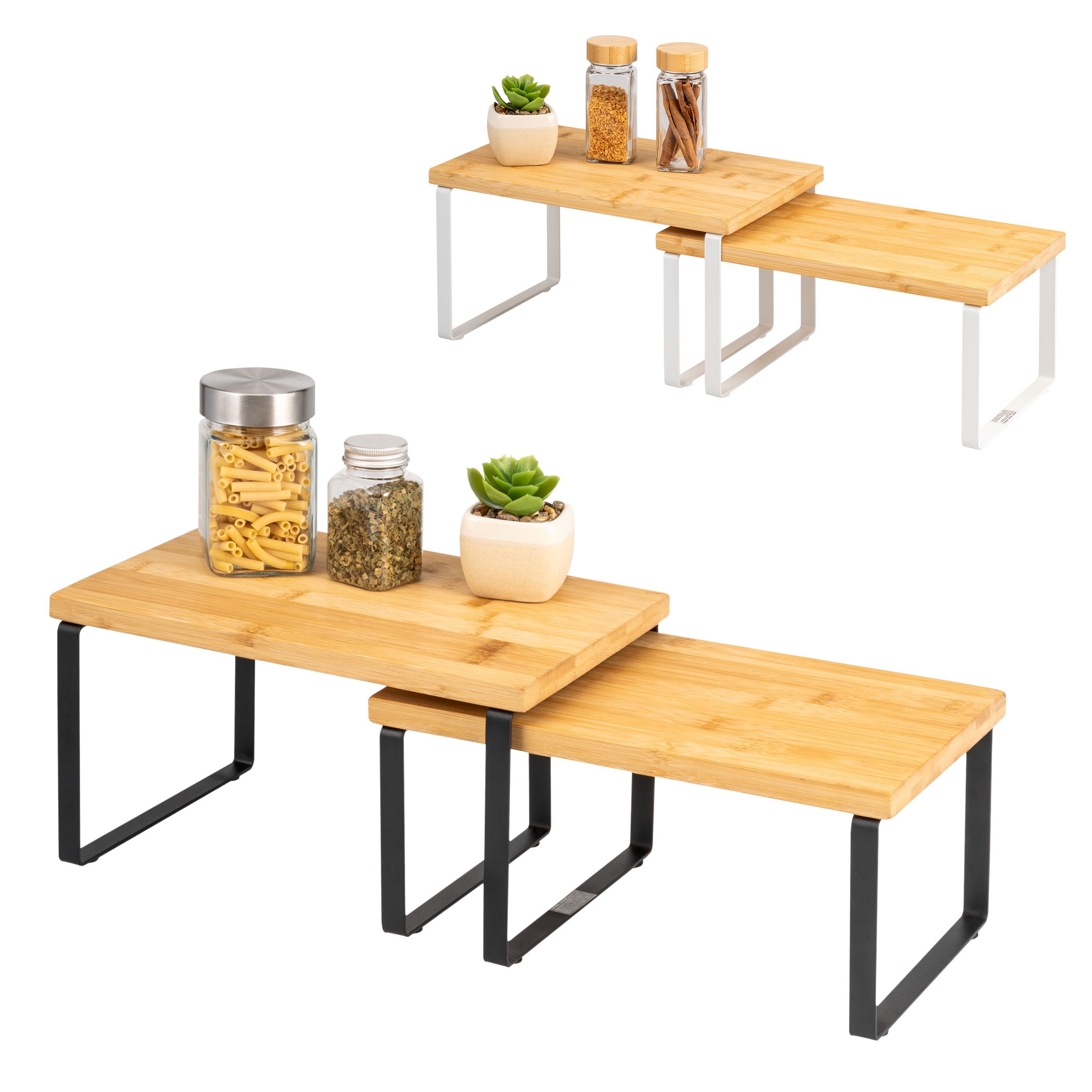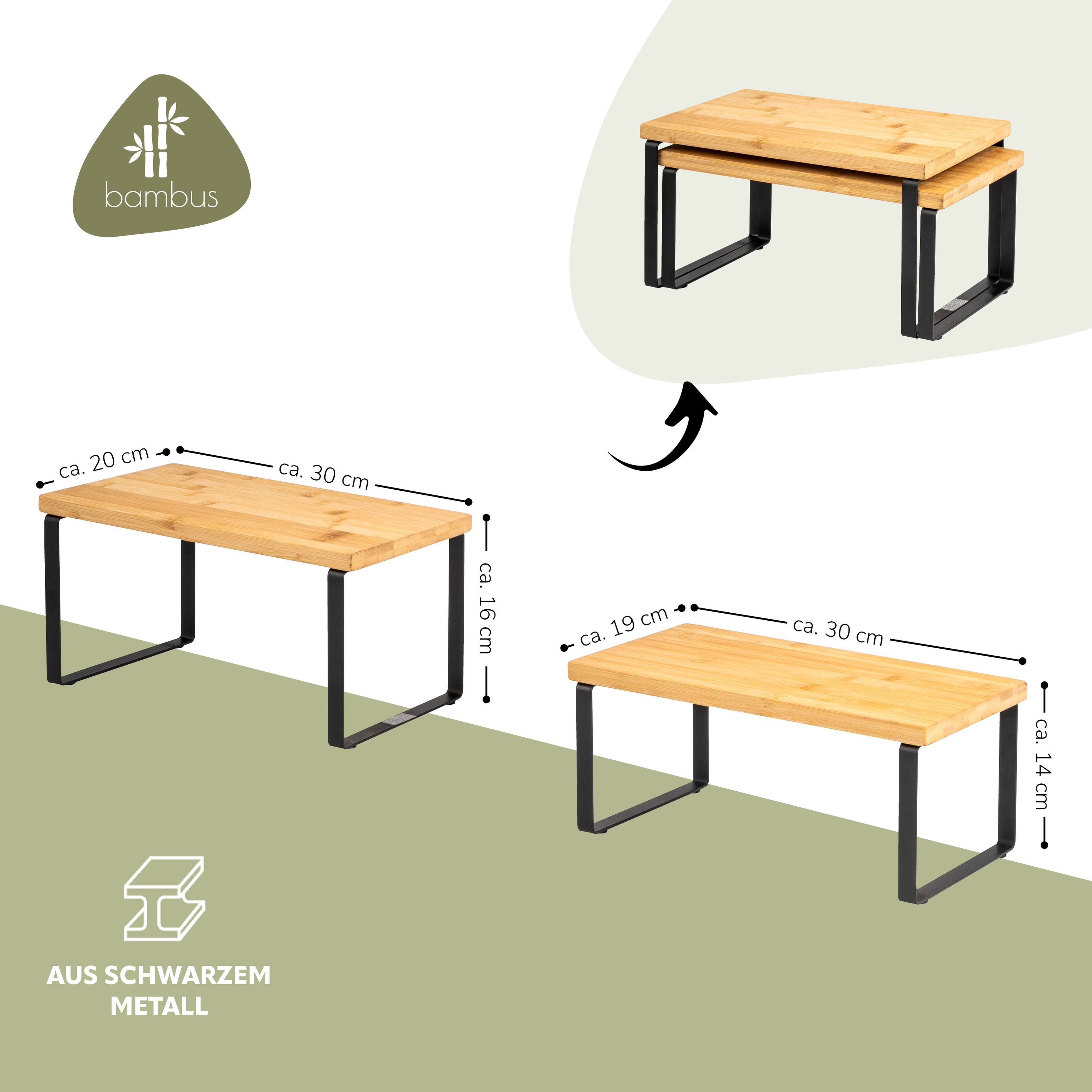 bremermann Gewürzregale 2er Set, Küchenregale aus Bambus und schwarzem Metall