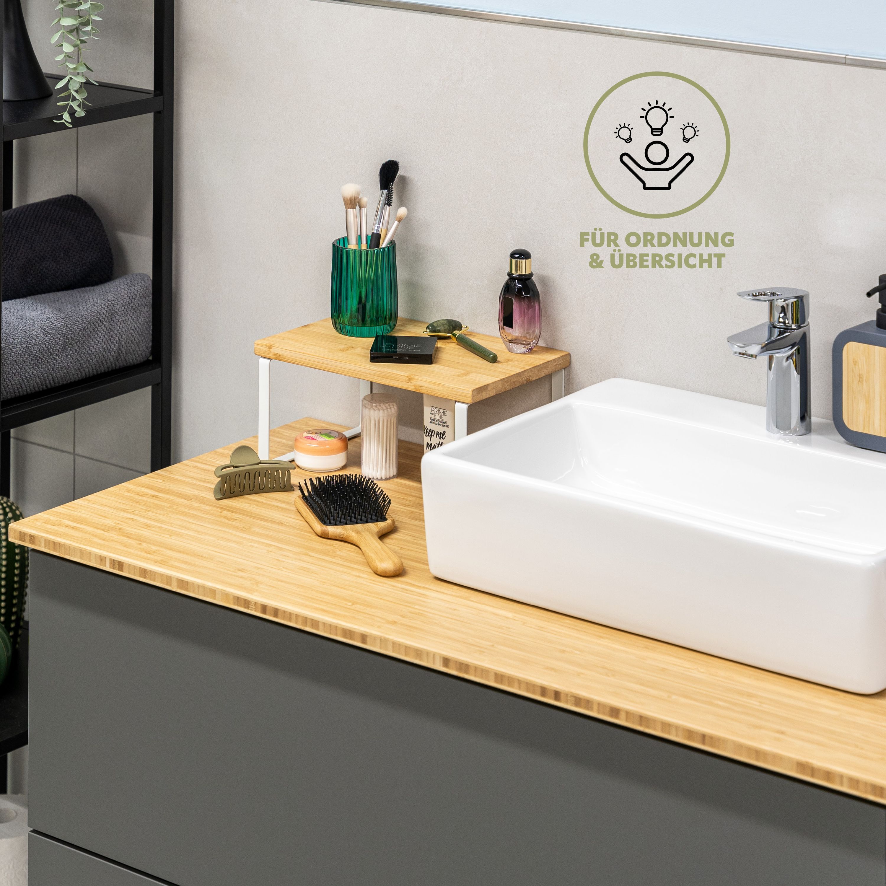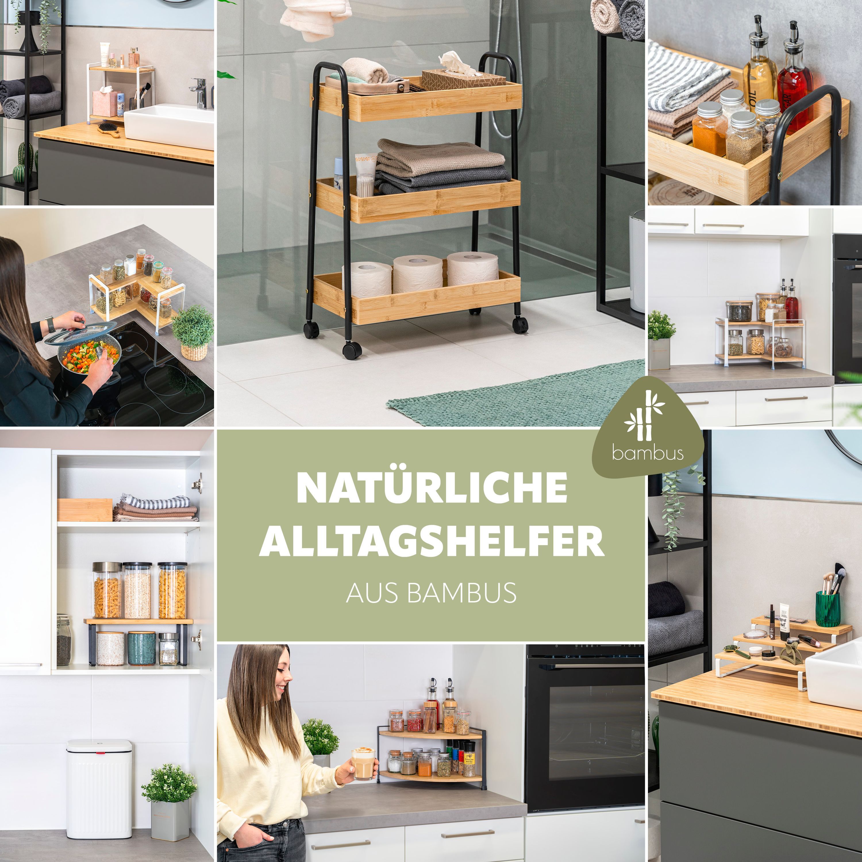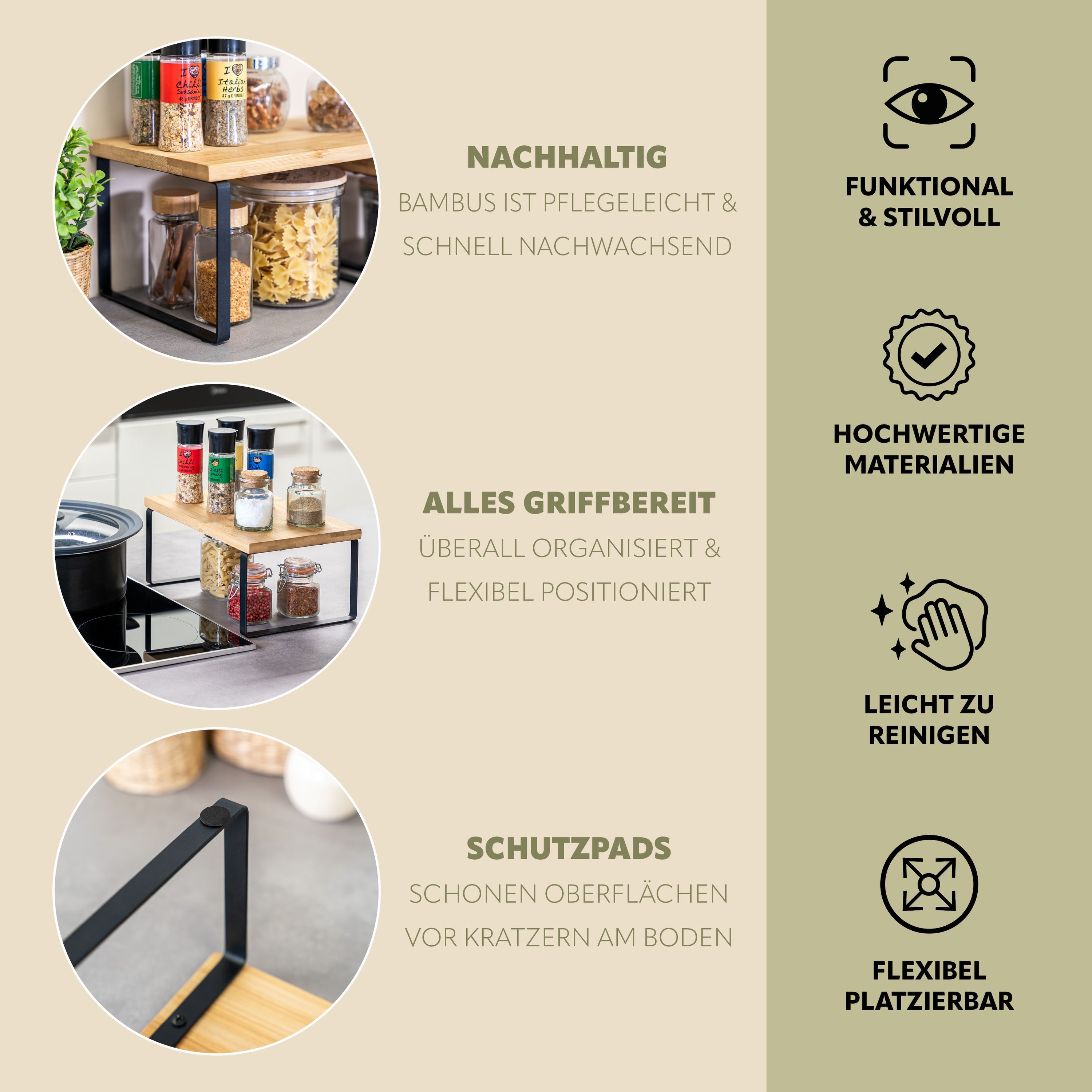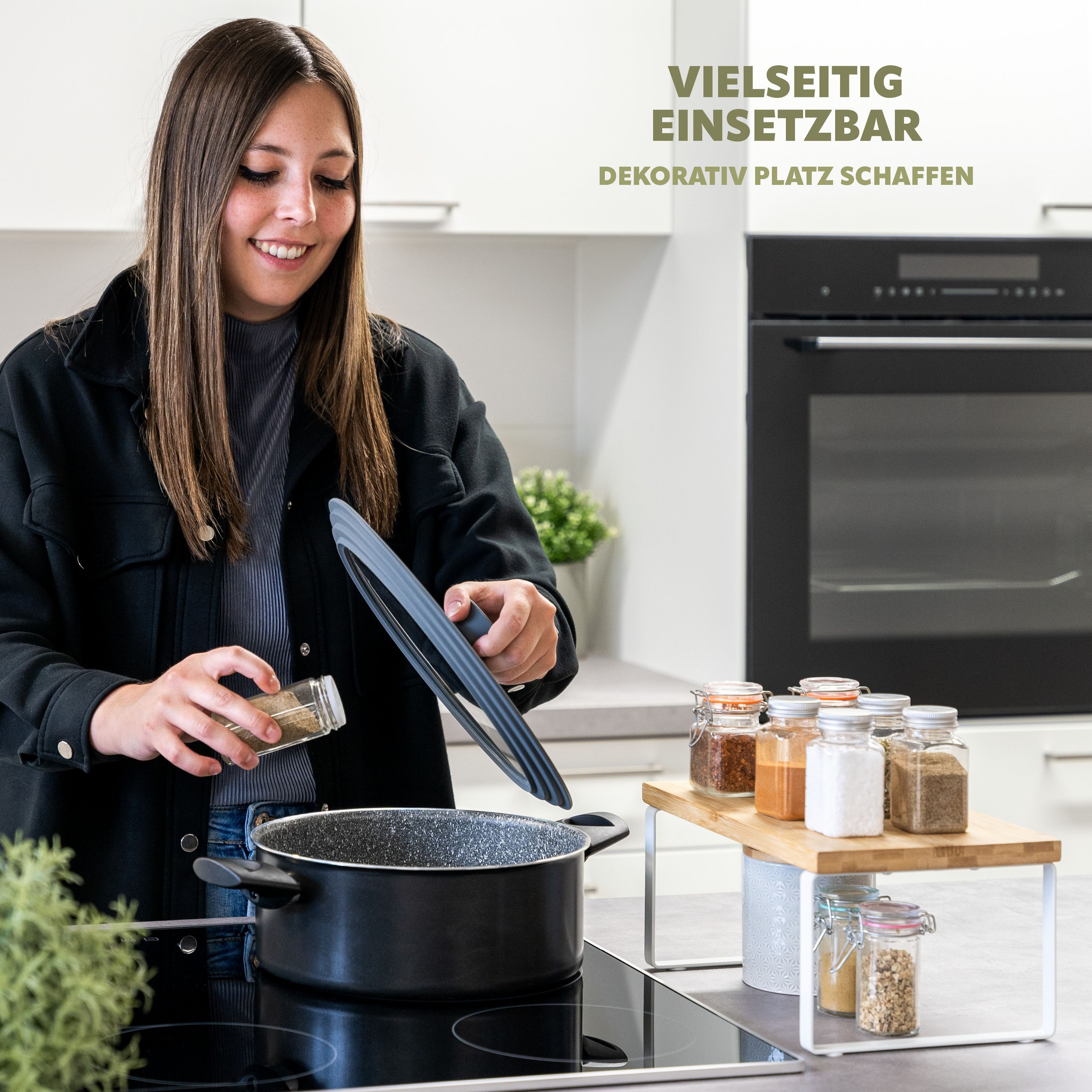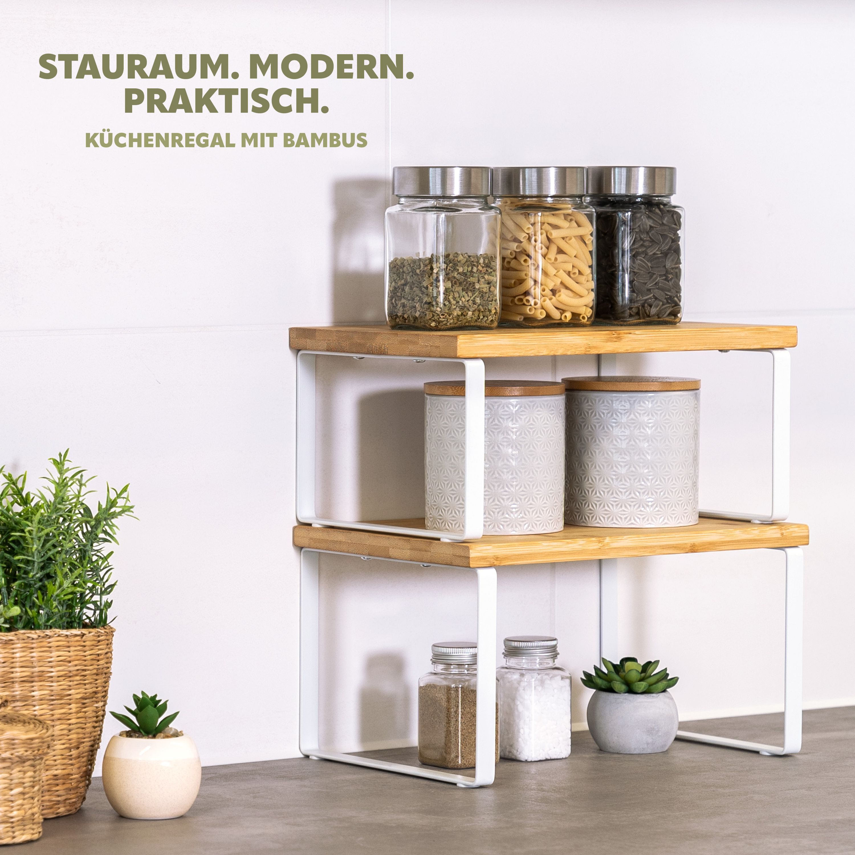 bremermann Gewürzregale 2er Set, Küchenregale aus Bambus und schwarzem Metall