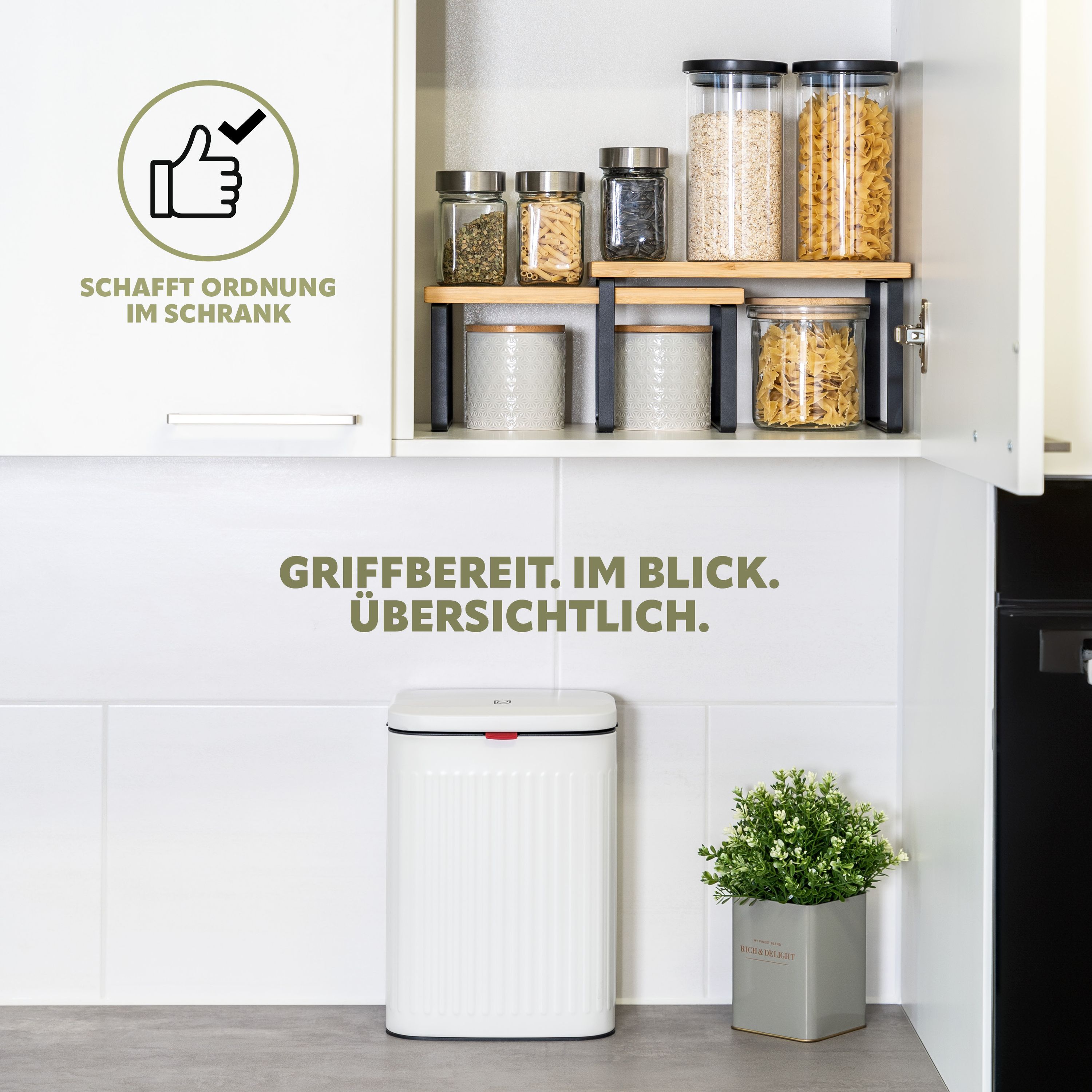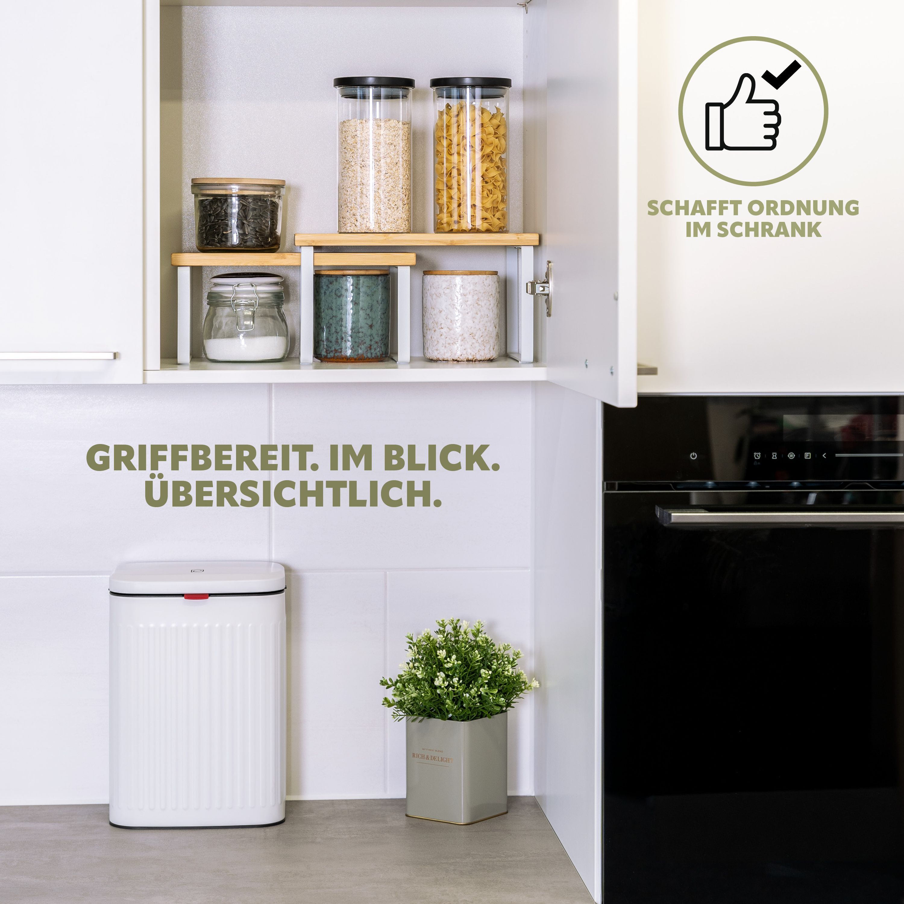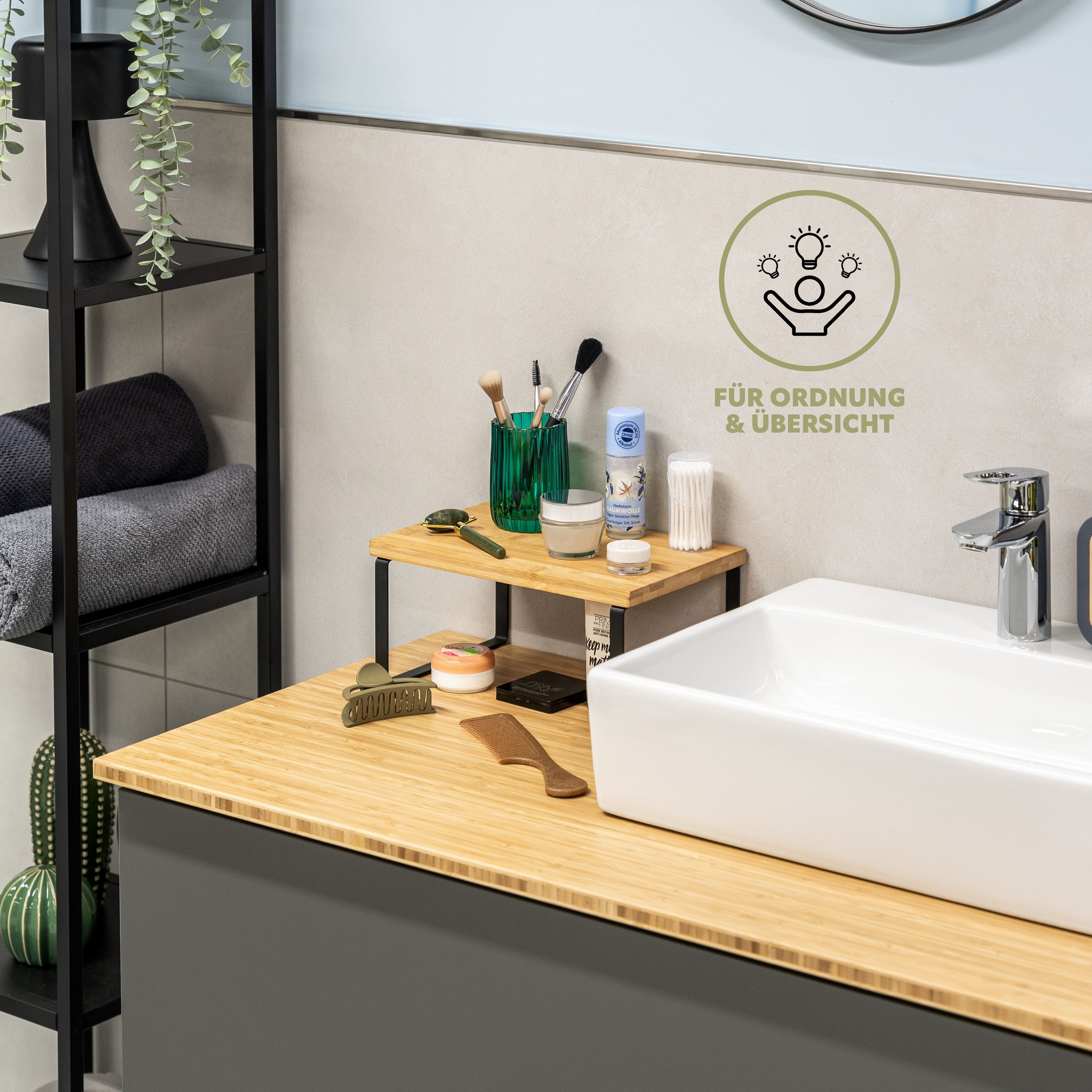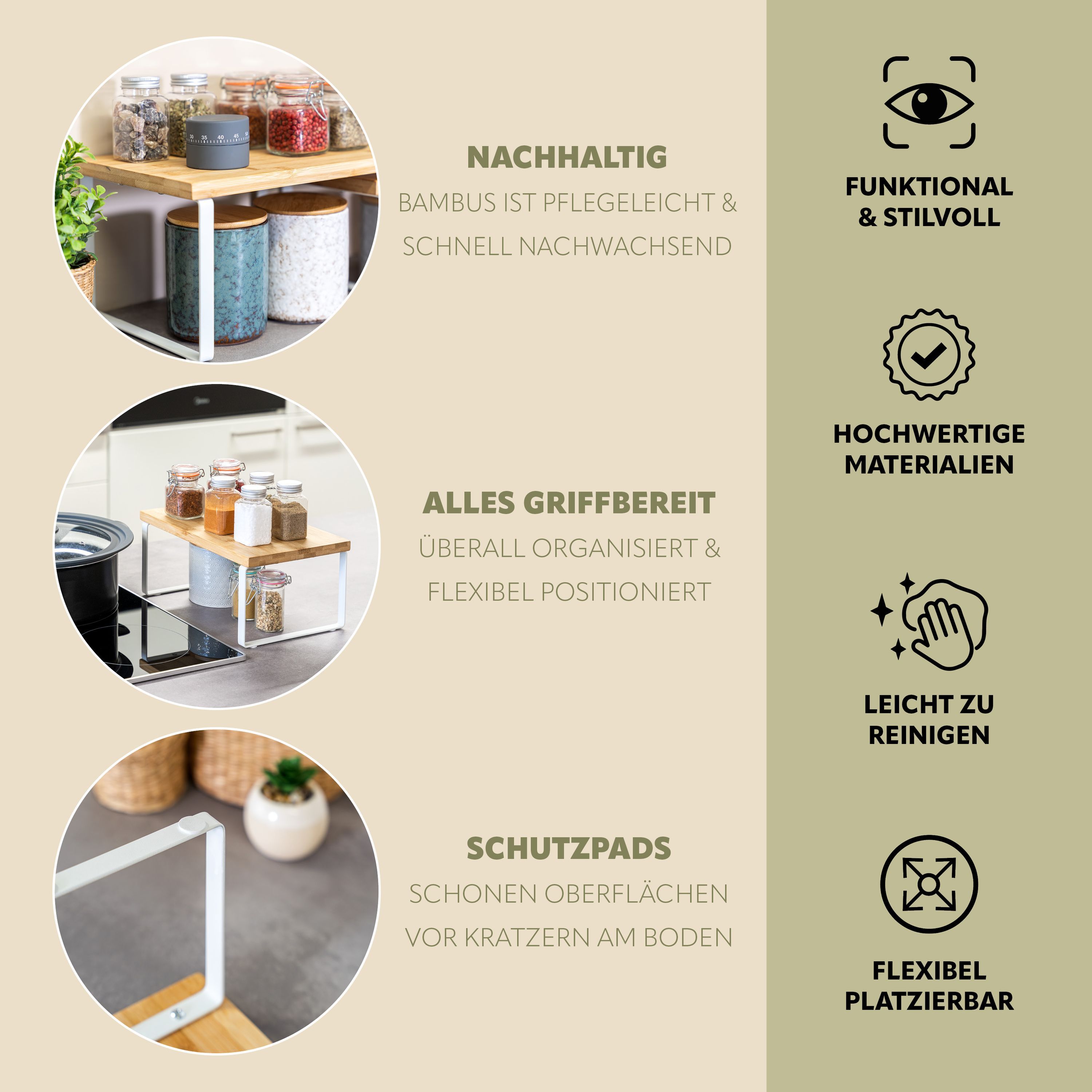 bremermann Gewürzregale 2er Set, Küchenregale aus Bambus und schwarzem Metall