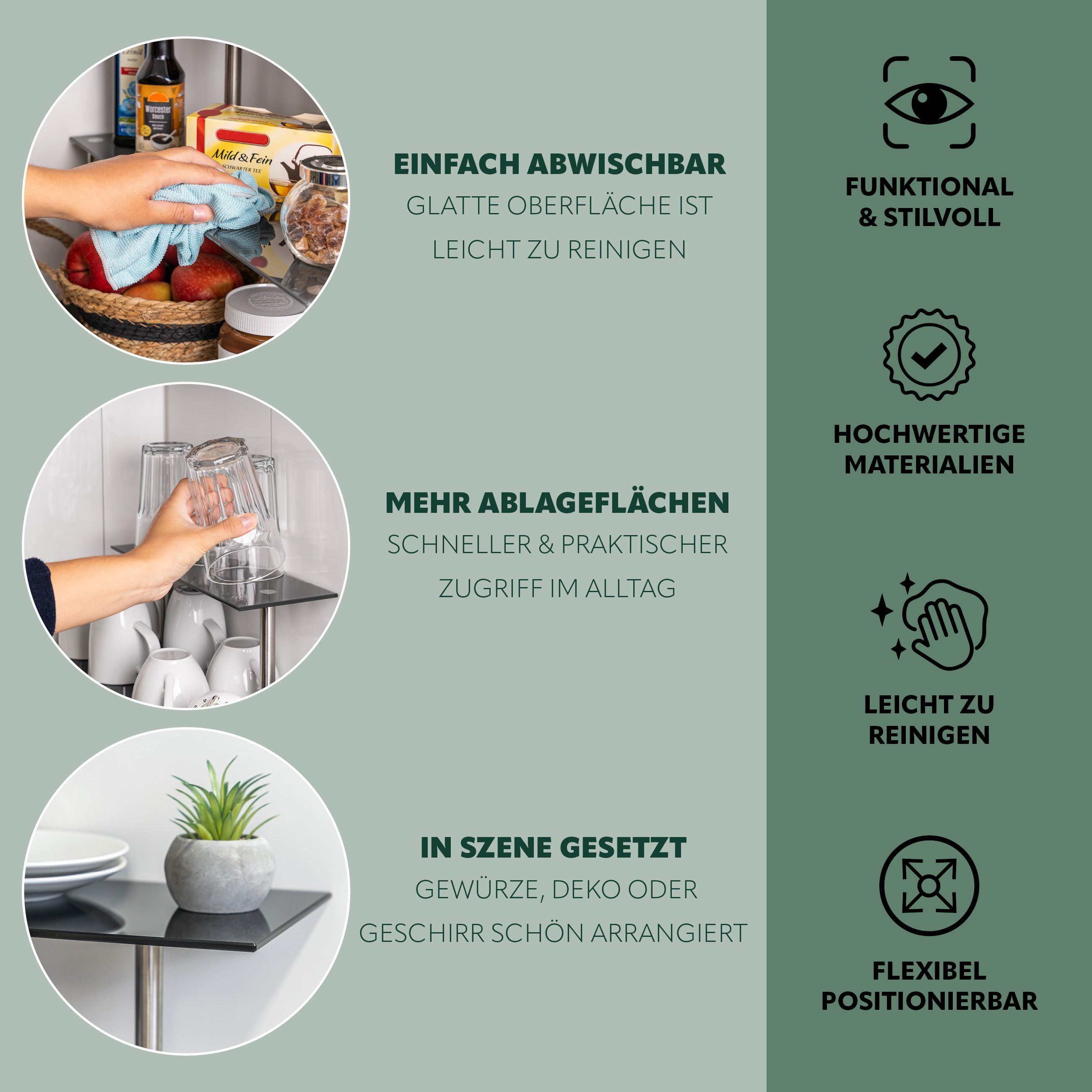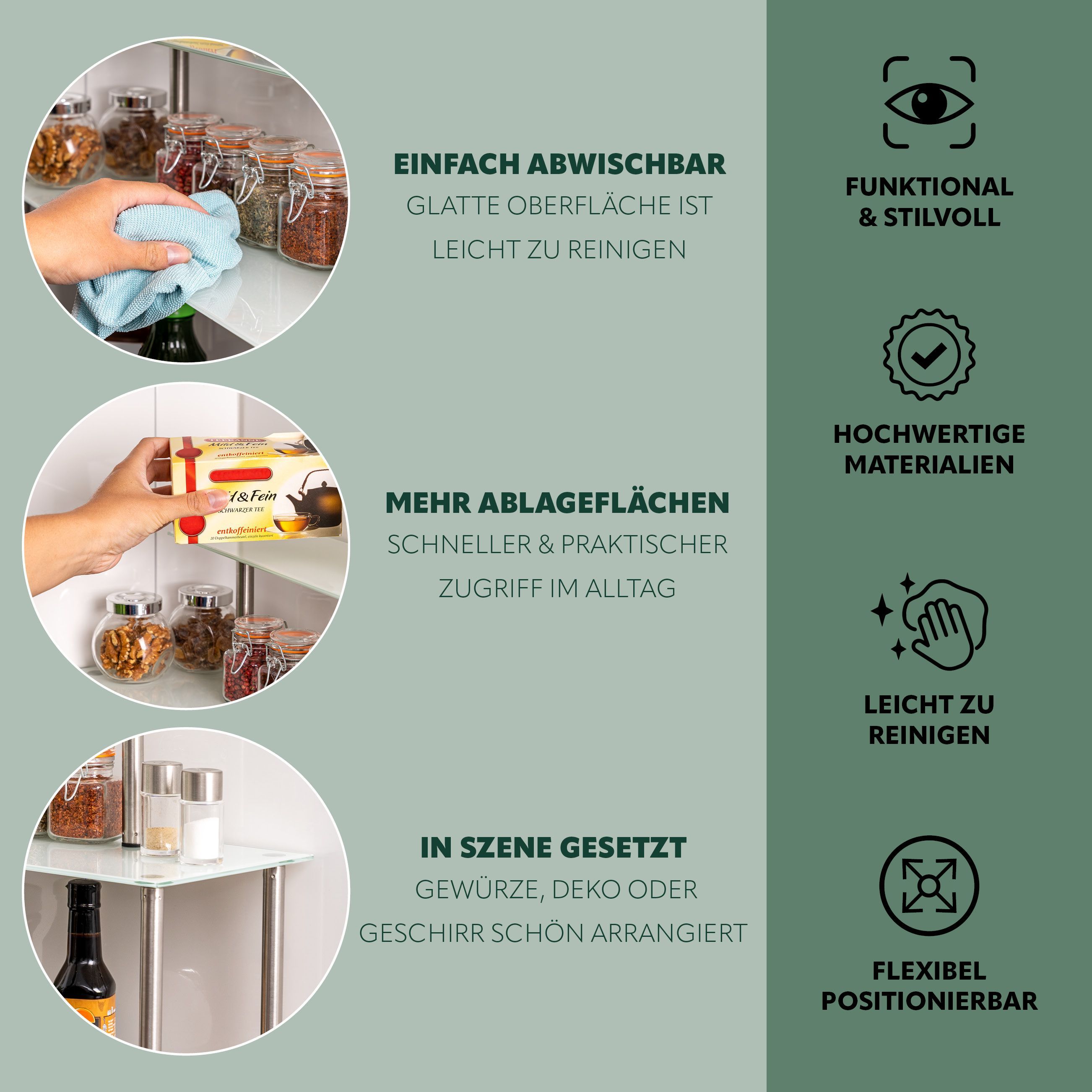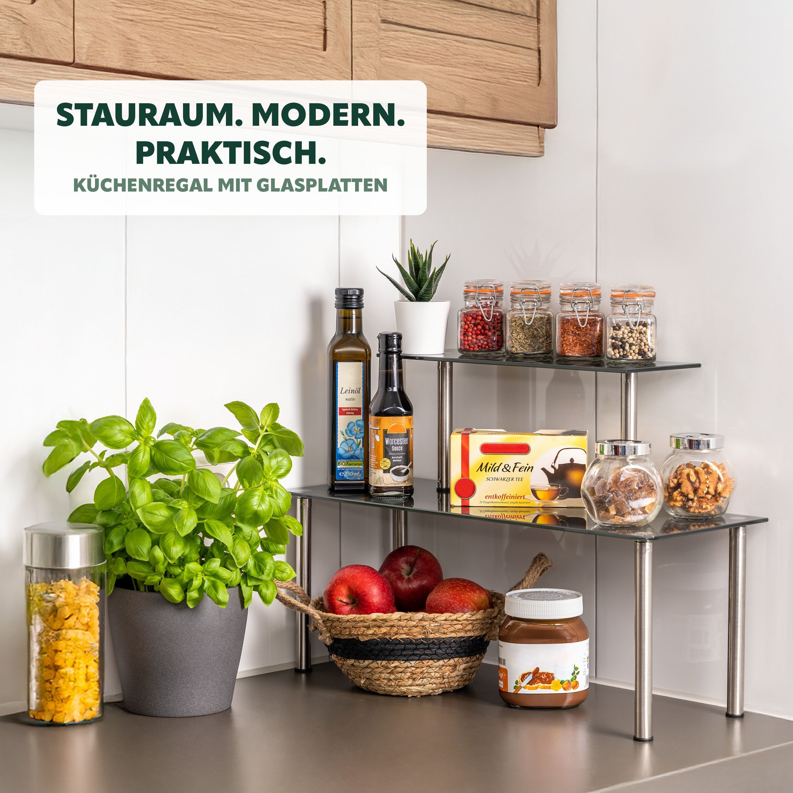 bremermann Glas-Regal, Küchenregal, mit Glasplatten und Edelstahlfüßen