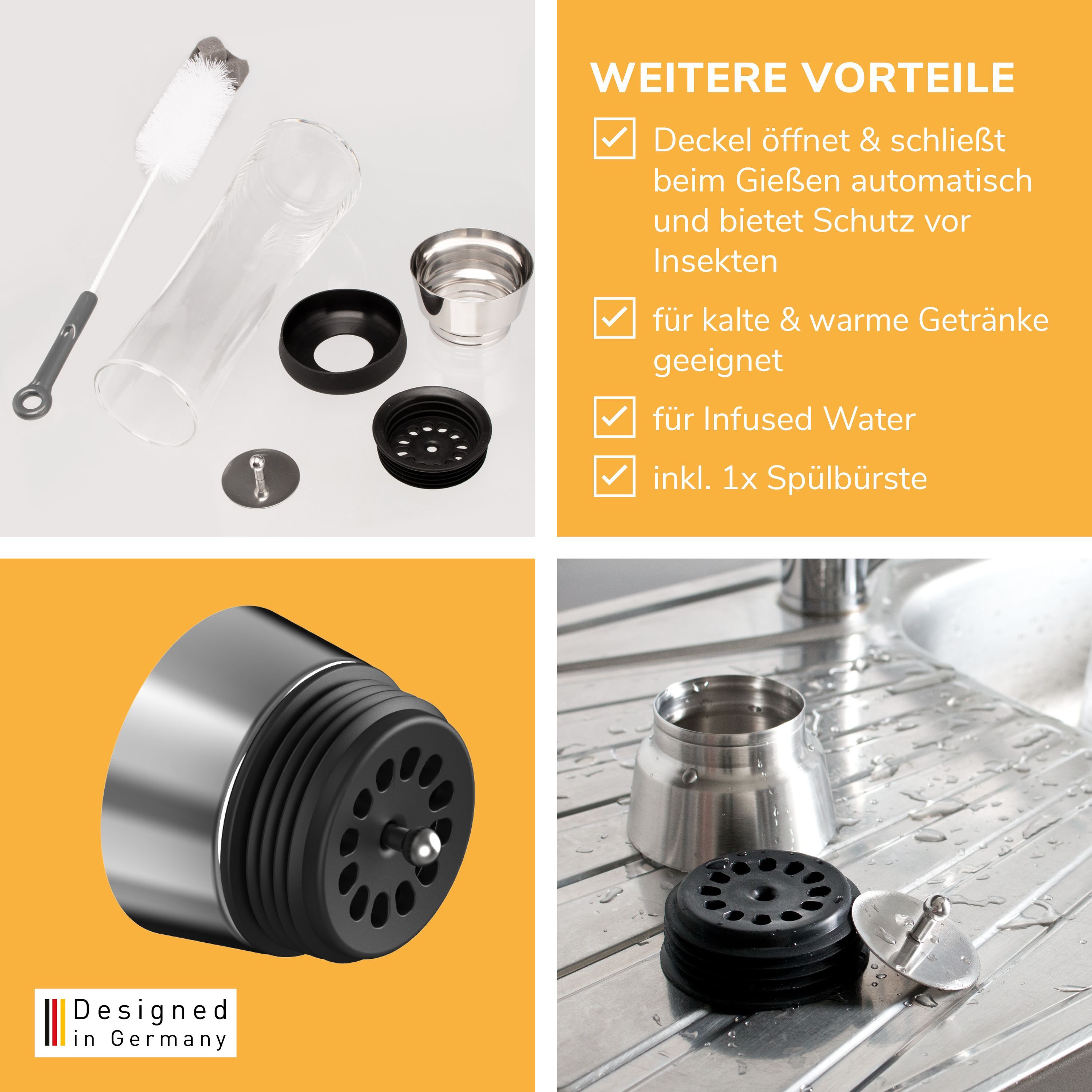 bremermann Glaskaraffe CAROLA Silikonfuß - zerlegbarer Deckel - 1 Liter, schwarz