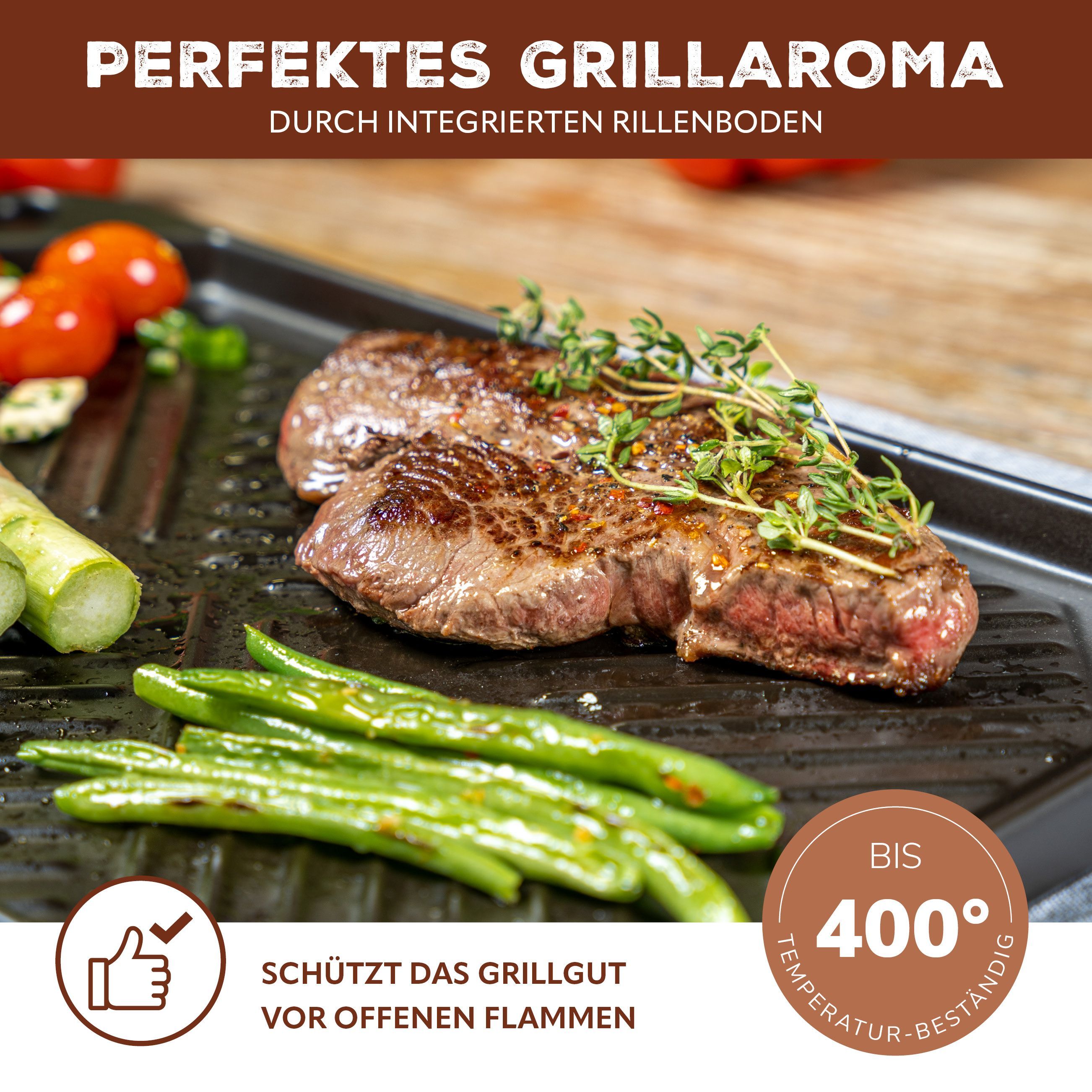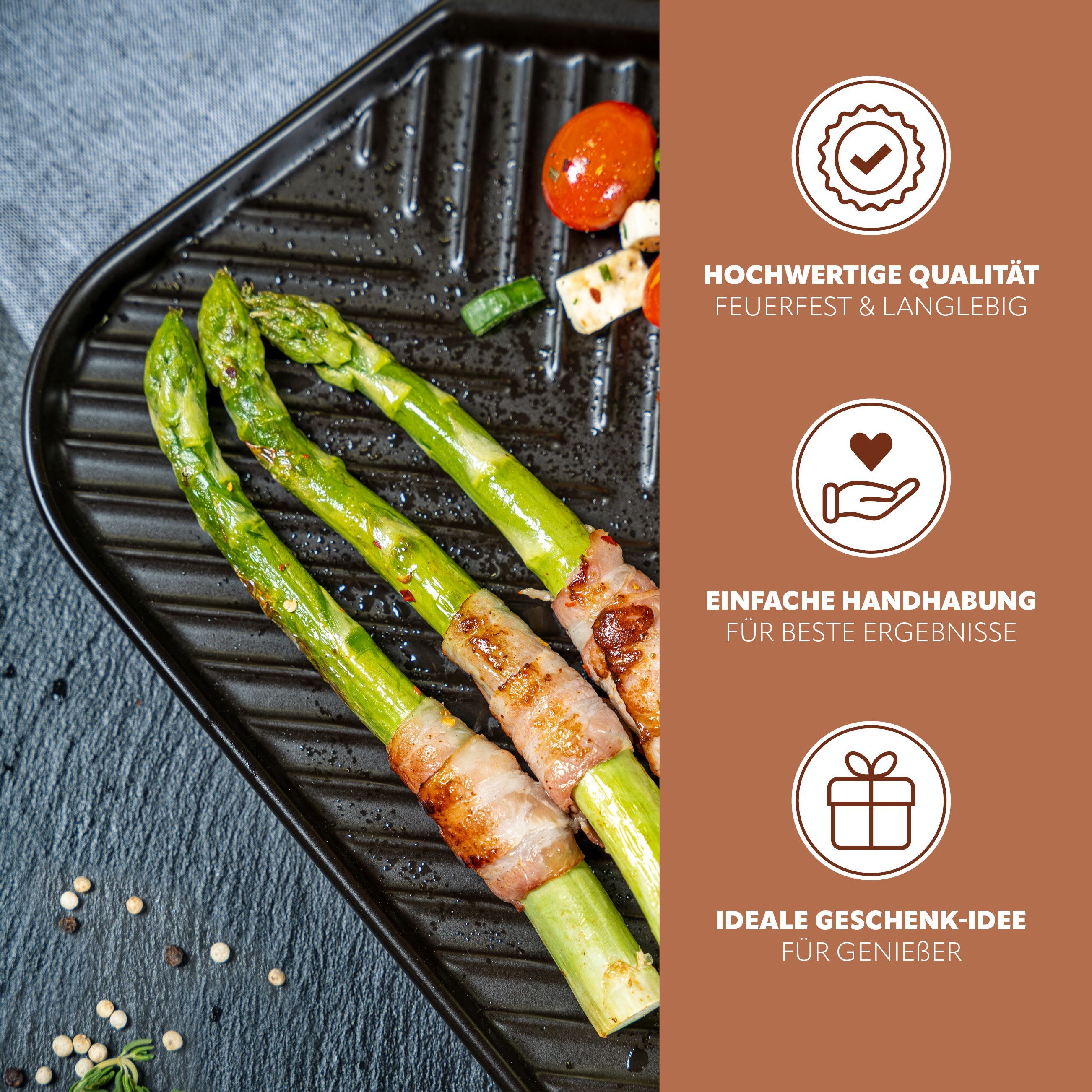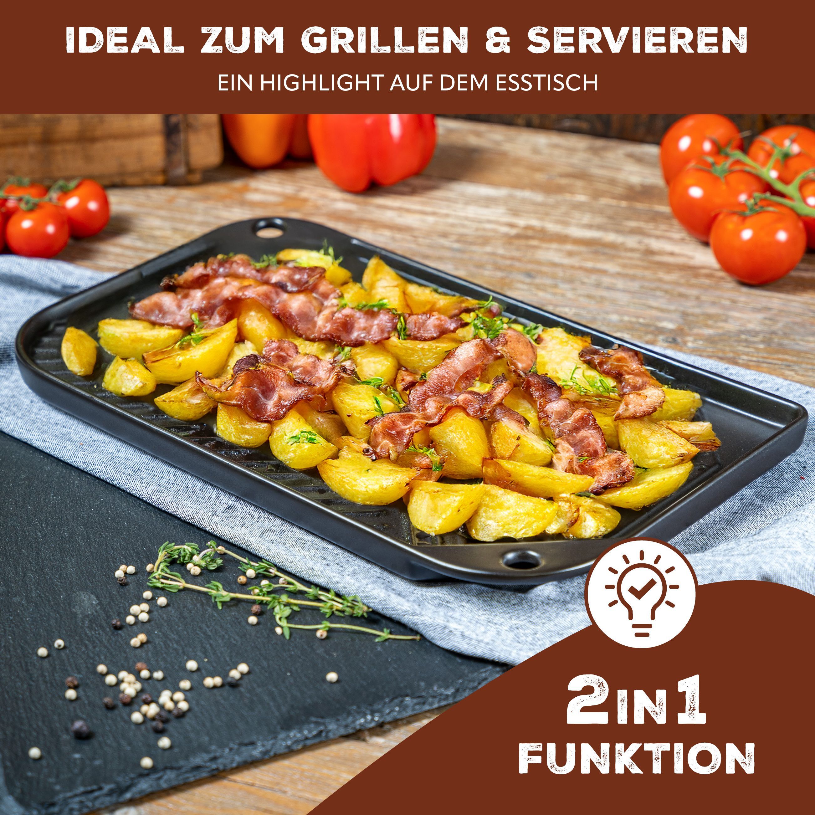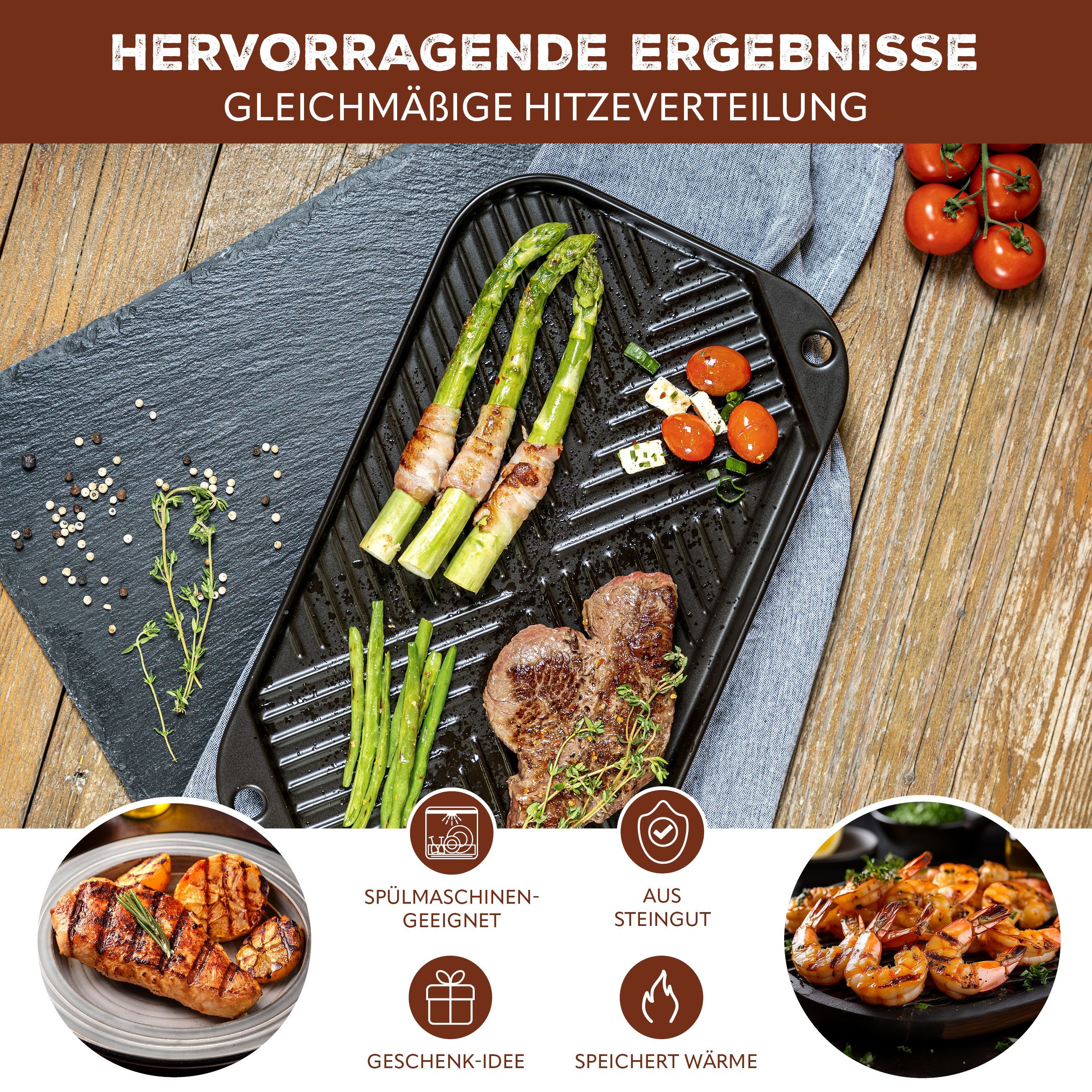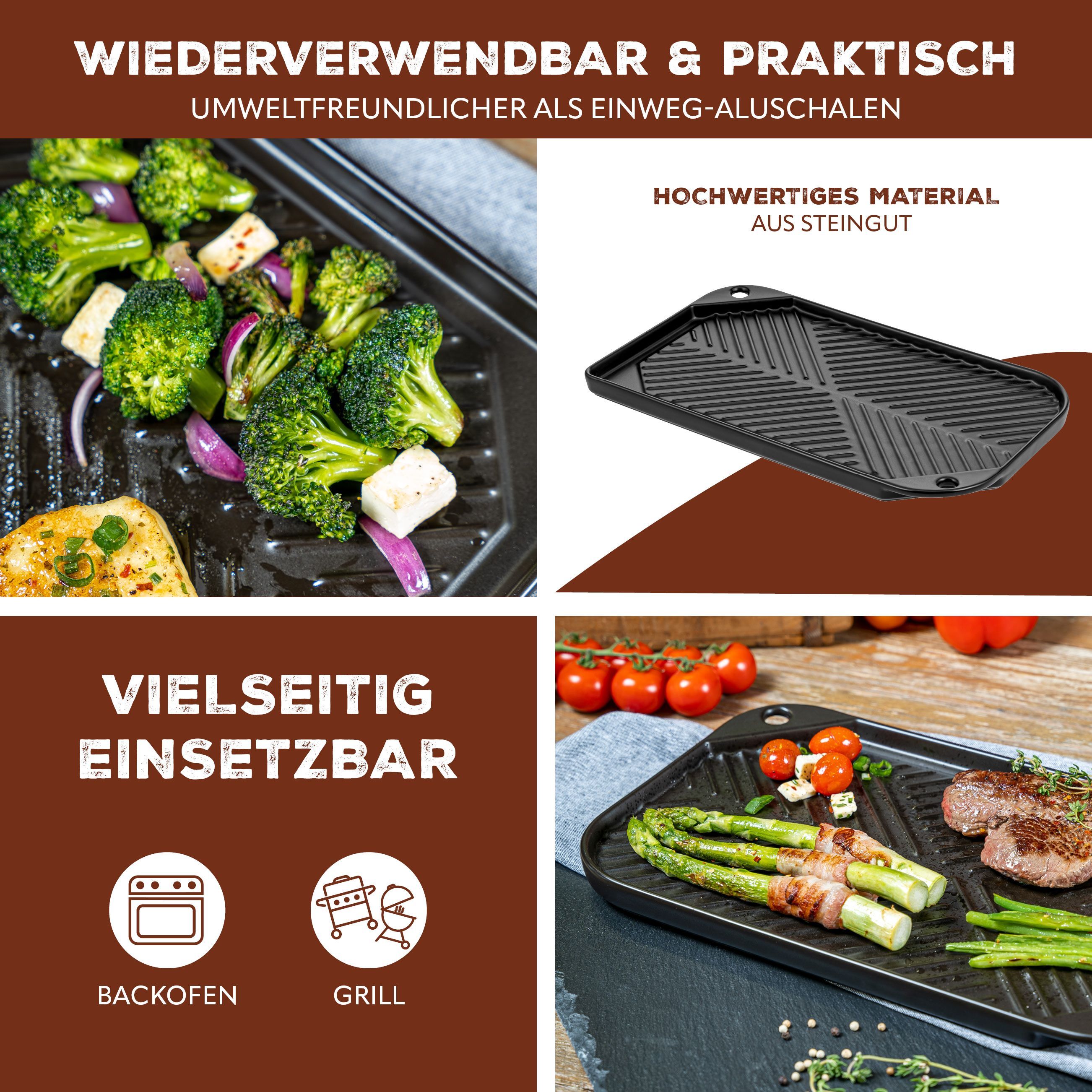 bremermann Grillpfanne Steingut, Grillschale flach für BBQ, eckig schwarz