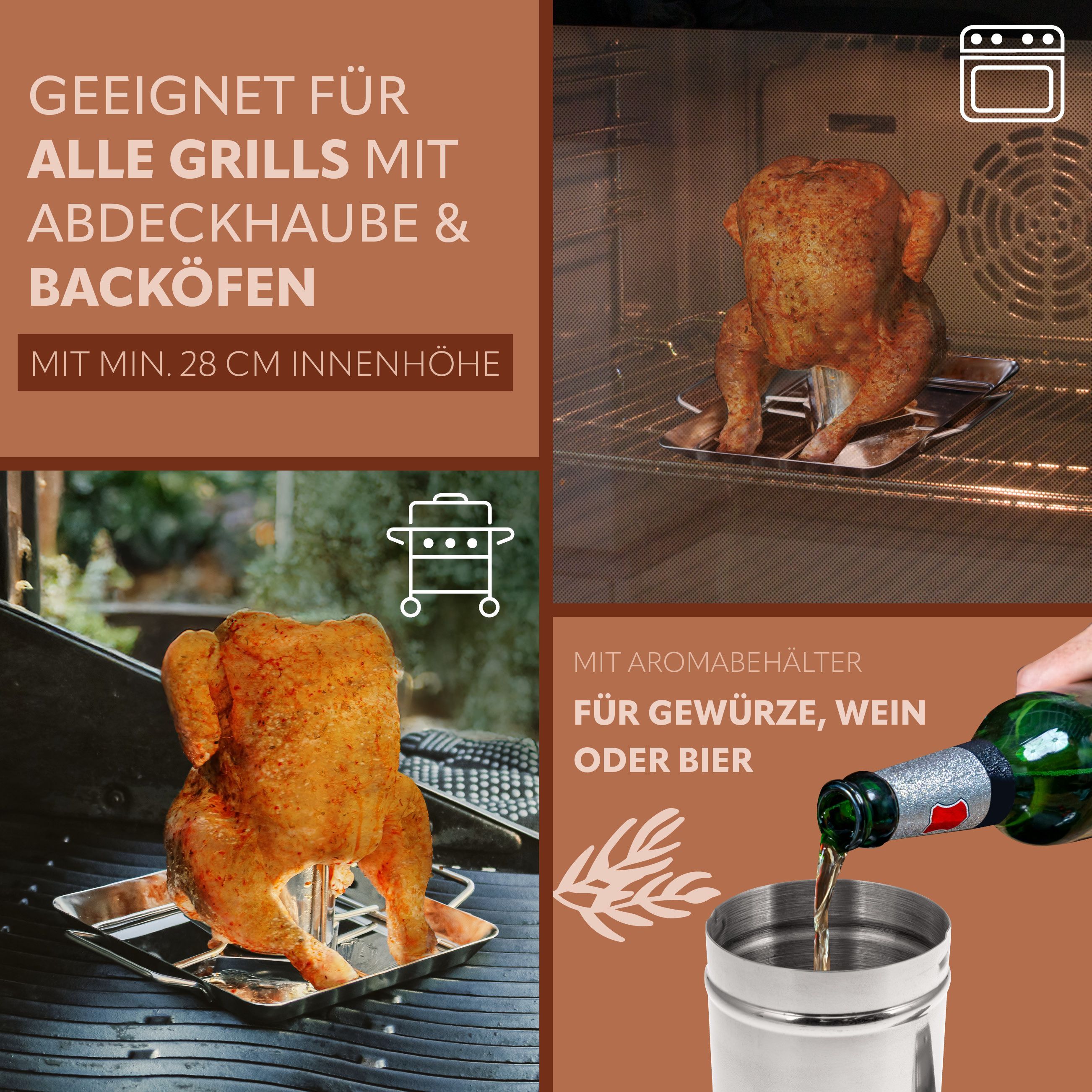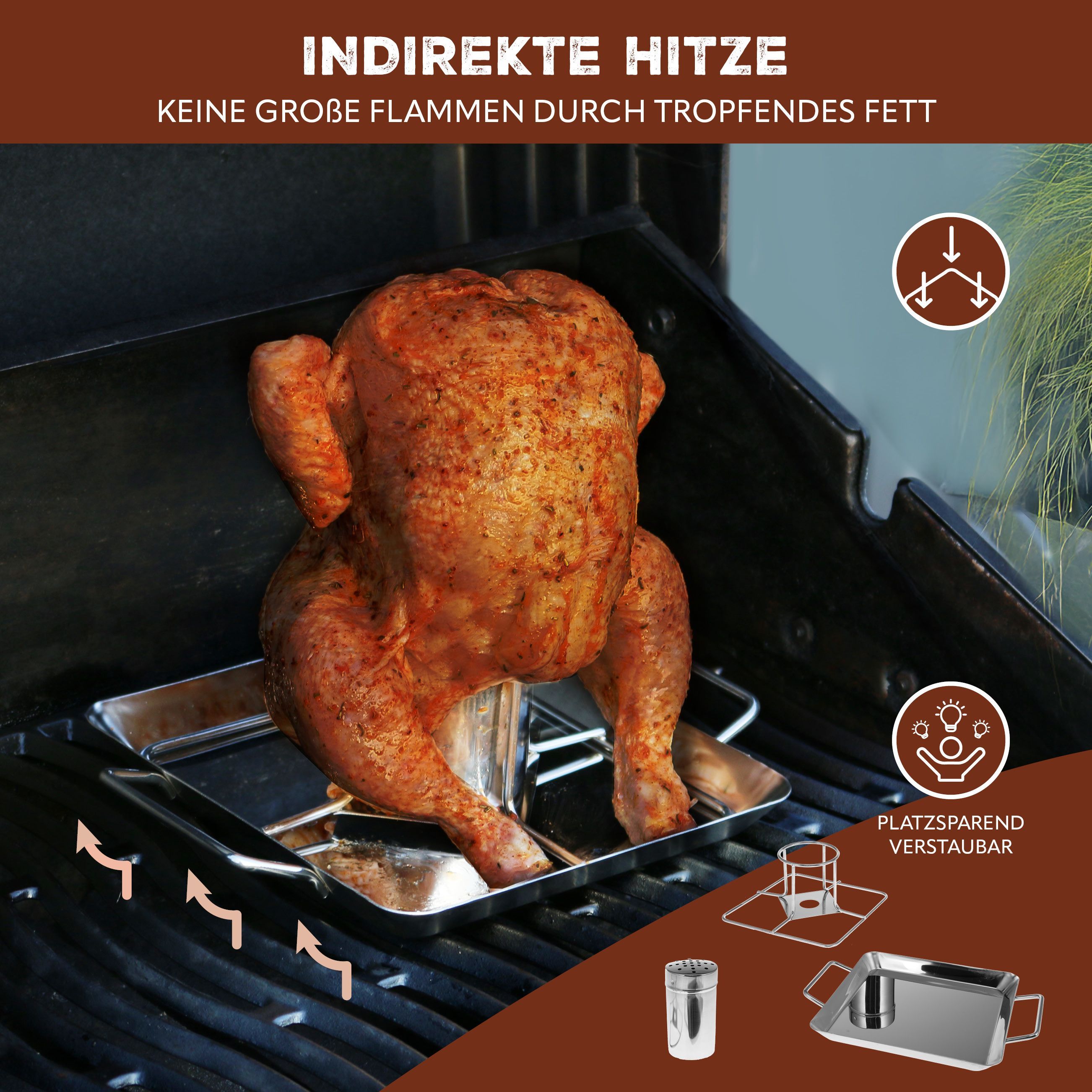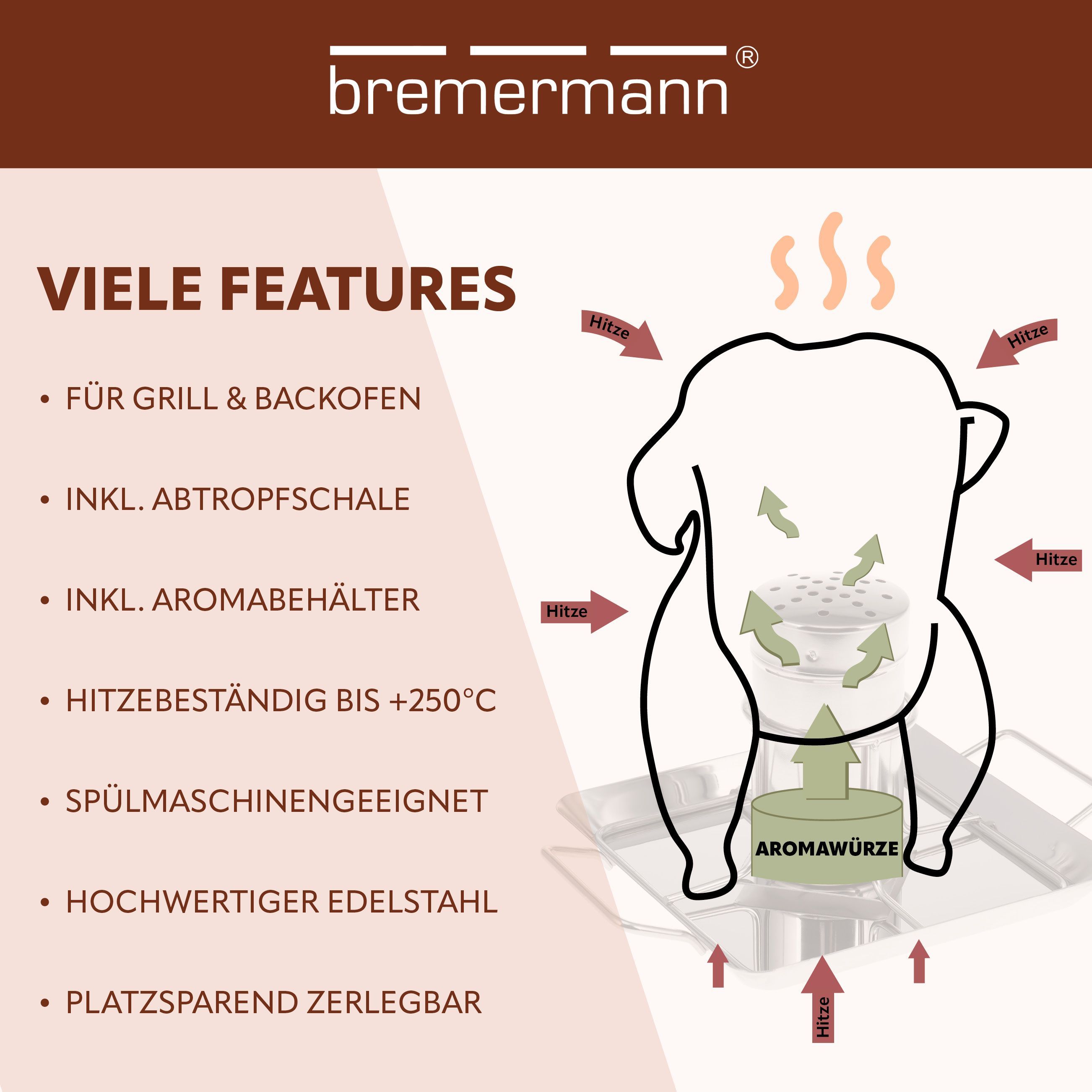 bremermann Hähnchenbräter / mit Aromabehälter, aus Edelstahl ca. 24,5 x 18,5 cm