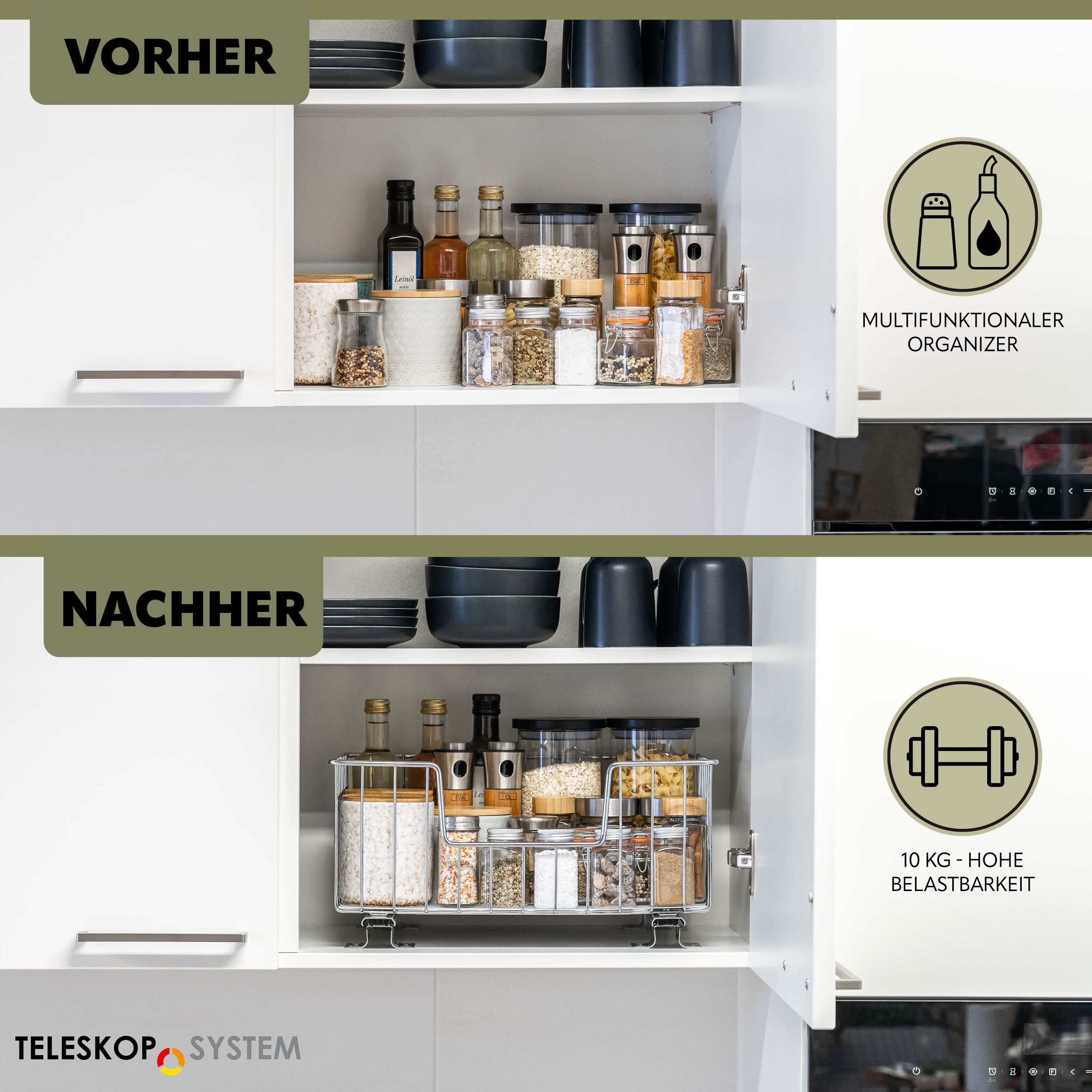 bremermann Korbauszug 2er Set für Oberschränke 40 cm Breite, Chrom
