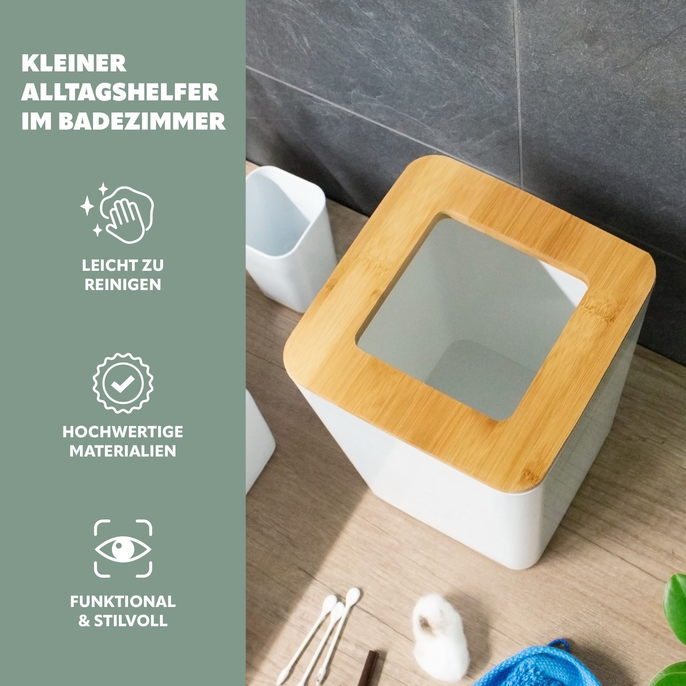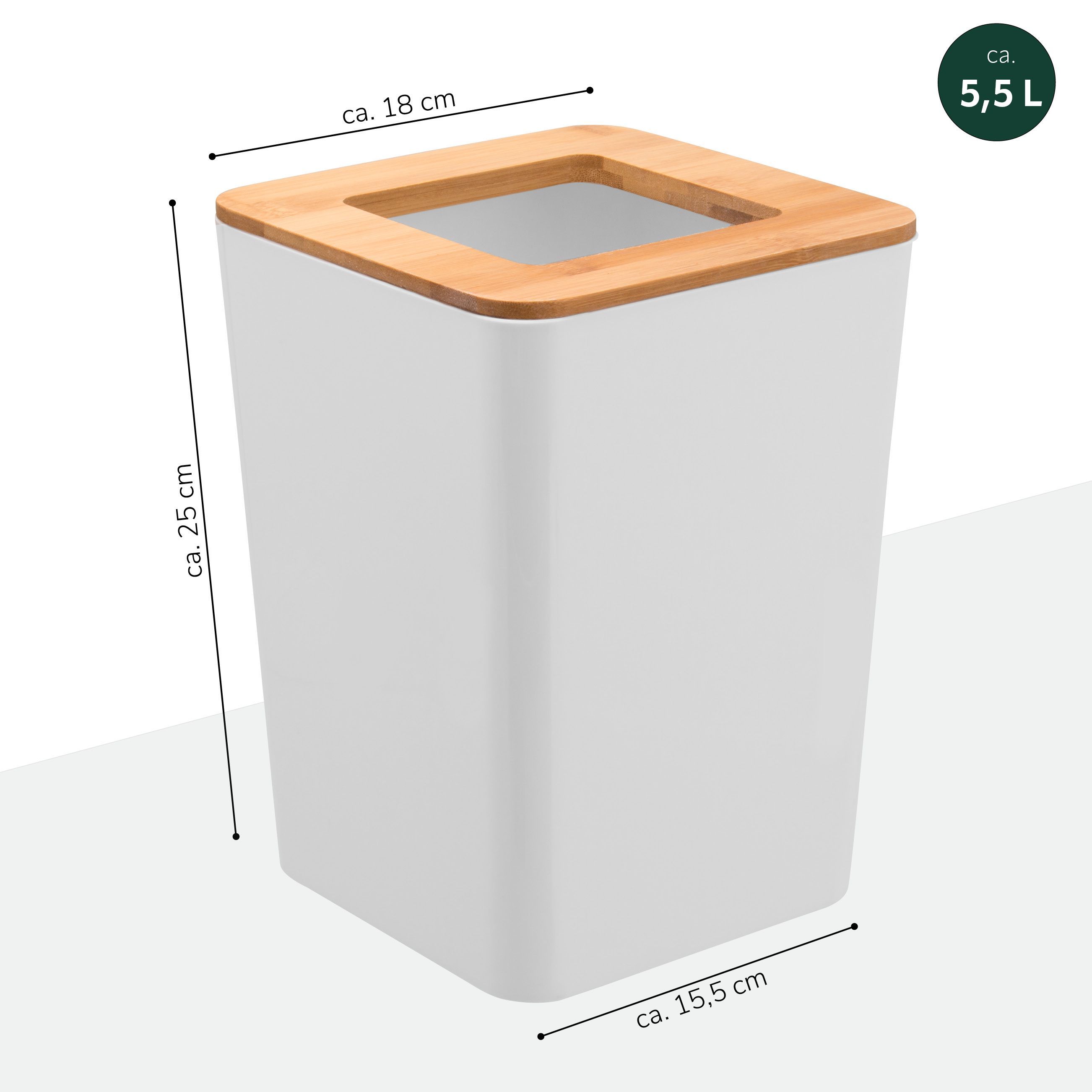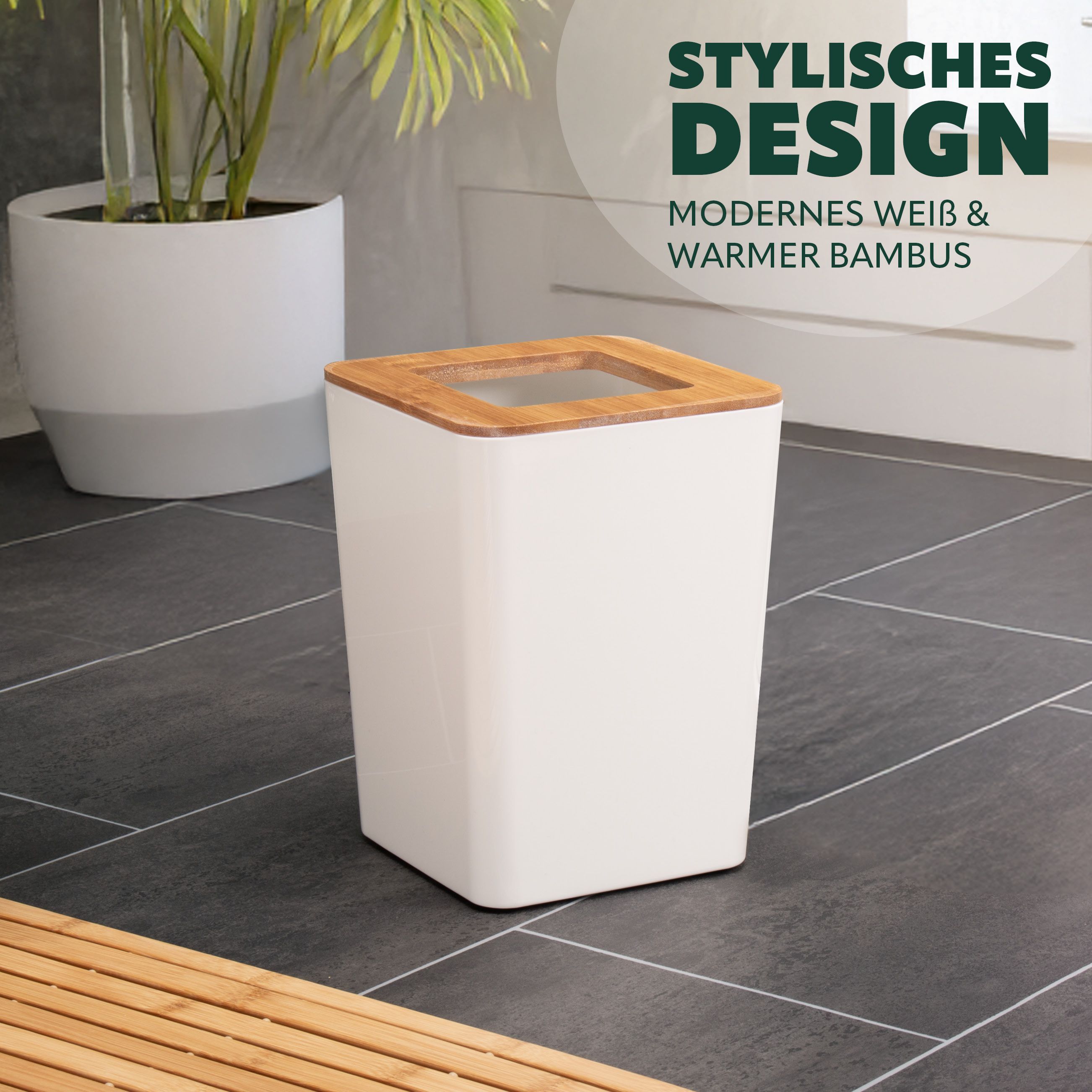 bremermann Kosmetikeimer CALVI aus Bambus und Kunststoff | Abfalleimer weiß 5,5L