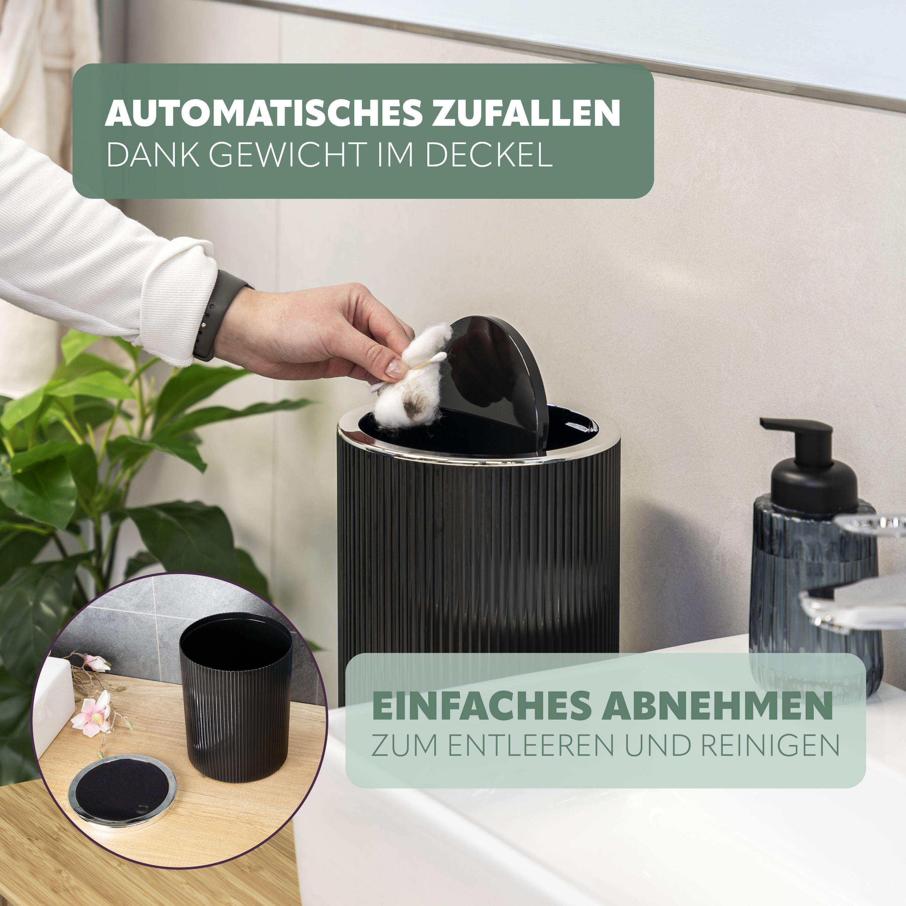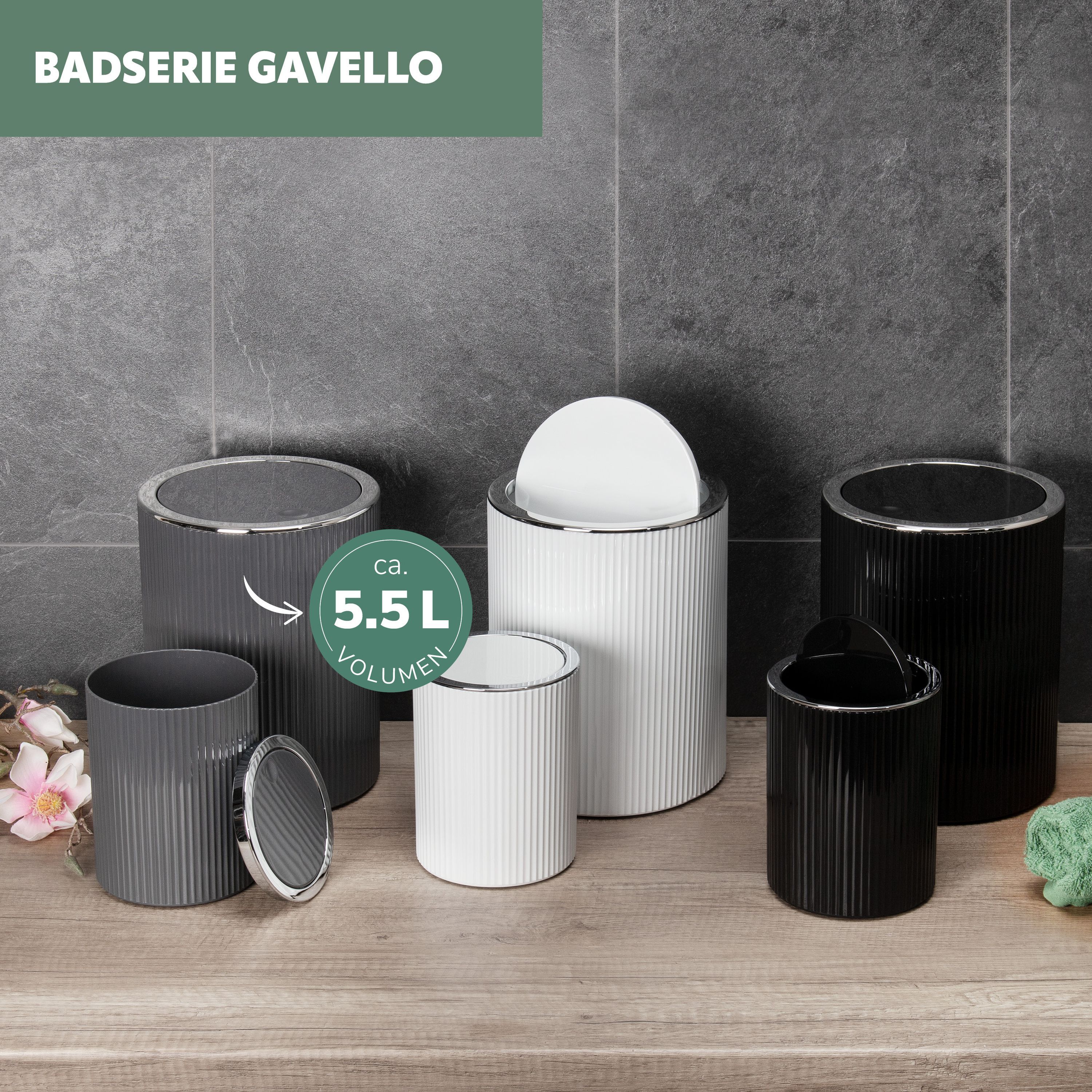 bremermann Kosmetikeimer Gavello mit Schwingdeckel | Badeimer mit Rillendekor, Kunsts