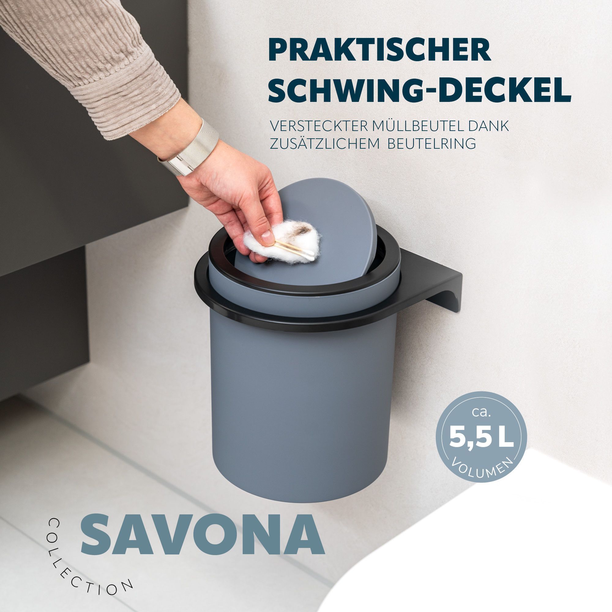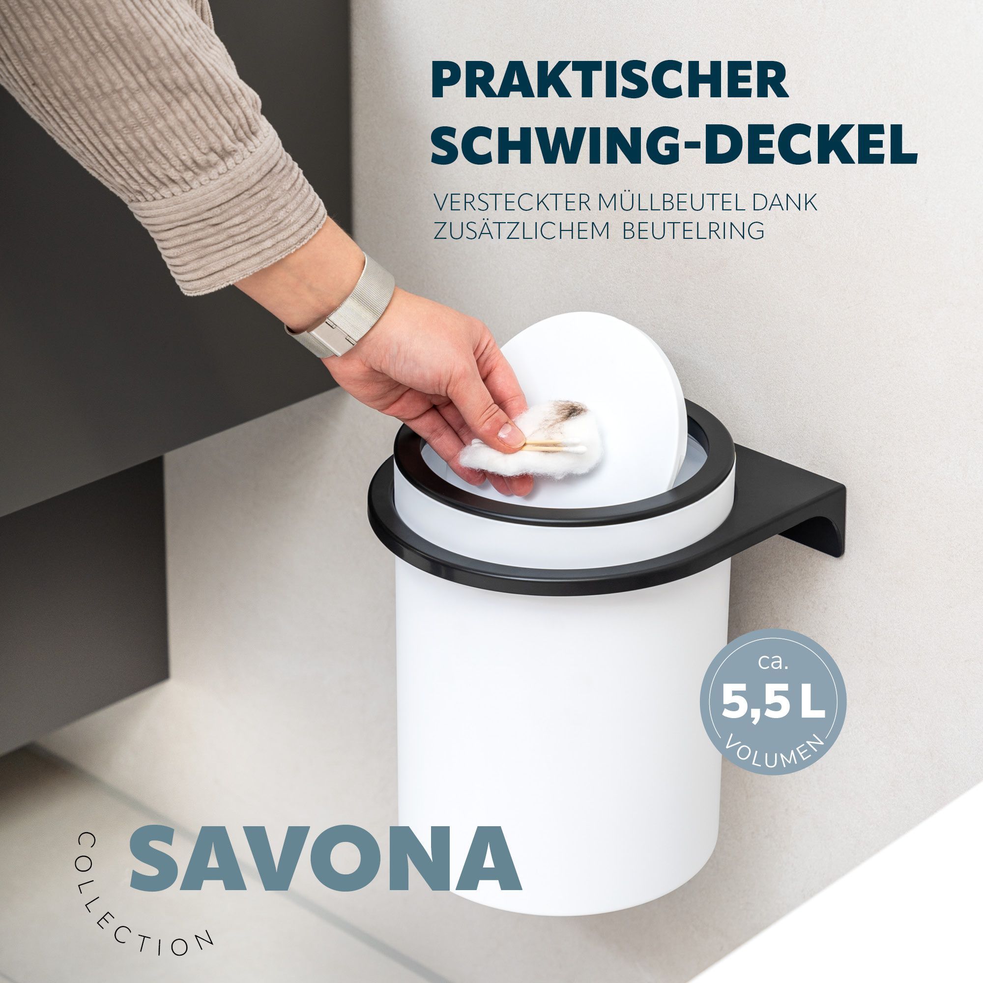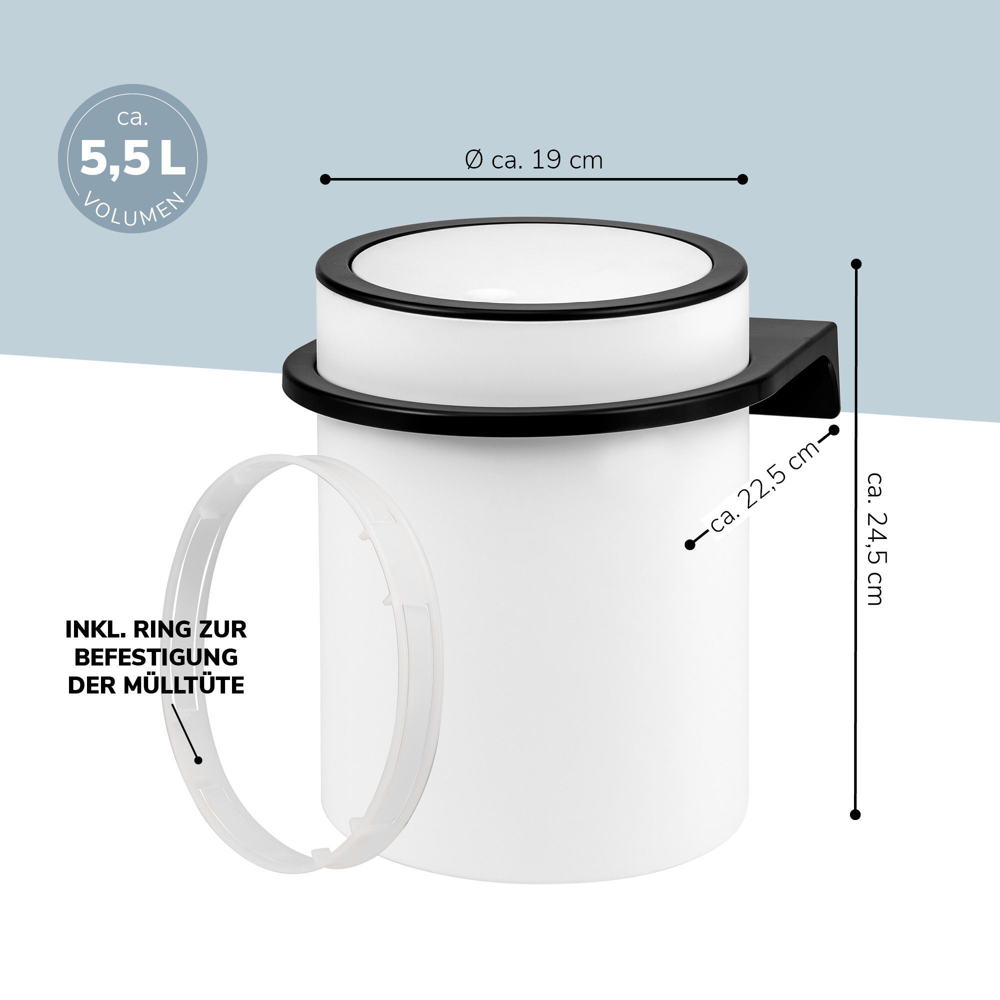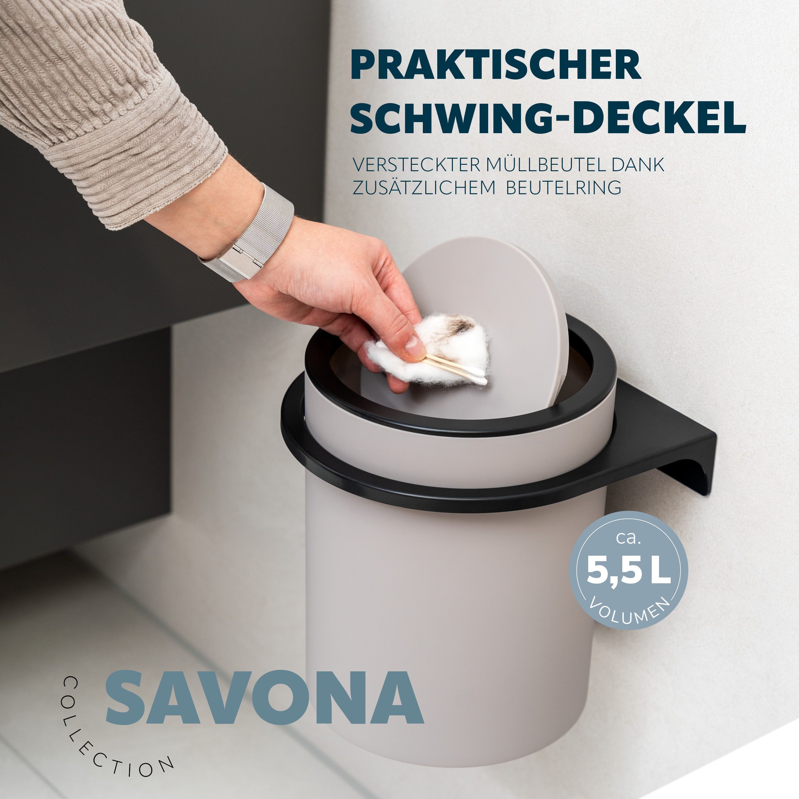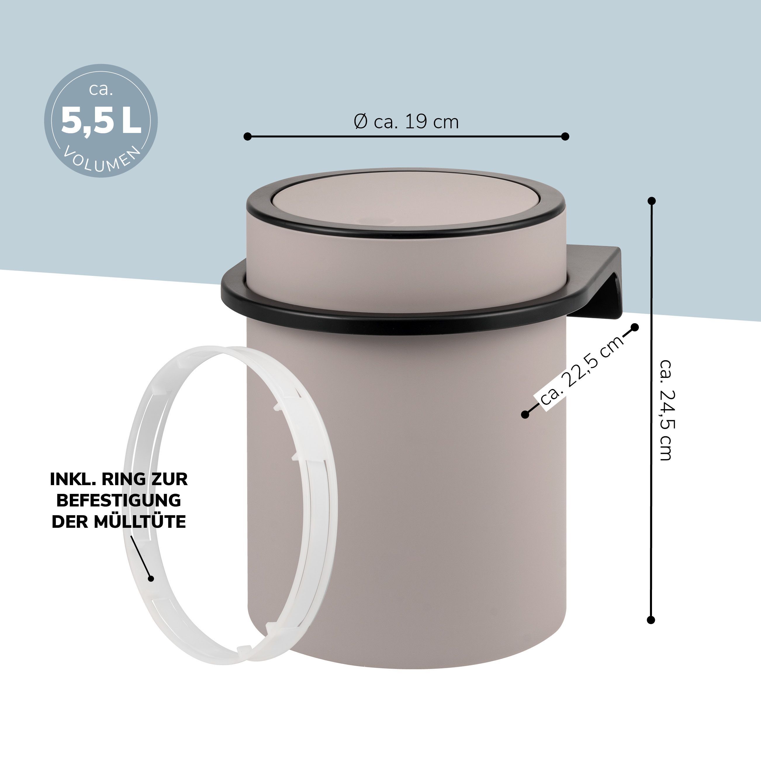 bremermann Kosmetikeimer SAVONA inkl. Wandhalterung 5,5 Liter Kunststoff, rund