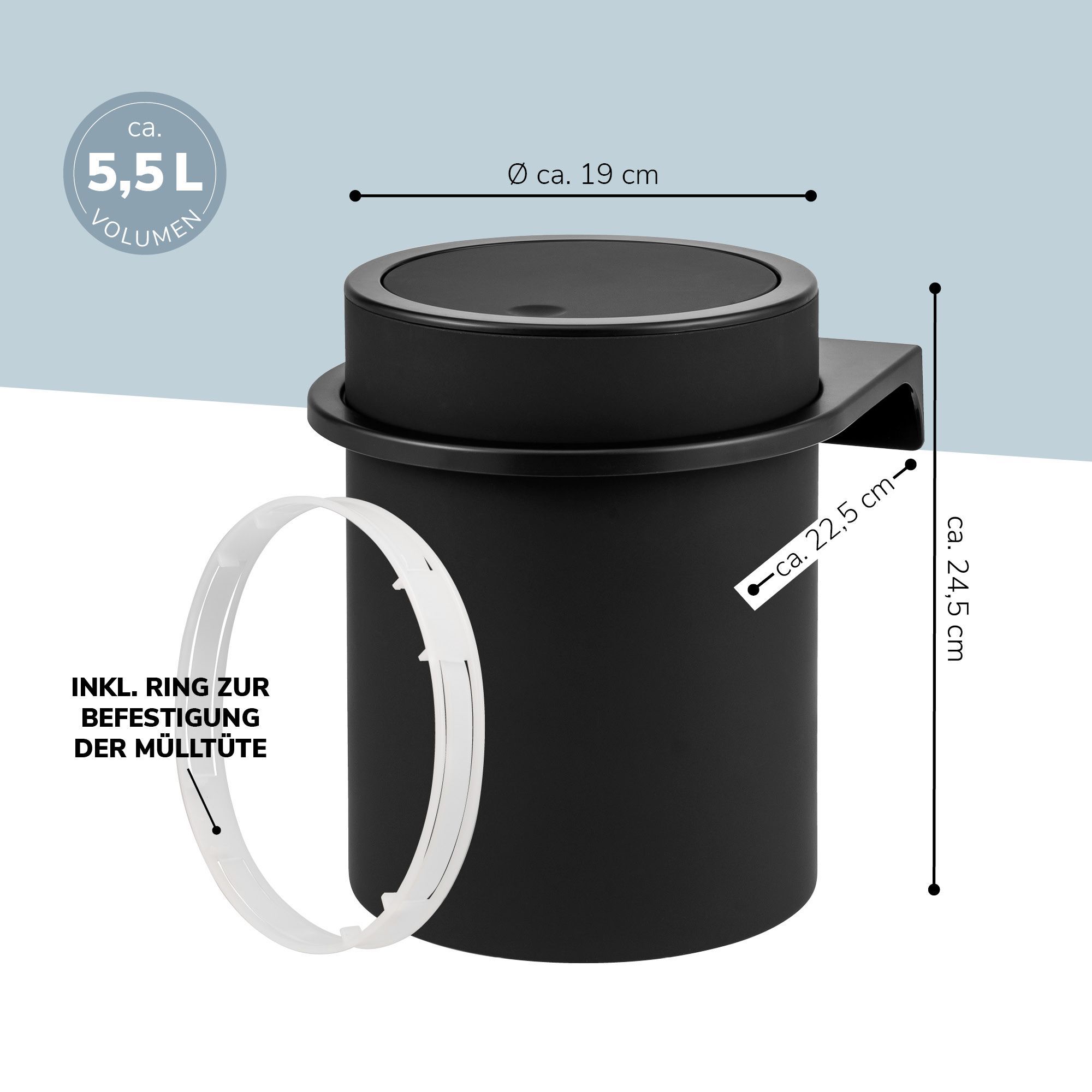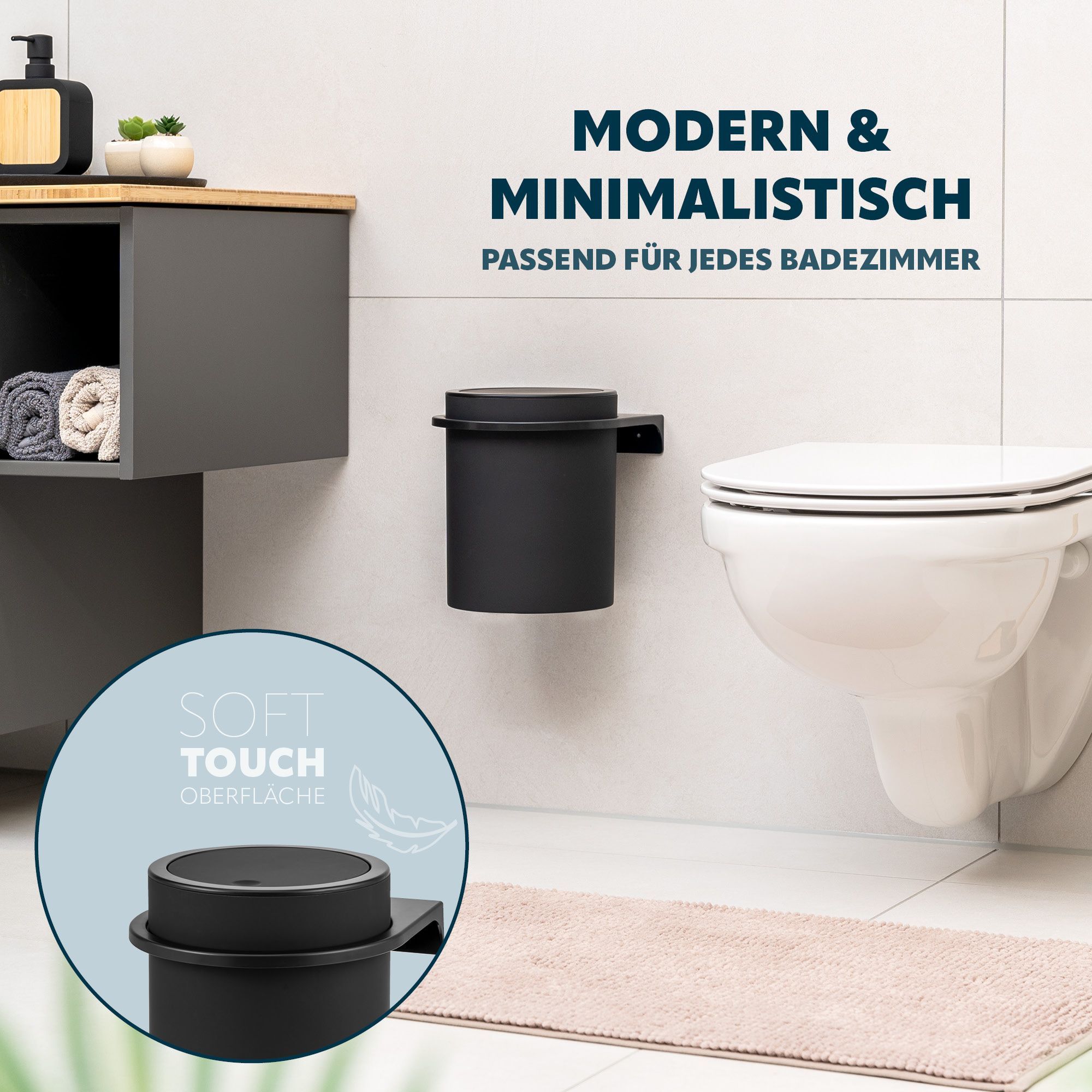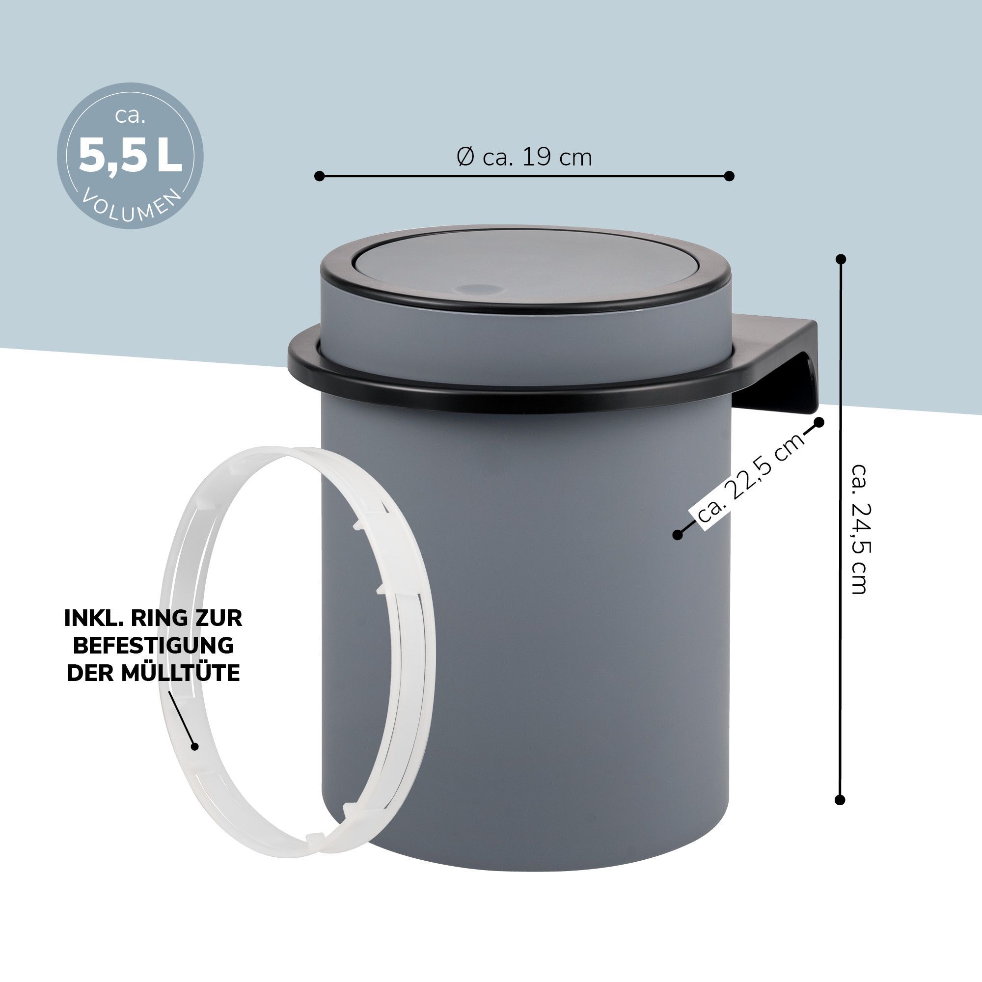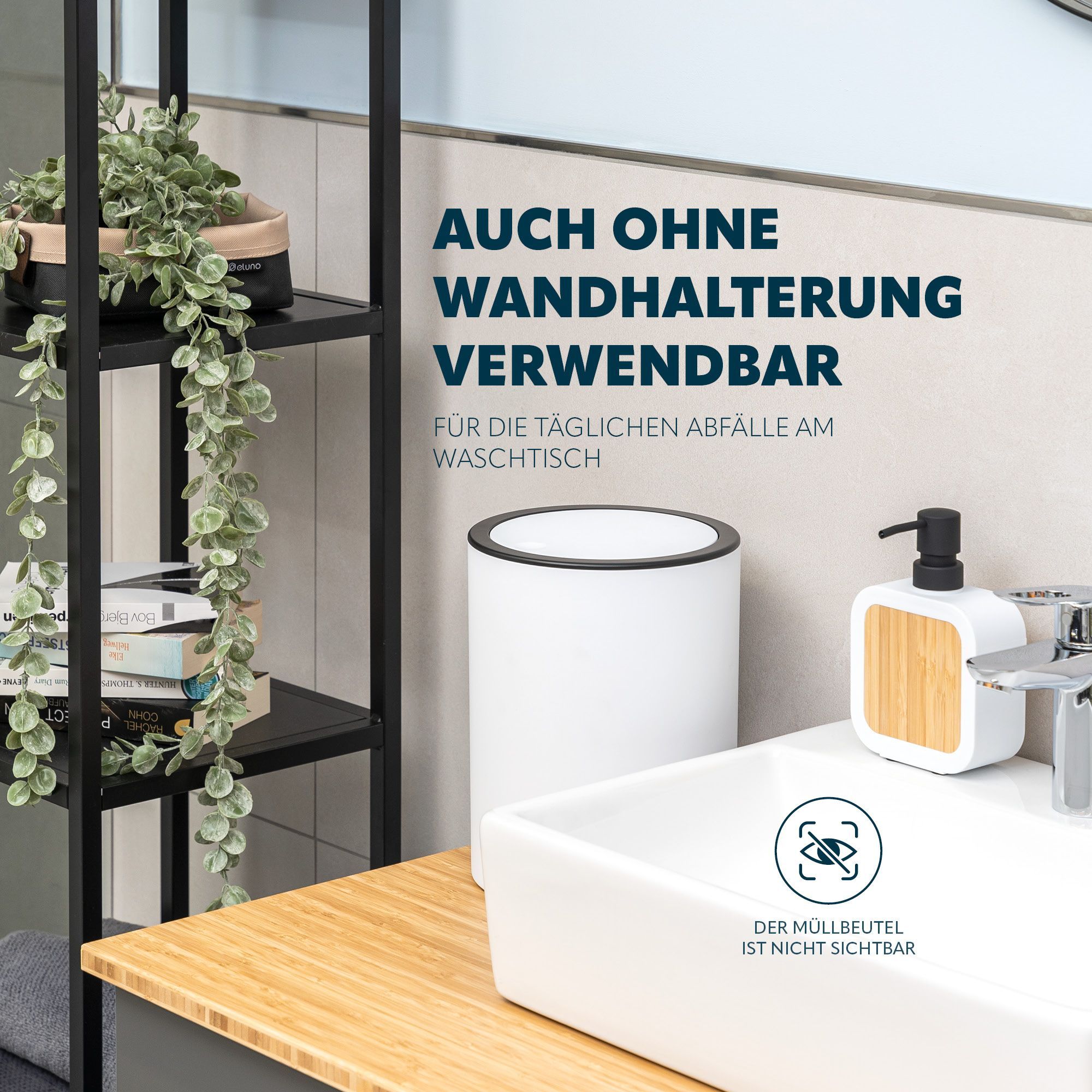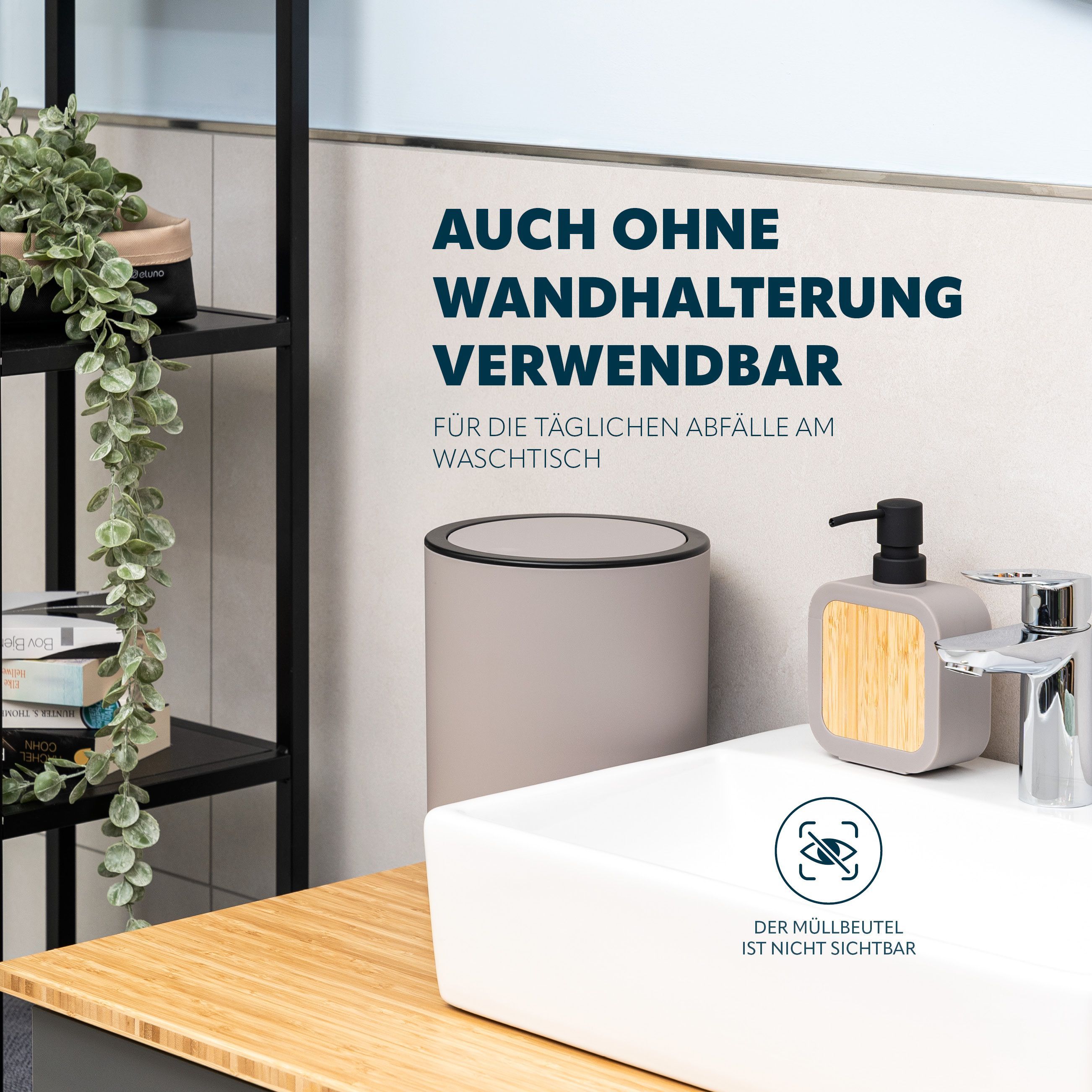 bremermann Kosmetikeimer SAVONA inkl. Wandhalterung 5,5 Liter Kunststoff, rund
