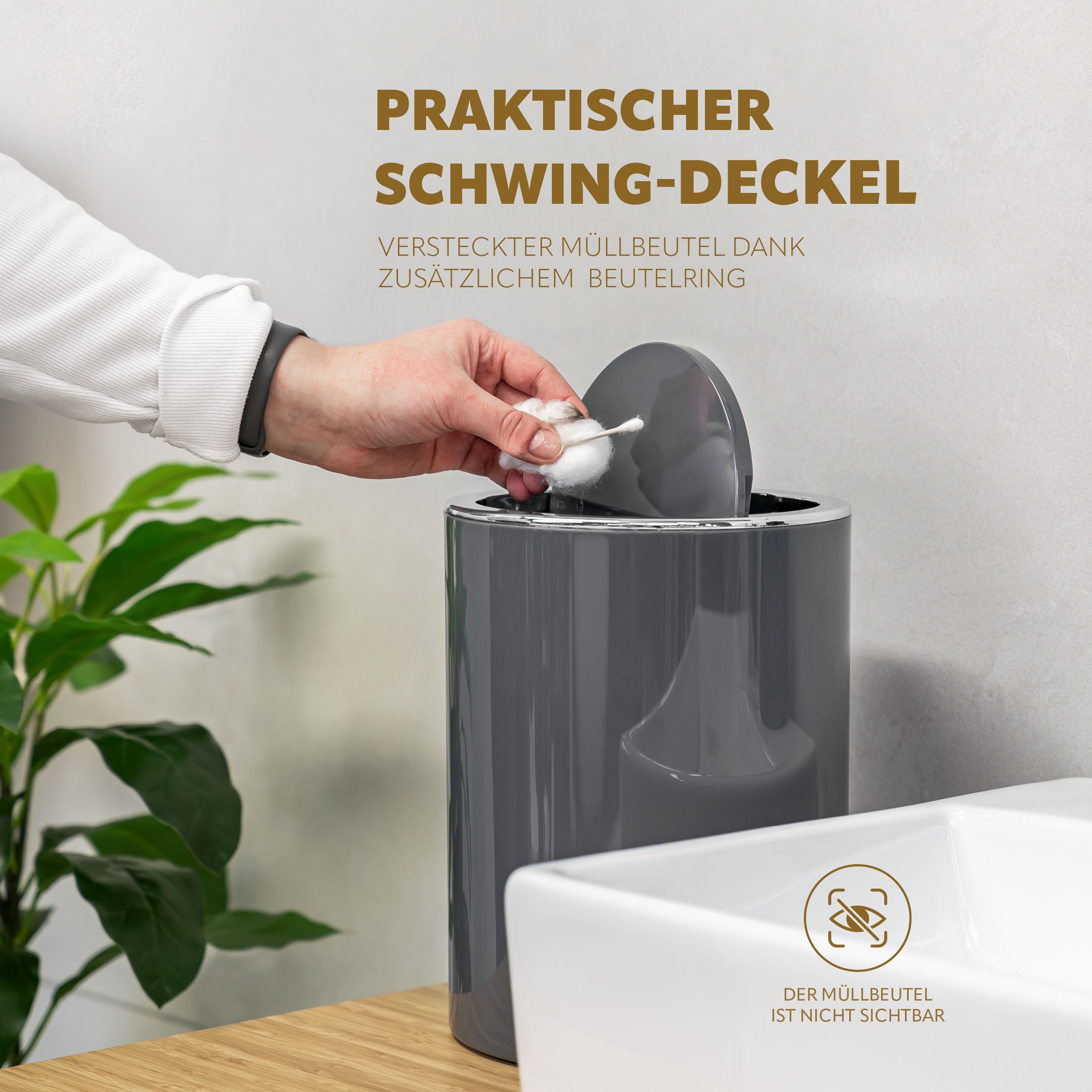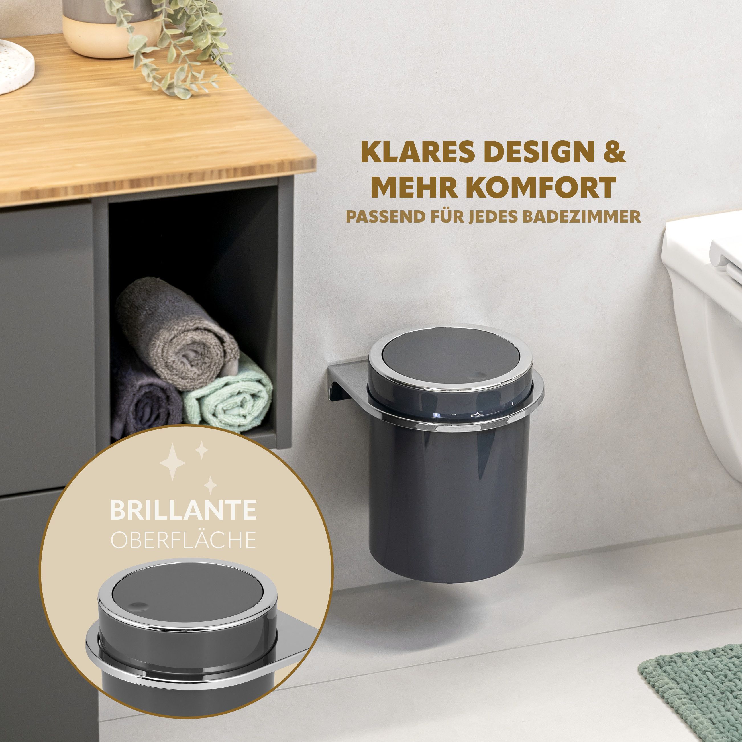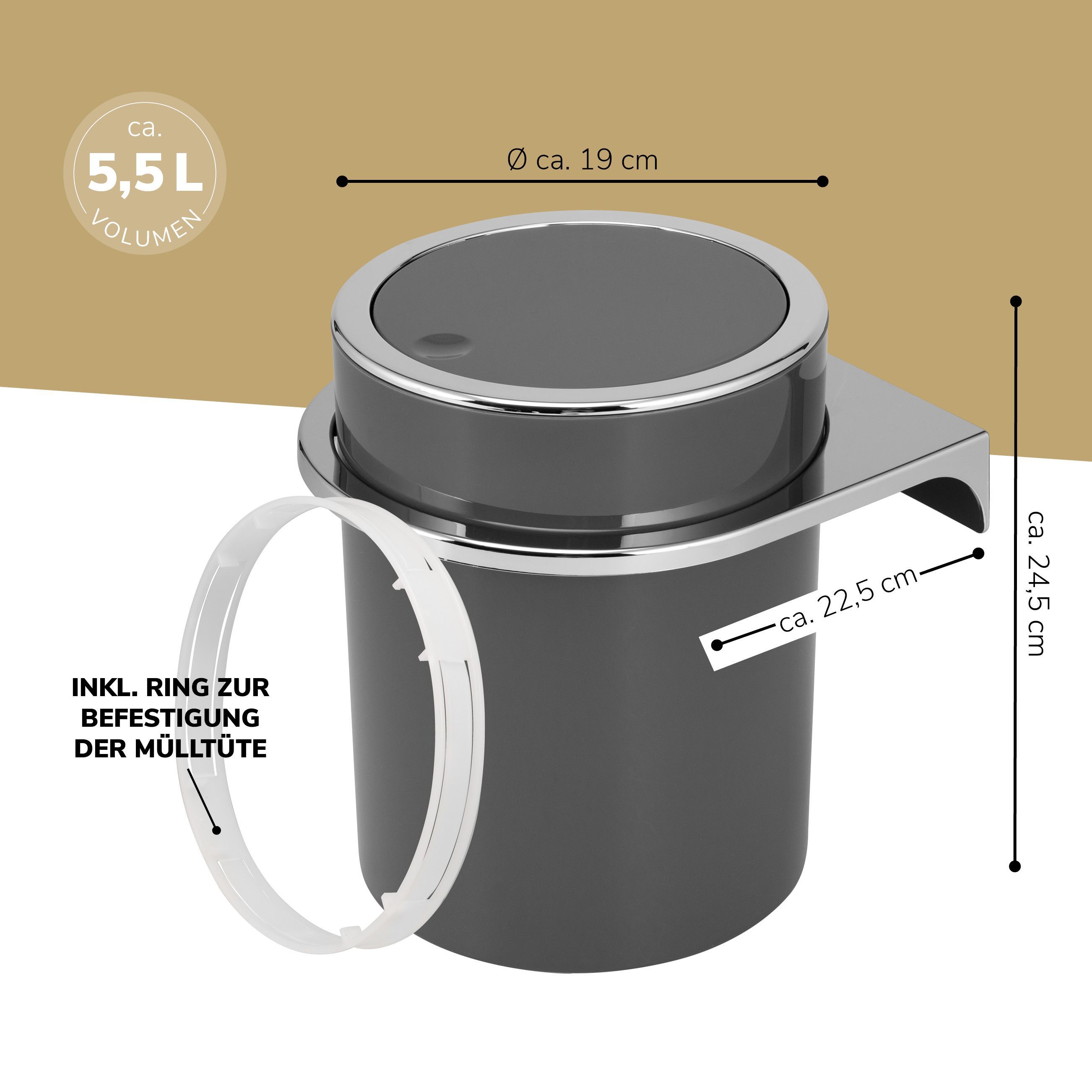 bremermann Kosmetikeimer SAVONA inkl. Wandhalterung 5,5 Liter Kunststoff, rund grau