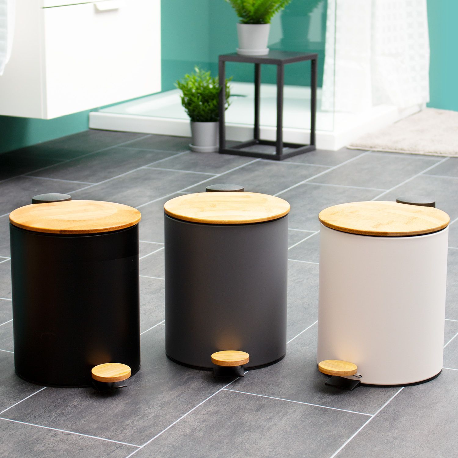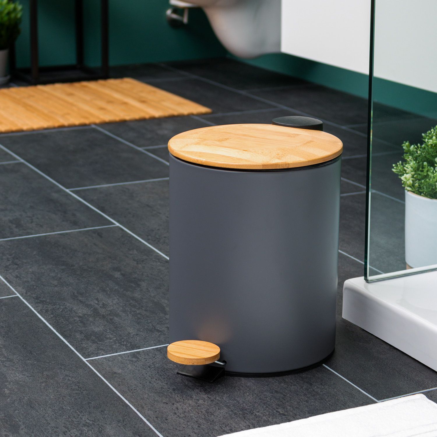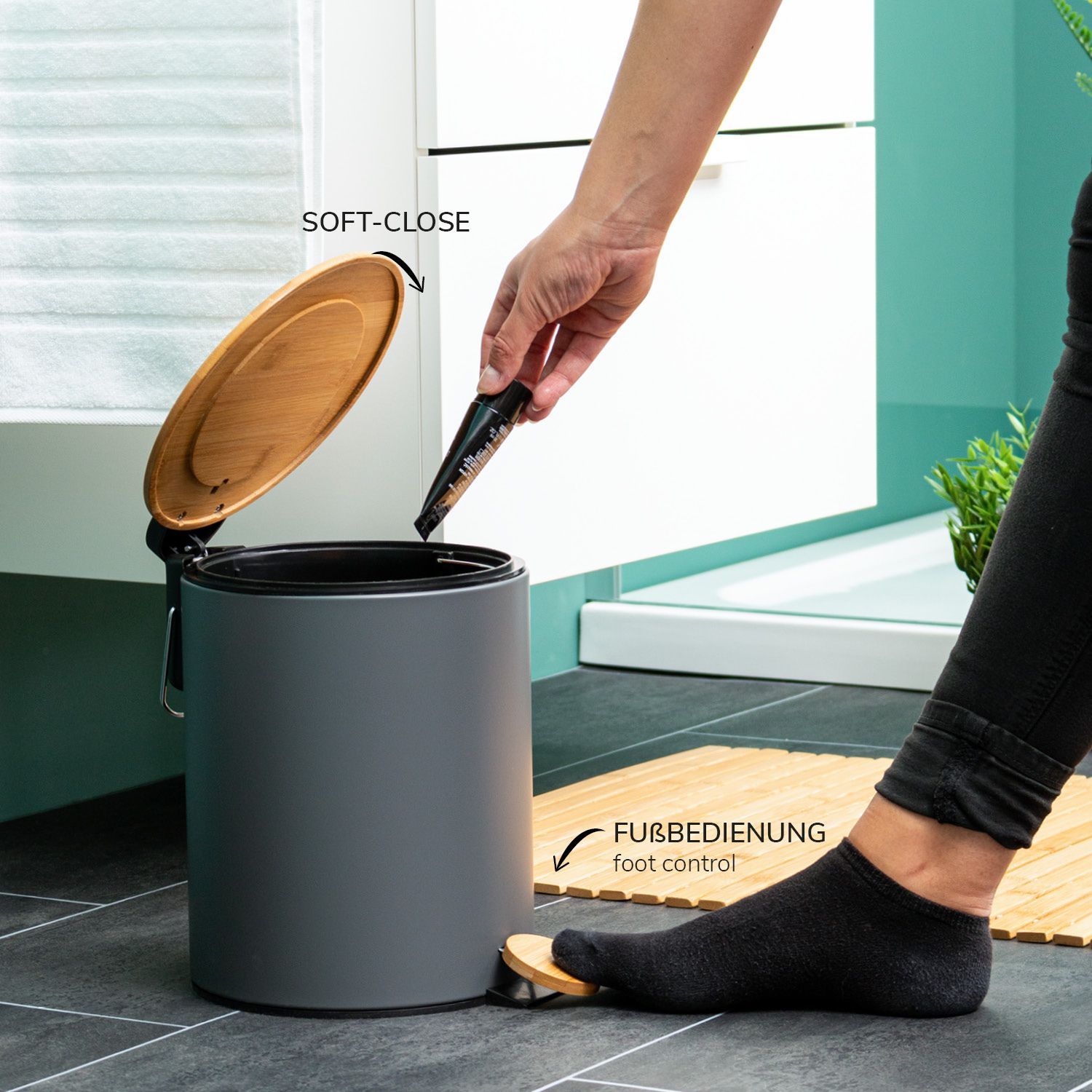 bremermann Mülleimer mit Bambus-Deckel, Bad-Abfalleimer mit Soft-Close 5 l, grau
