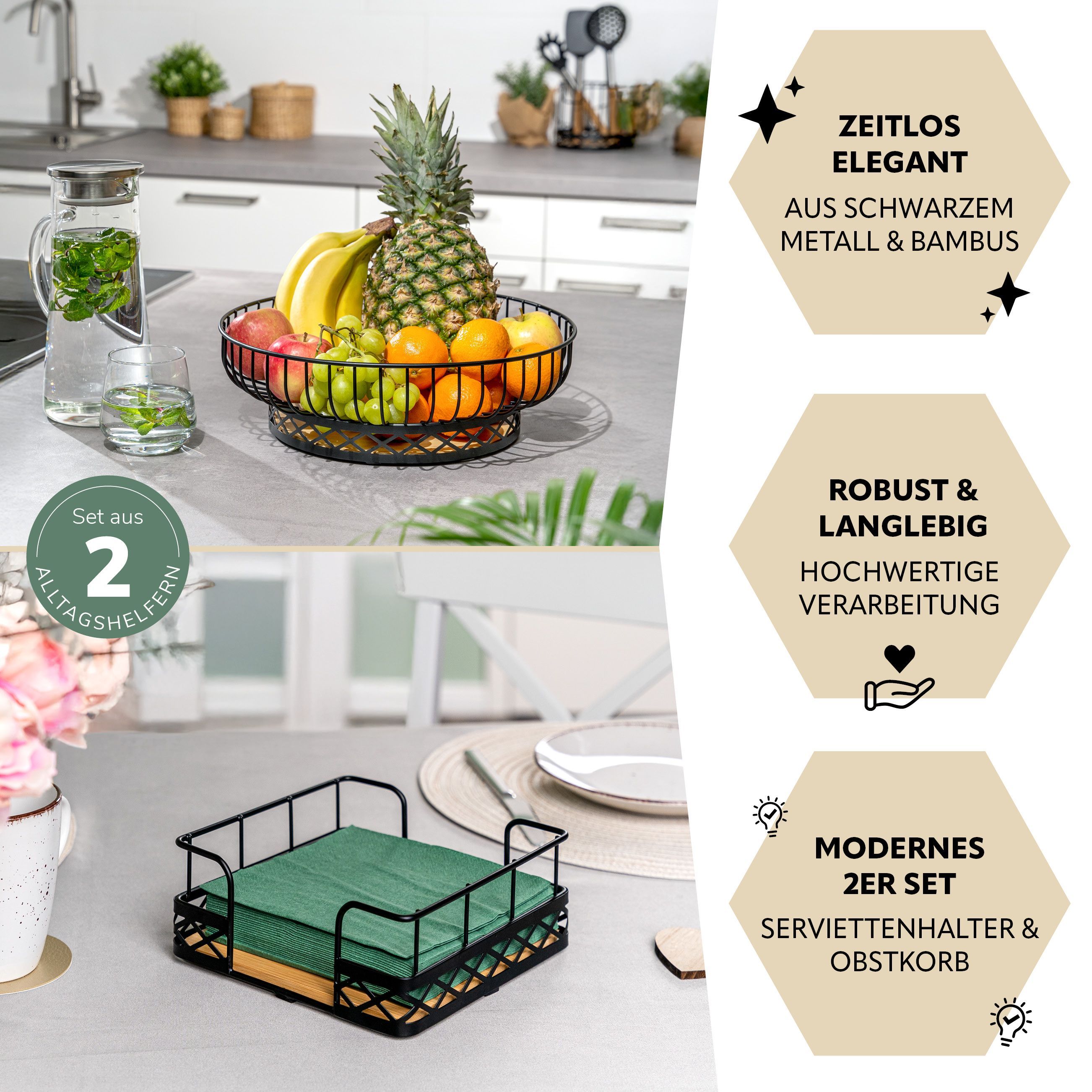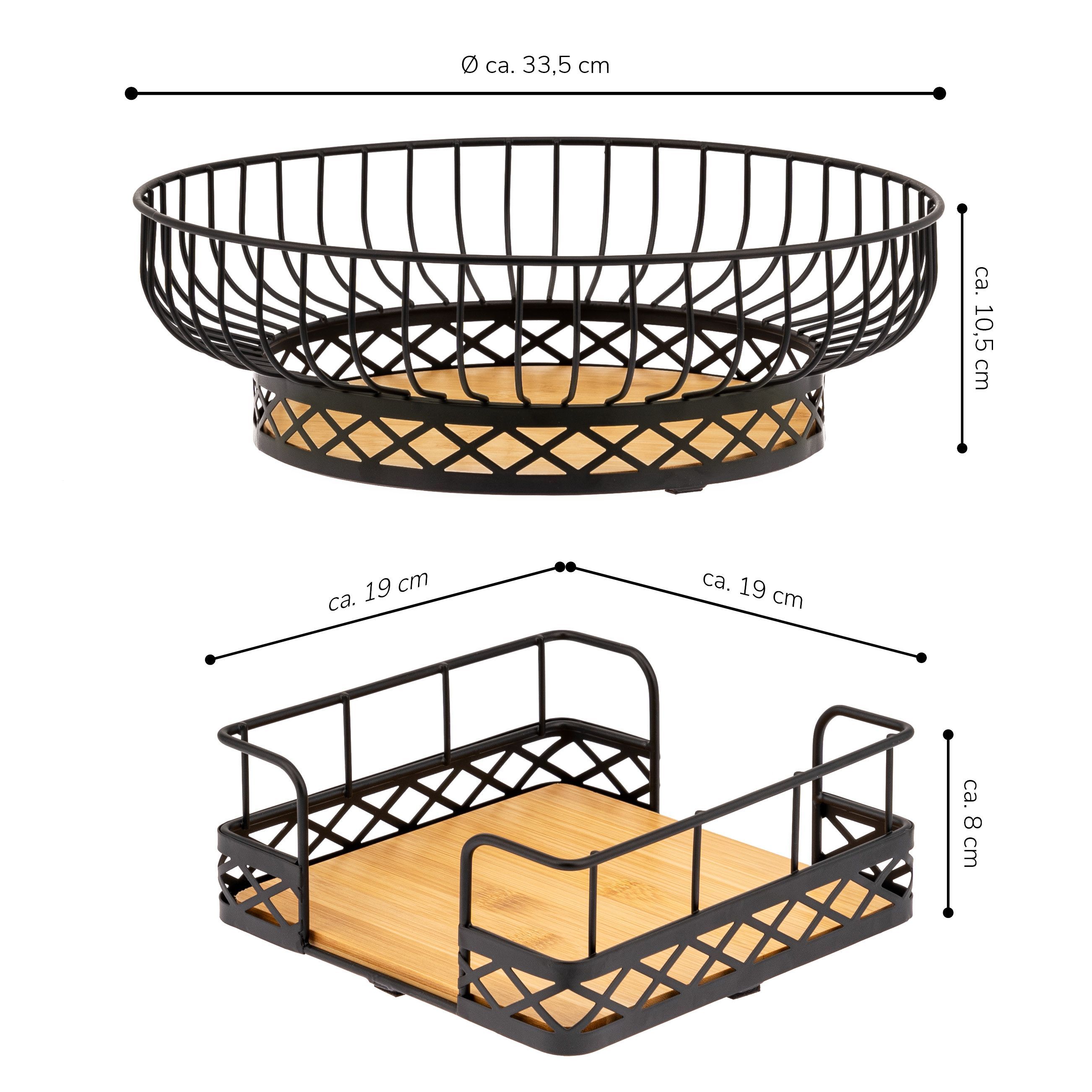bremermann Obstkorb 2er Set mit Serviettenhalter, Brotkorb aus Bambus und Metall