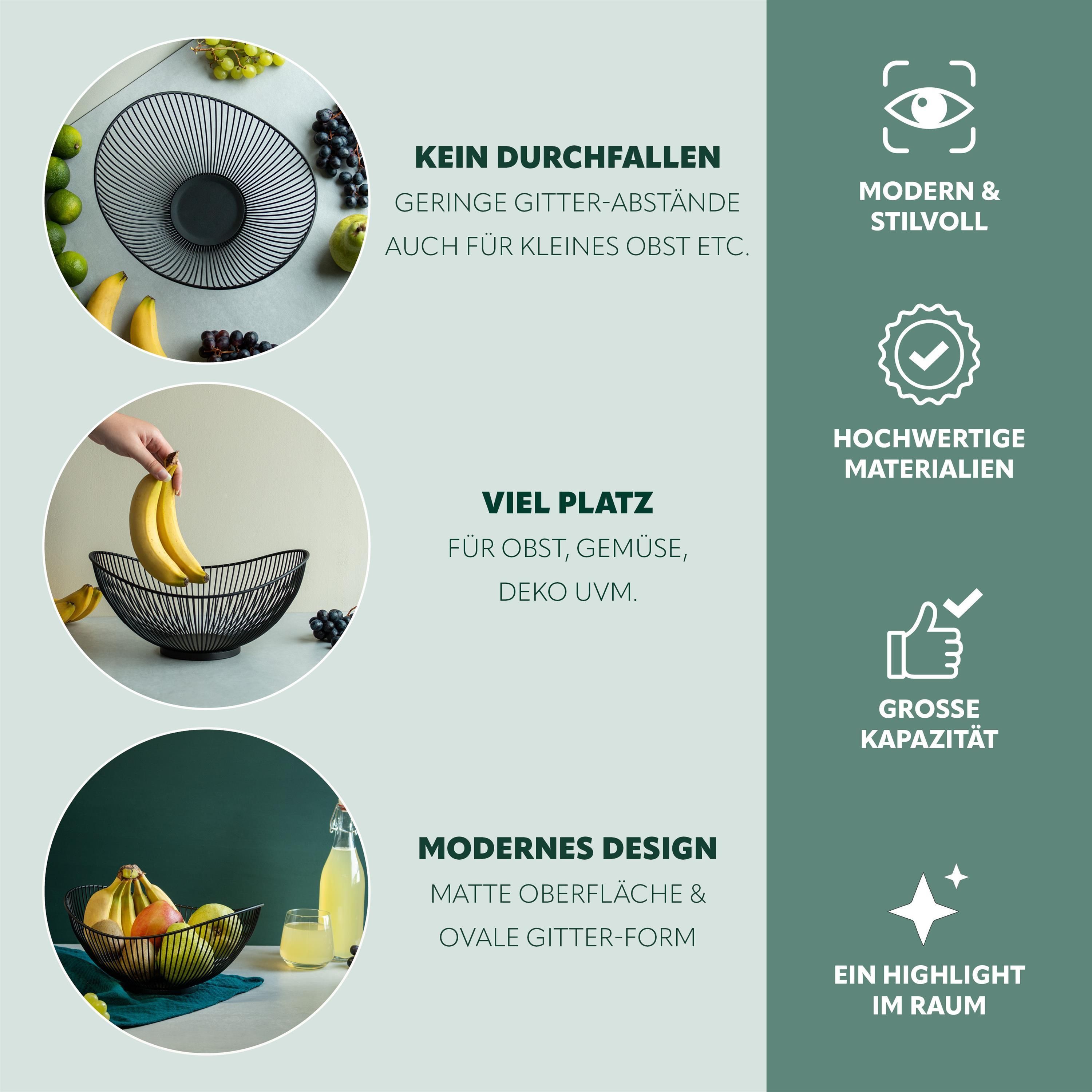 bremermann Obstschale, Obstkorb, Drahtkorb oval ca. 29 x 13,5 x 25,5 cm, schwarz matt