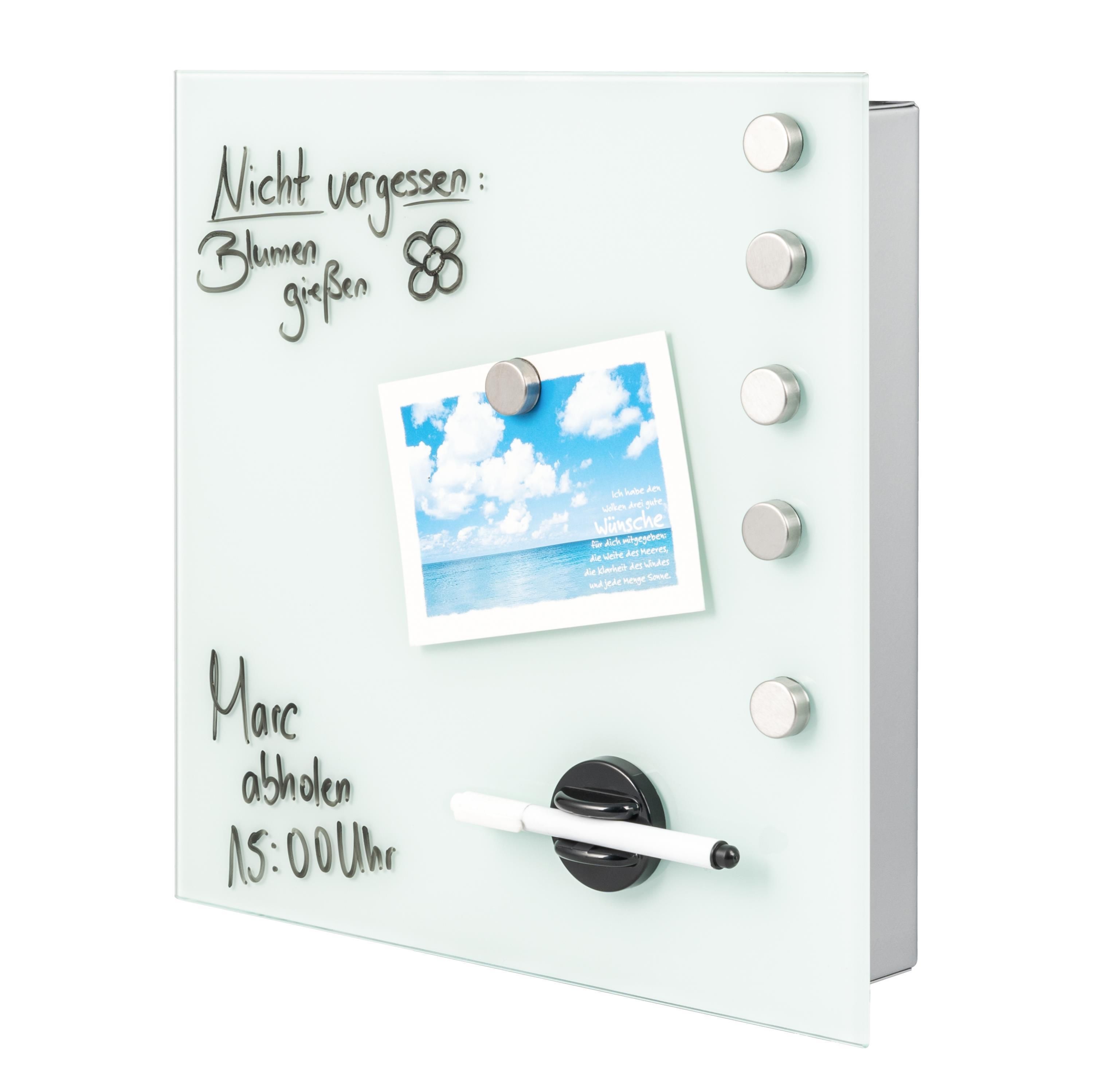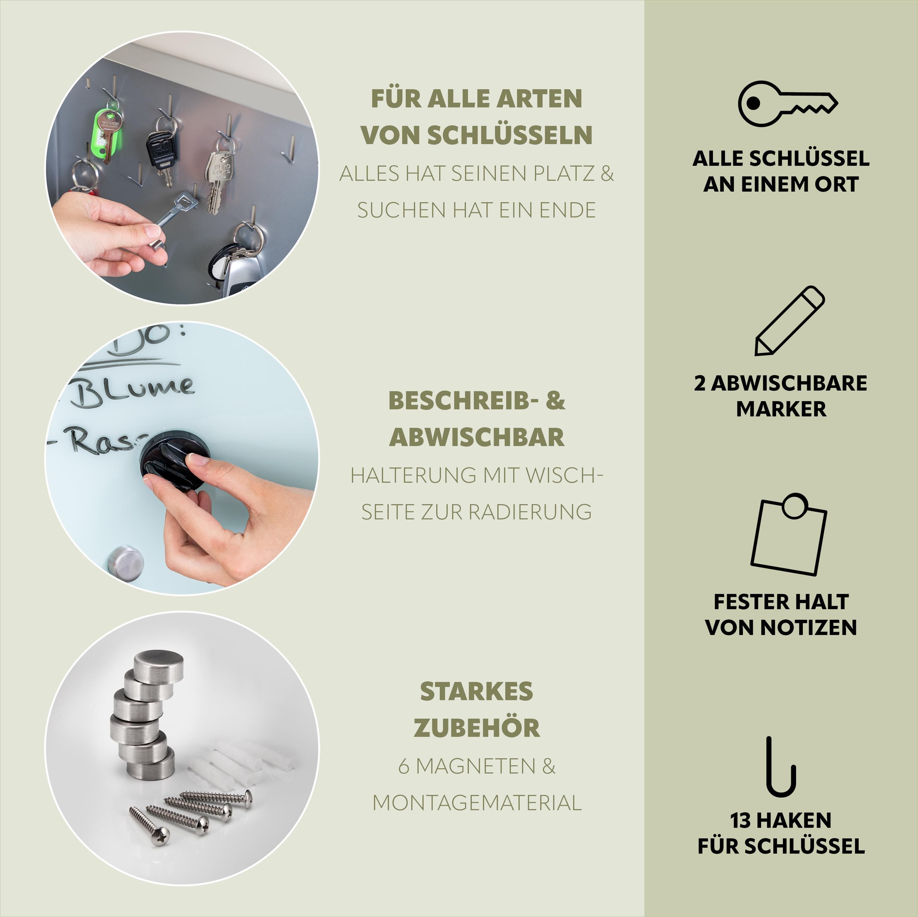 bremermann Schlüsselkasten XL weiße Glasfront, 13 Haken, Korpus Metall grau