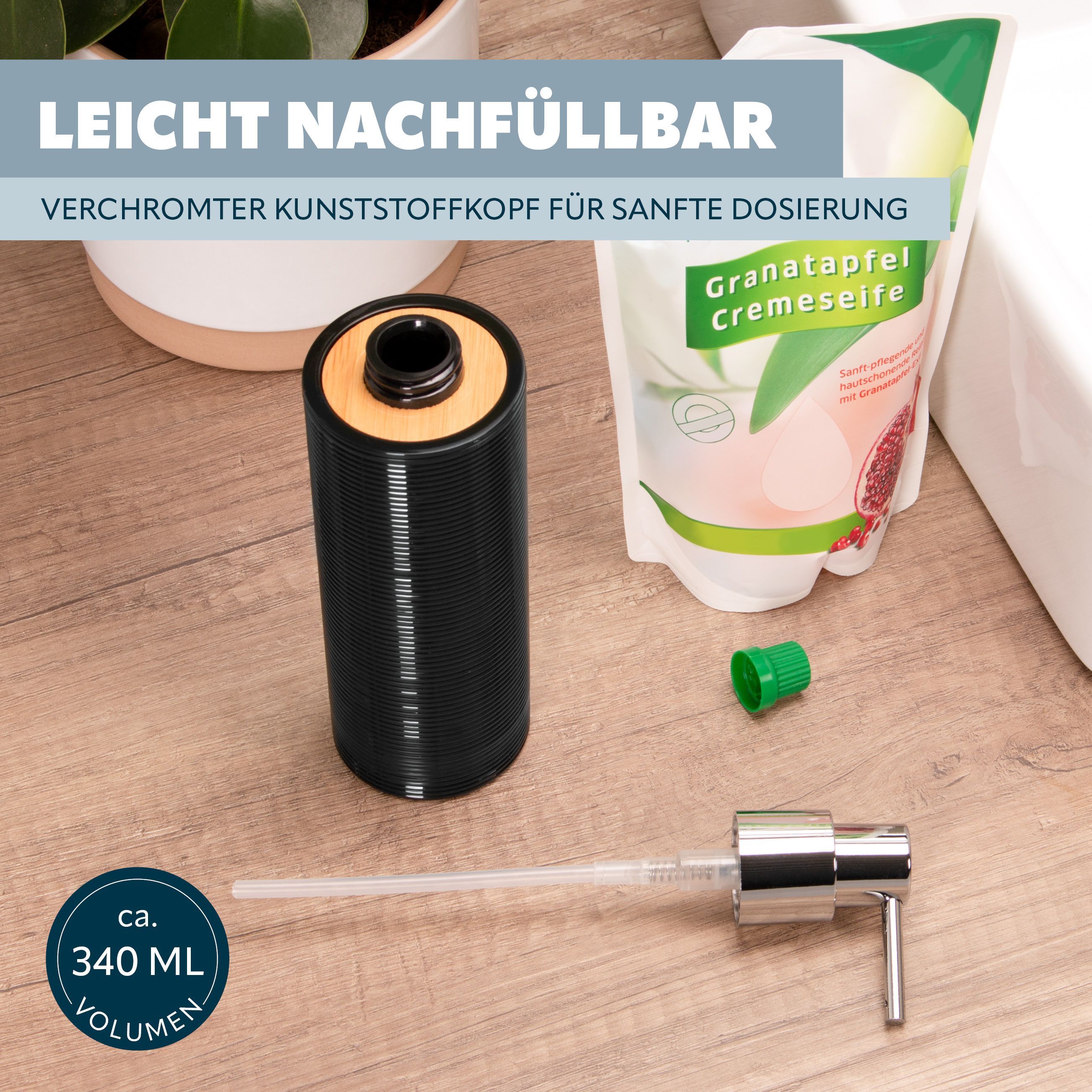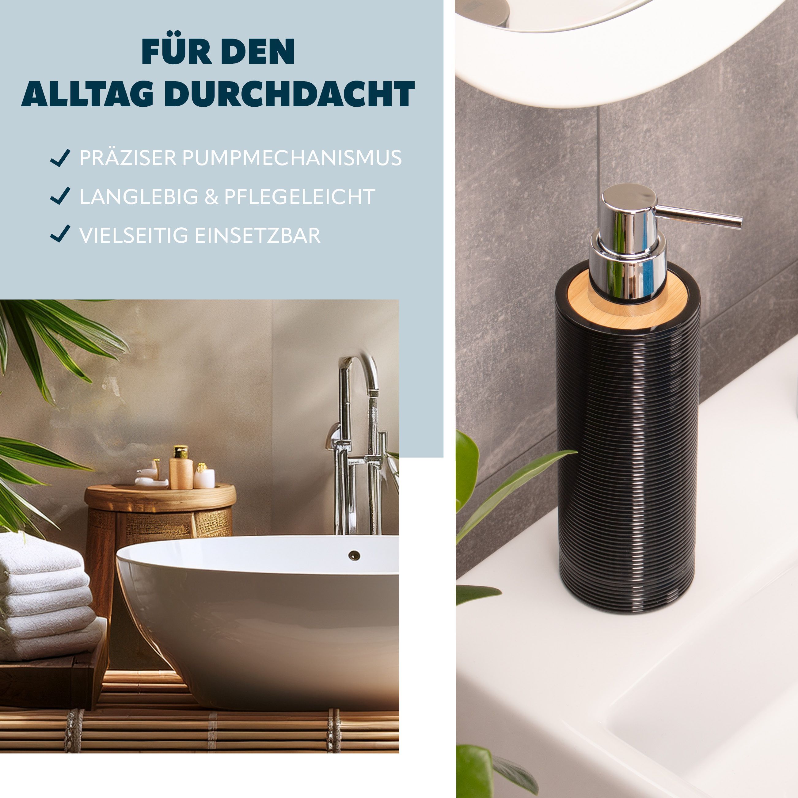 bremermann Seifenspender SEGNO aus Bambus und Kunststoff | Füllmenge ca. 340 ml, schw