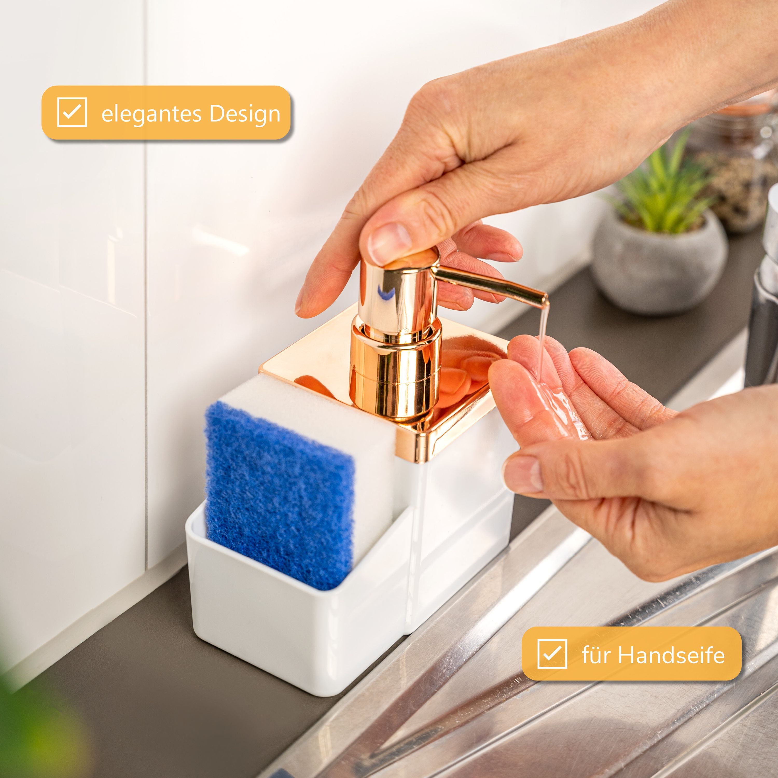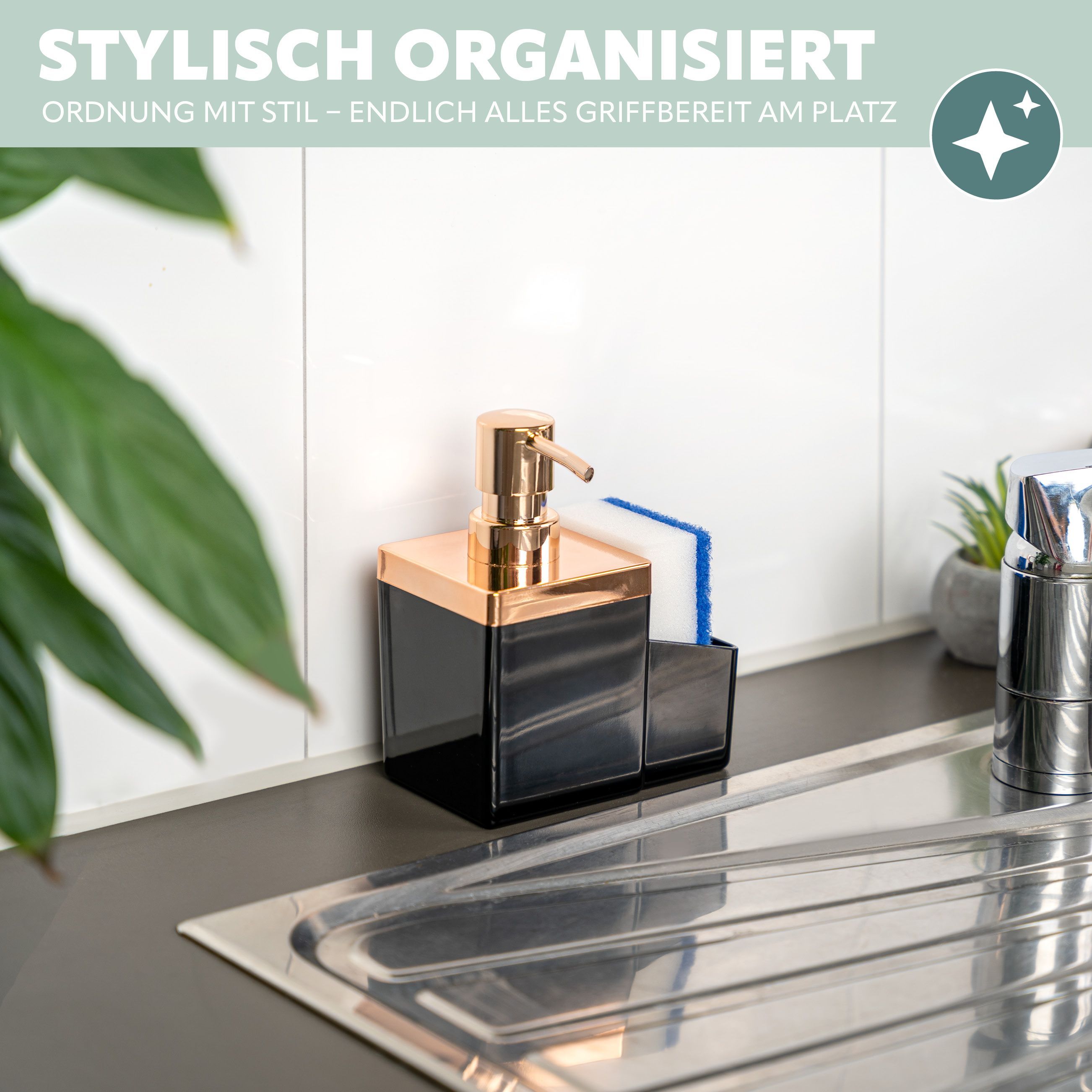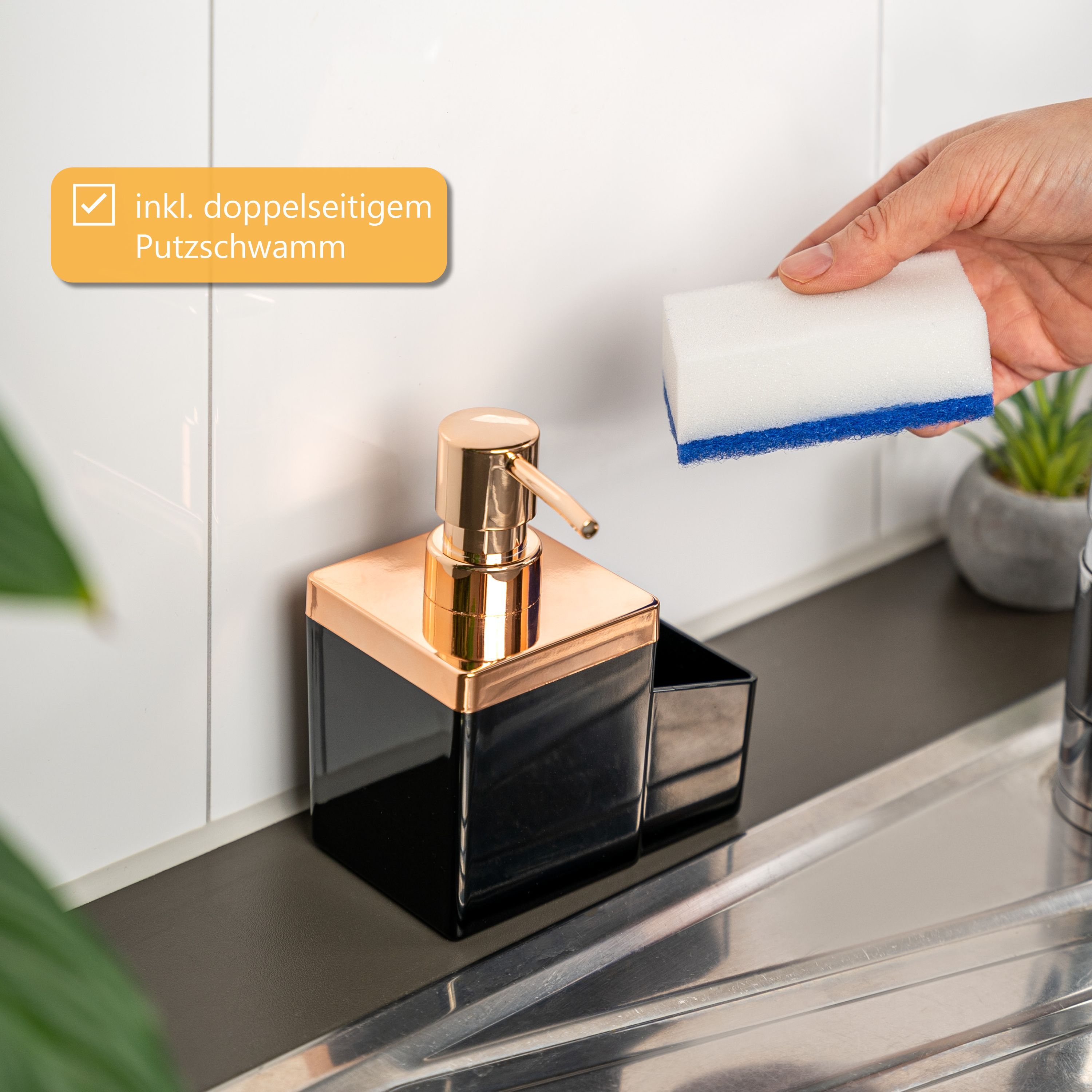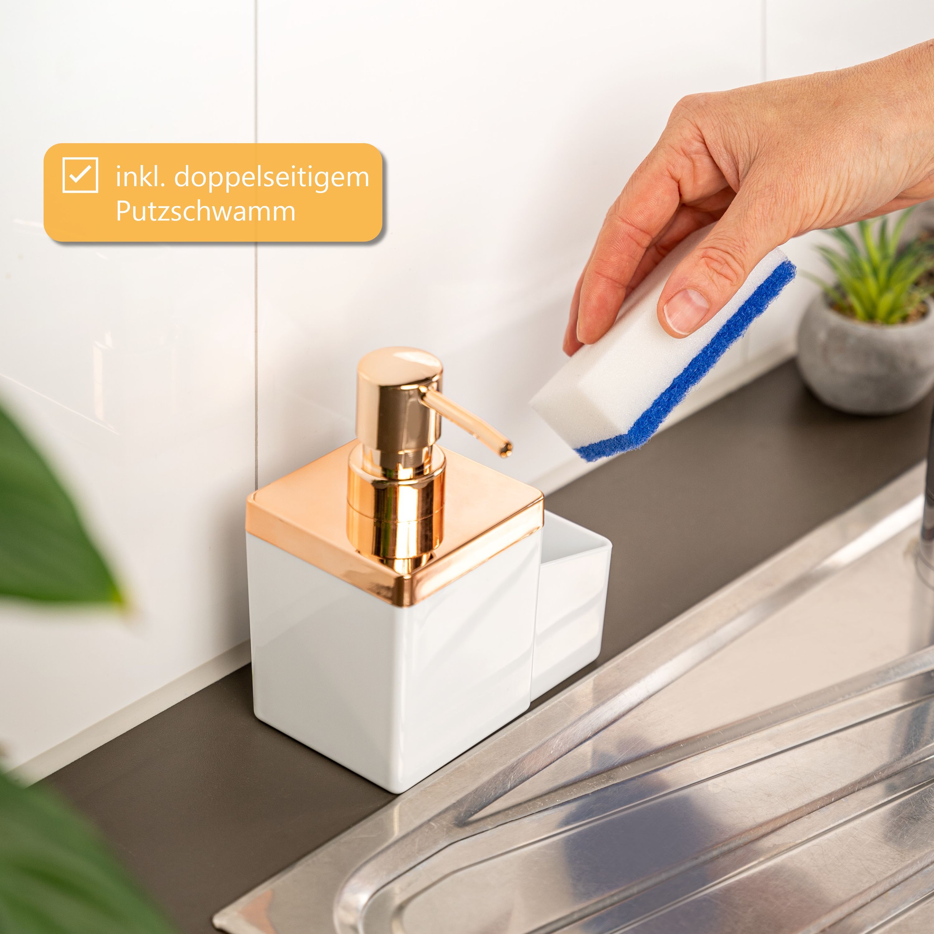 bremermann Spülbecken-Organizer mit Spülmittelspender & Schwammhalter, rosegold