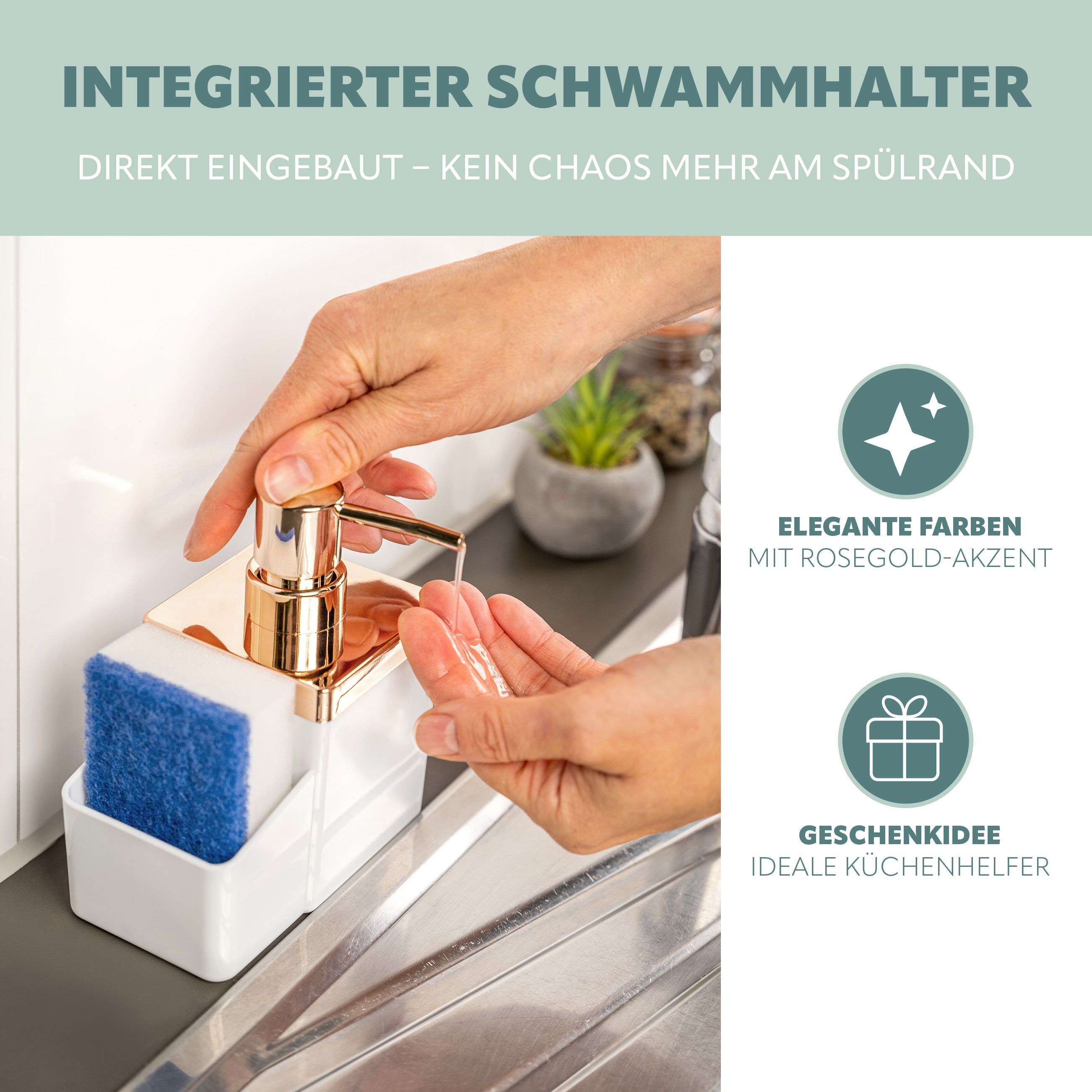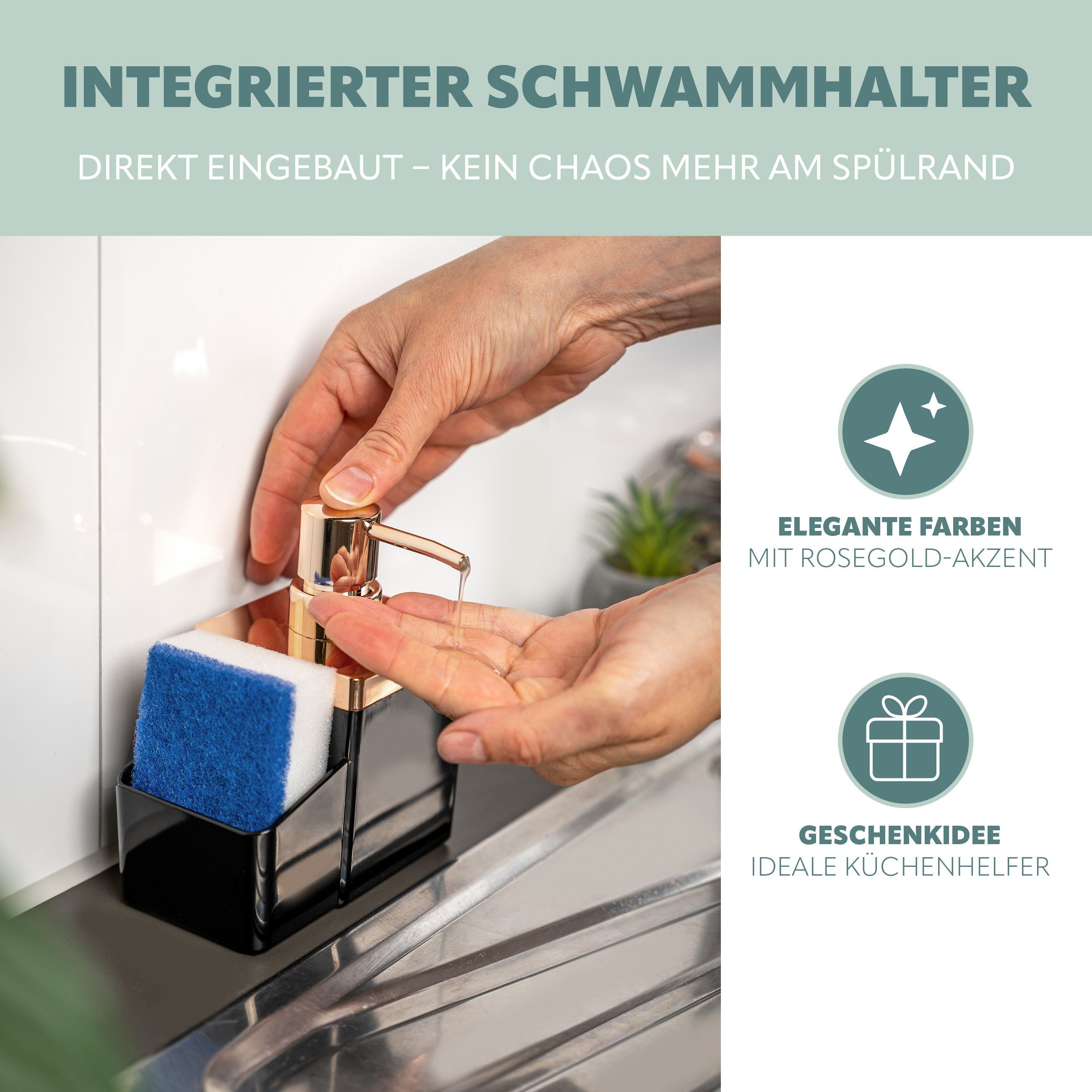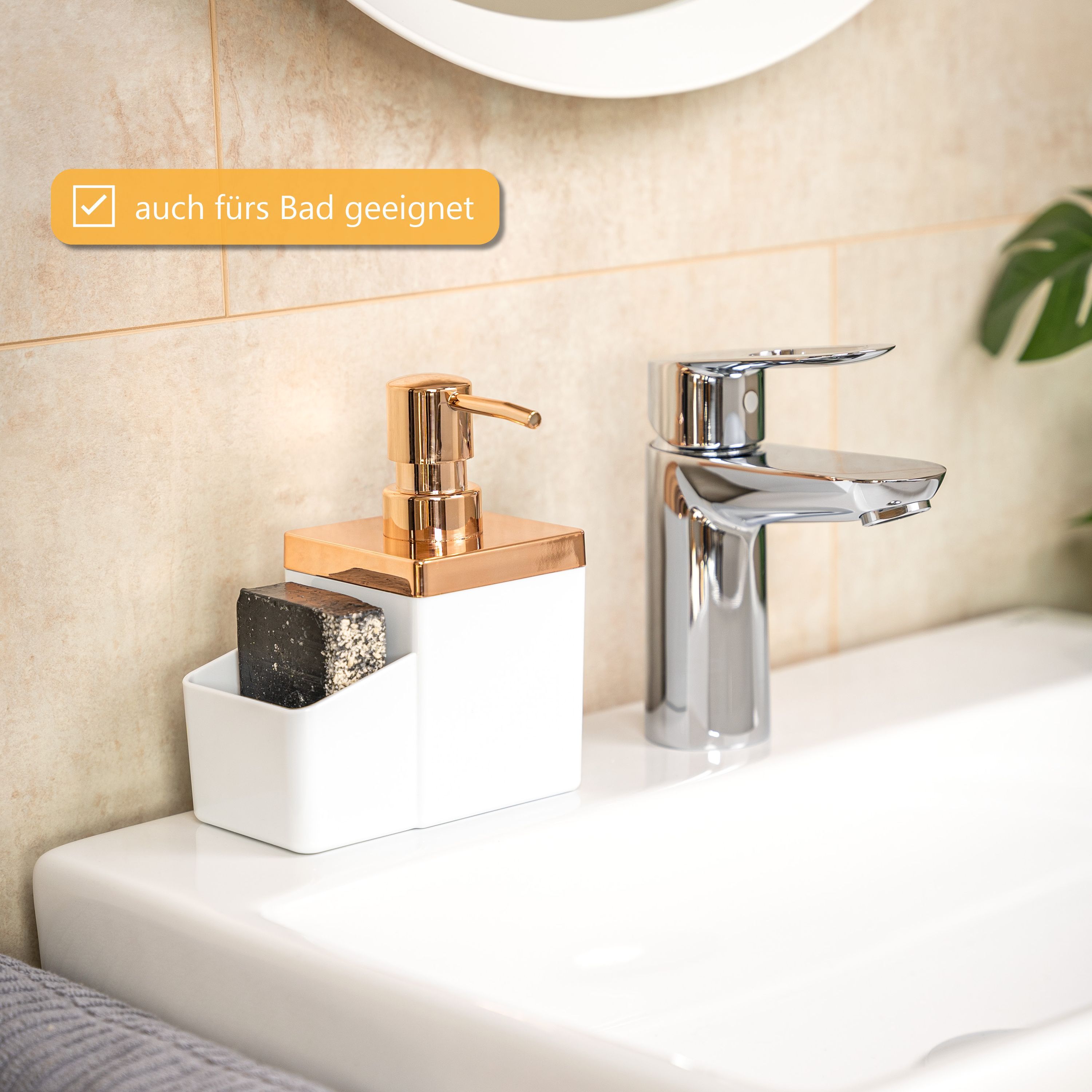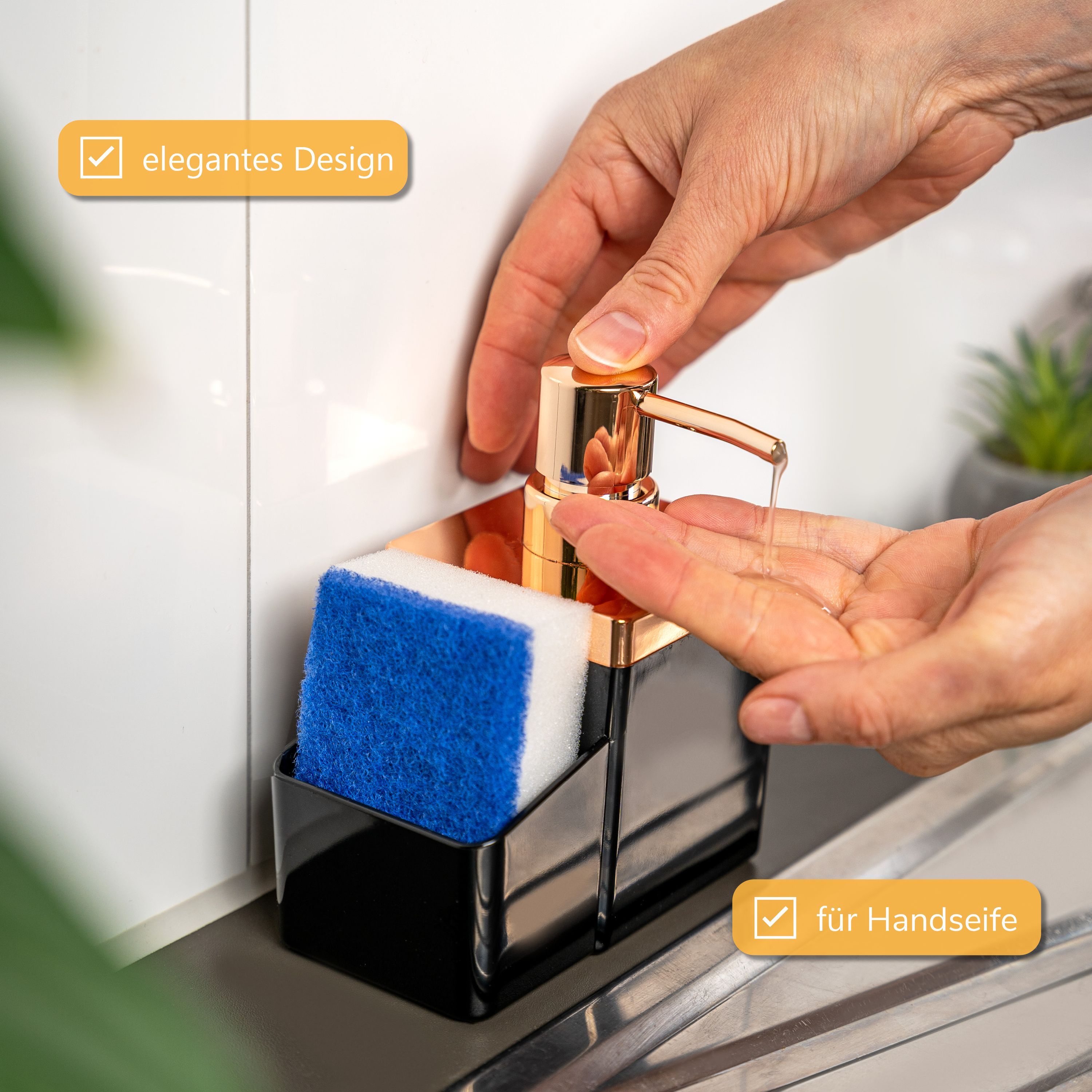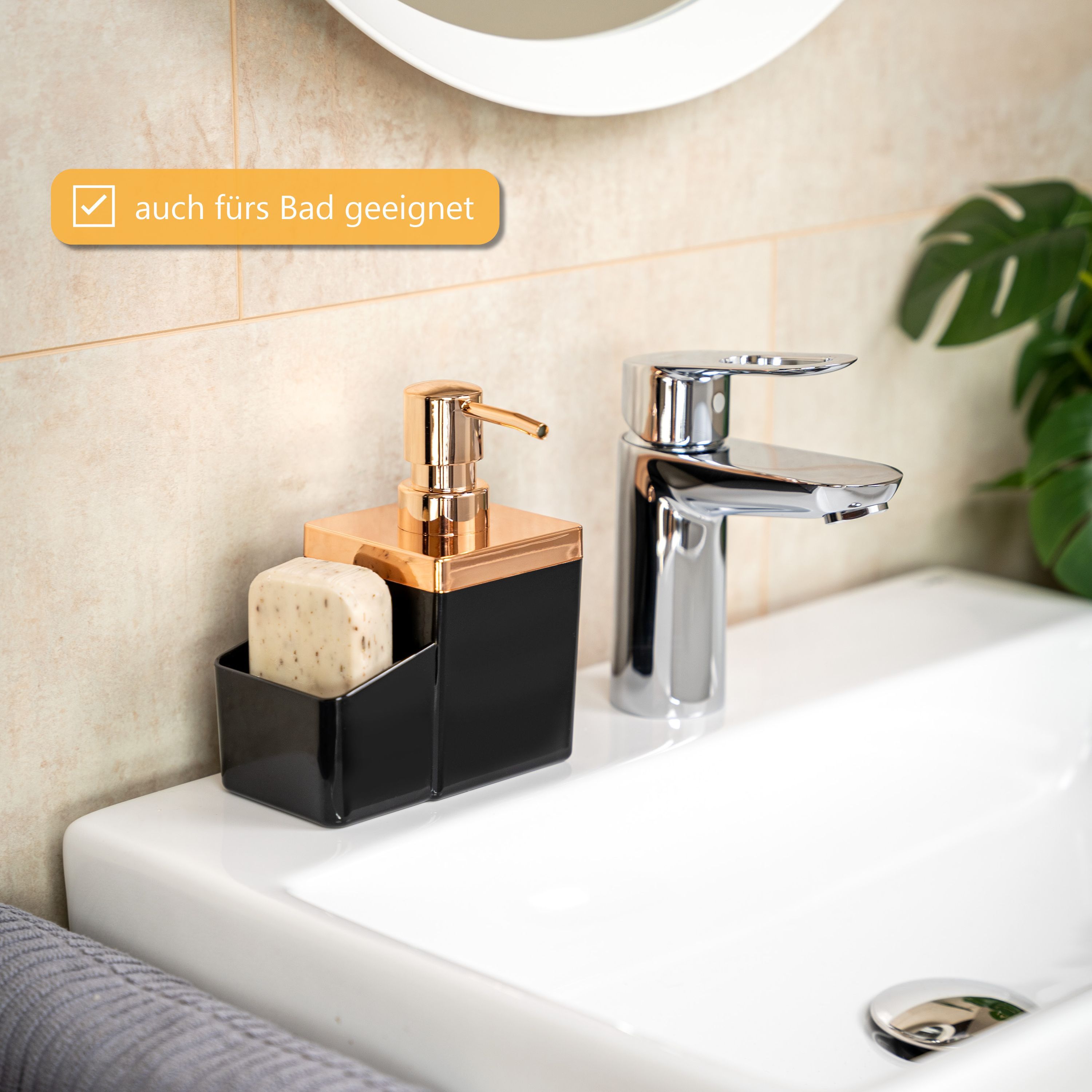 bremermann Spülbecken-Organizer mit Spülmittelspender & Schwammhalter, rosegold