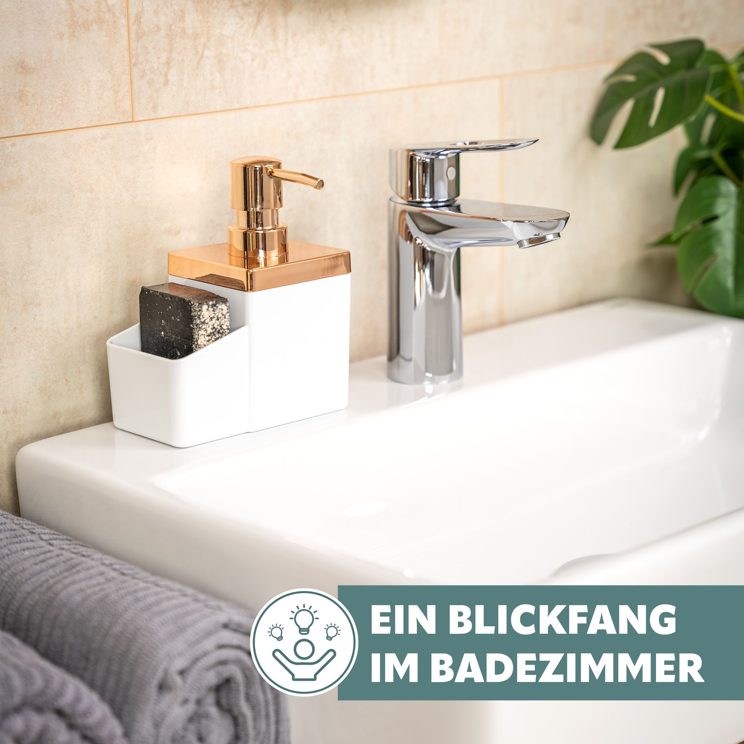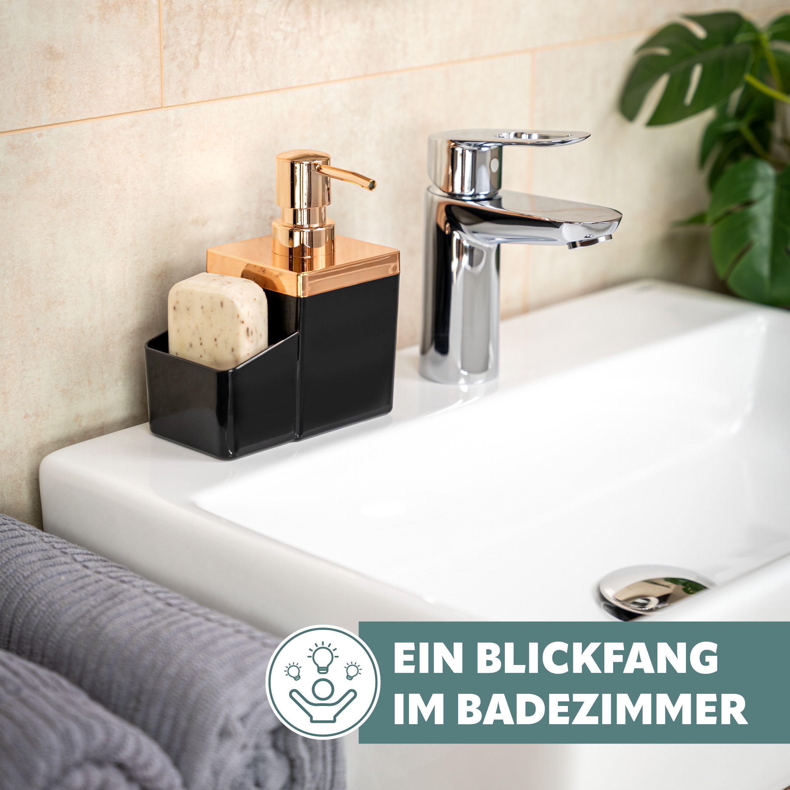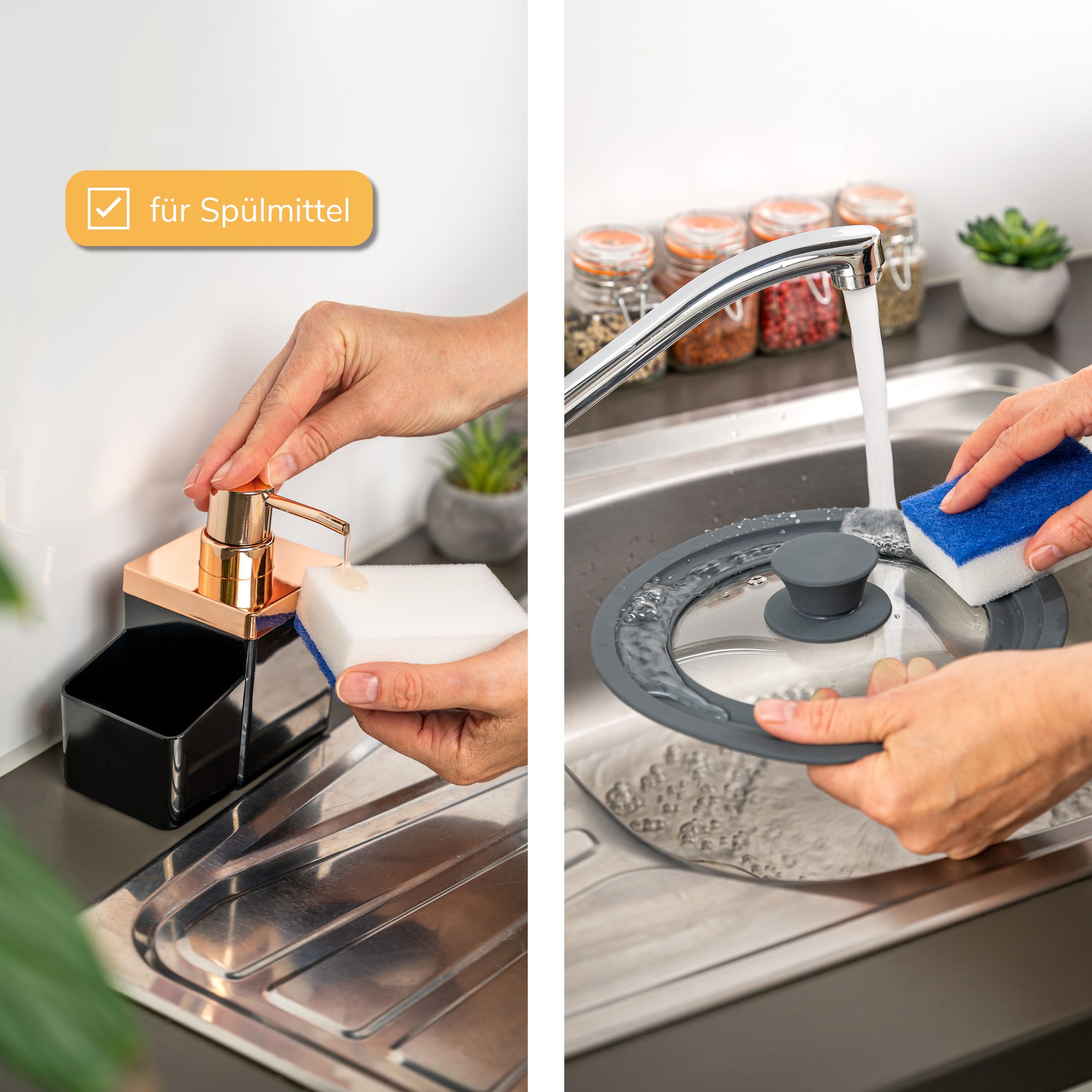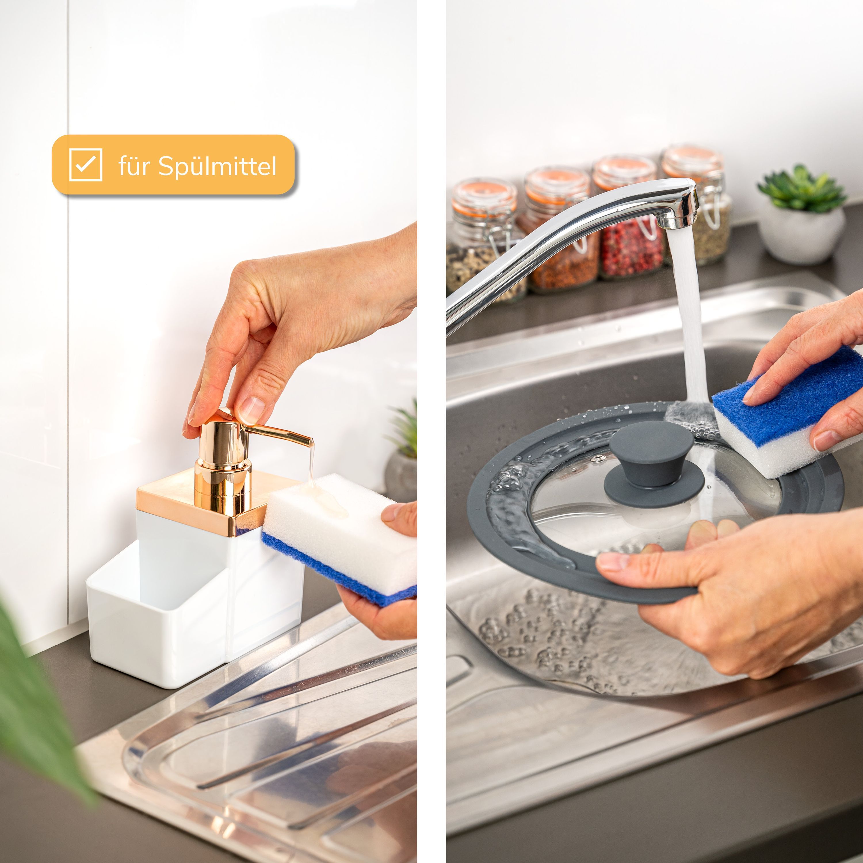 bremermann Spülbecken-Organizer mit Spülmittelspender & Schwammhalter, rosegold