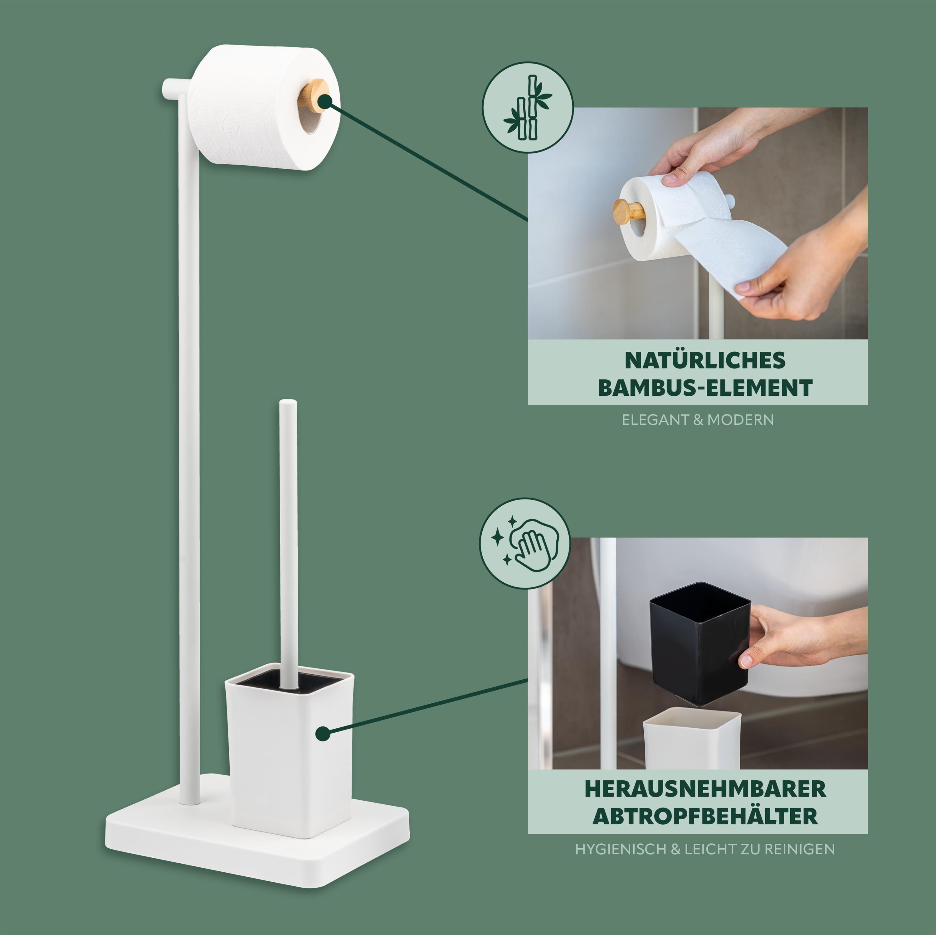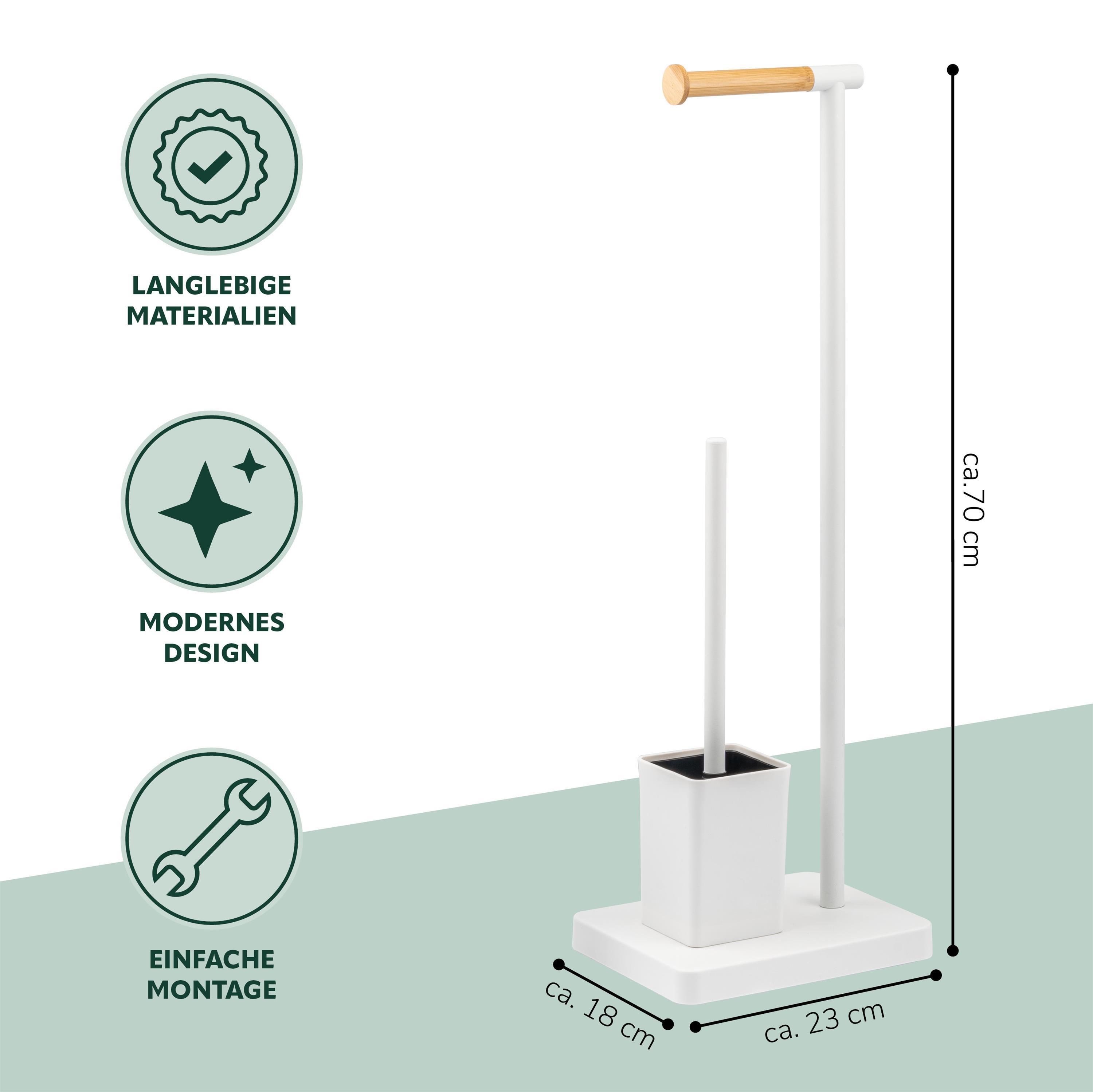 bremermann Stand-WC-Garnitur 2in1, WC-Bürste, WC-Rollenhalter, weiß/Bambus