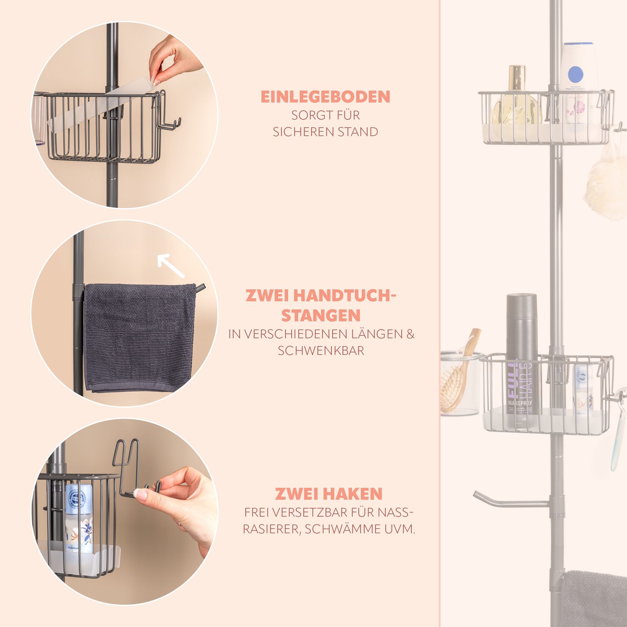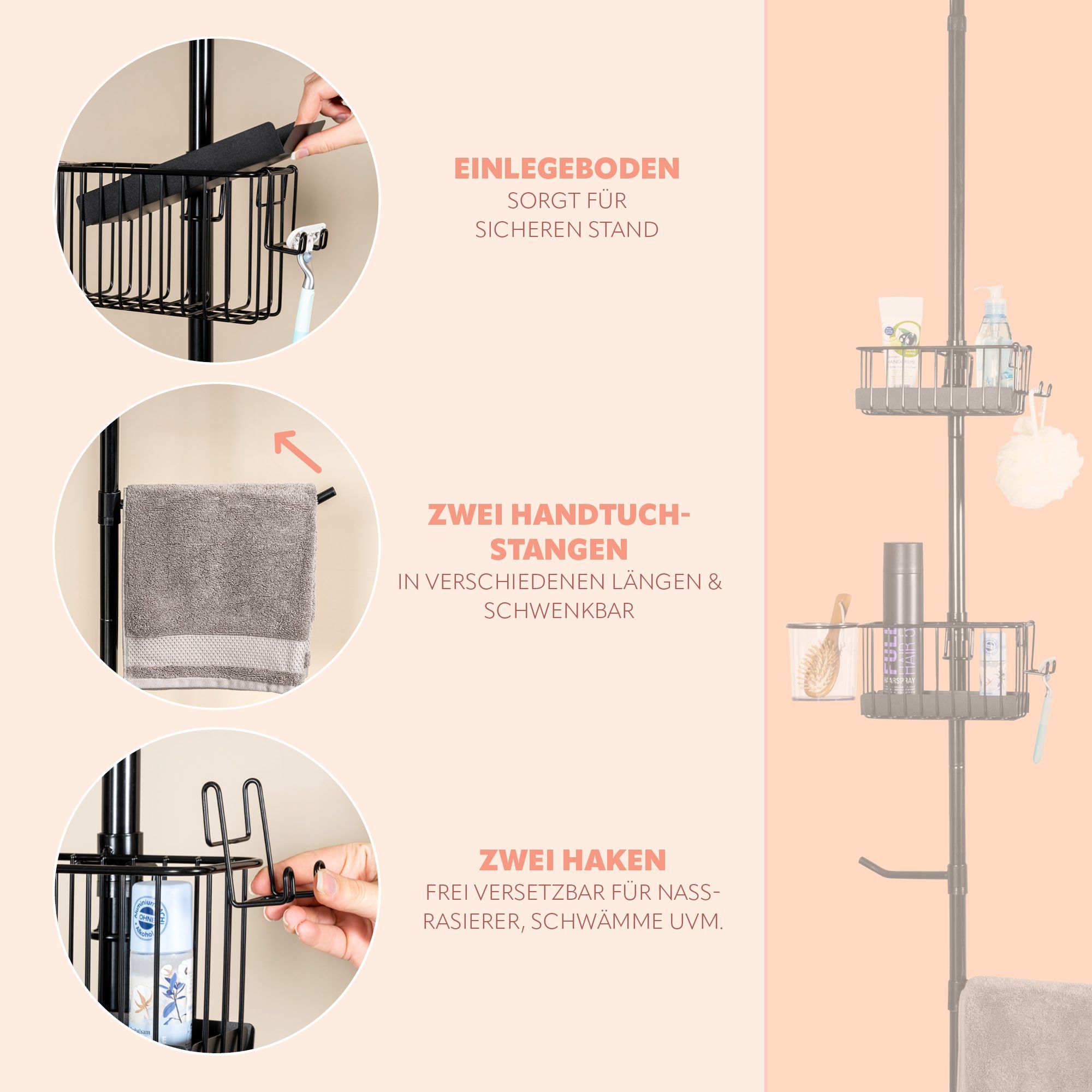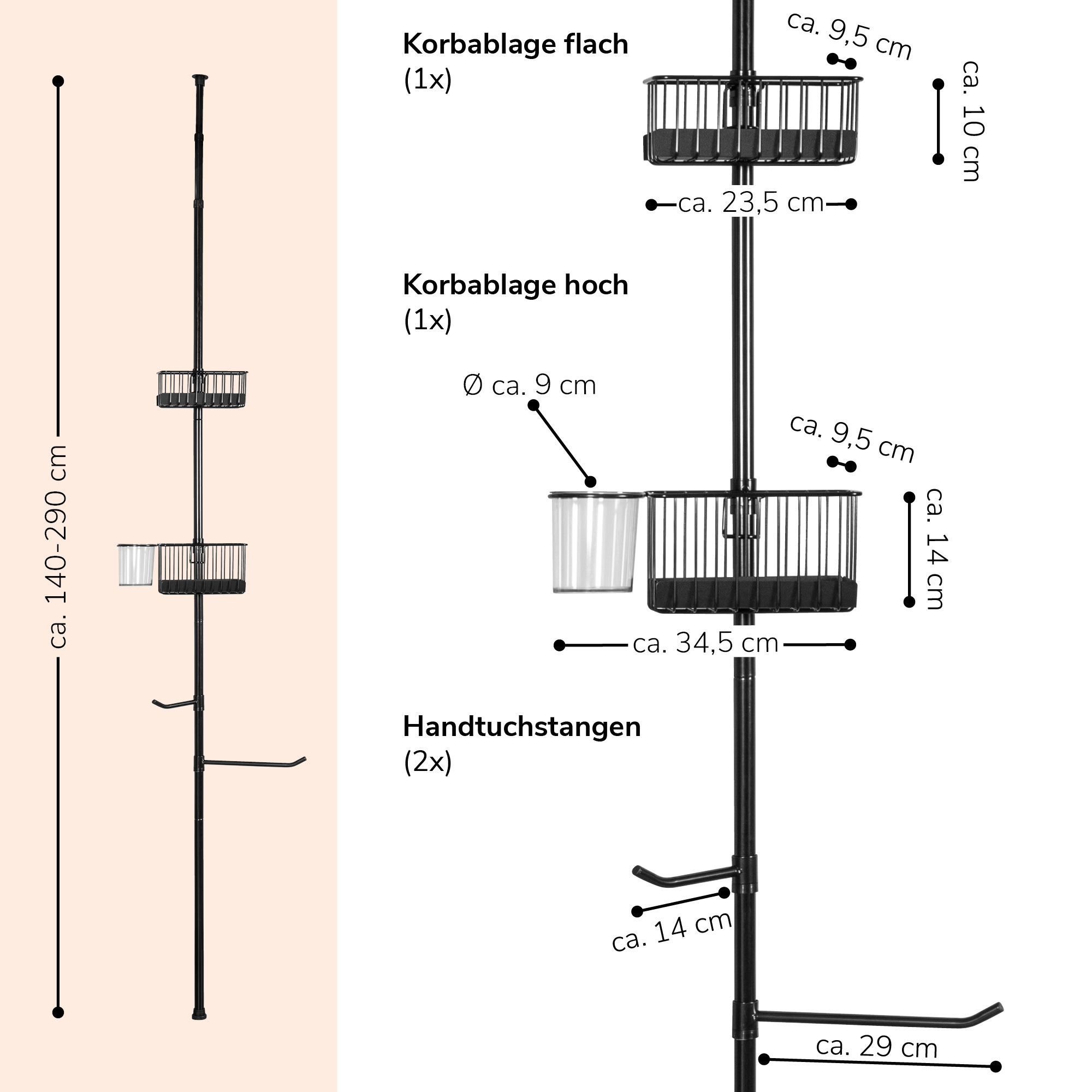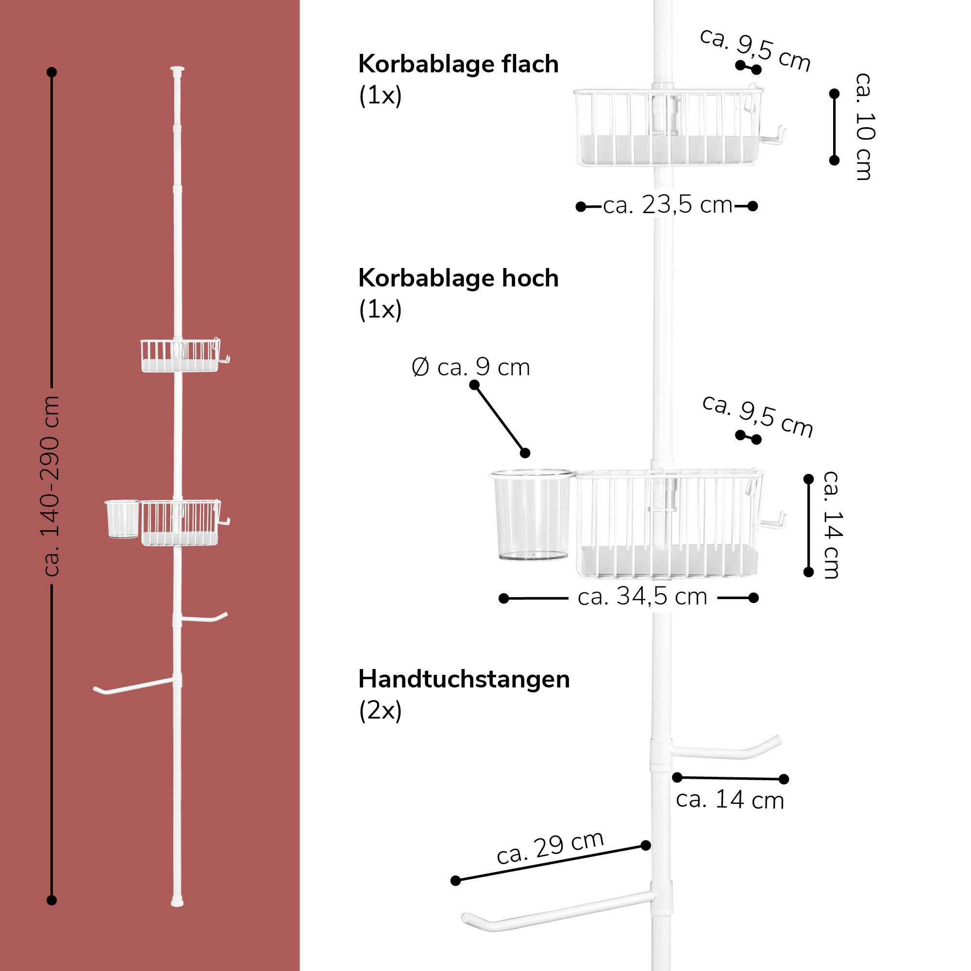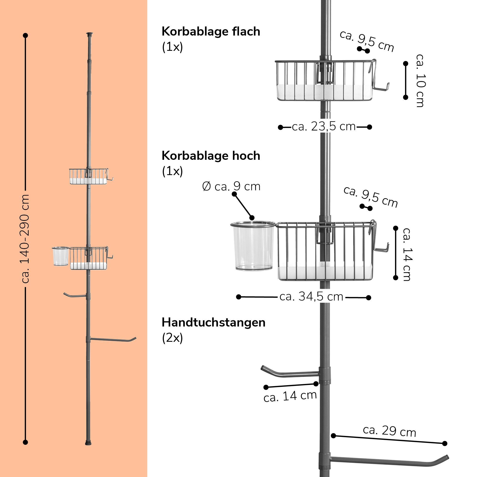 bremermann Teleskop-Badregal, 2 Körbe, 2 Stangen, Stange bis max. ca. 290 cm