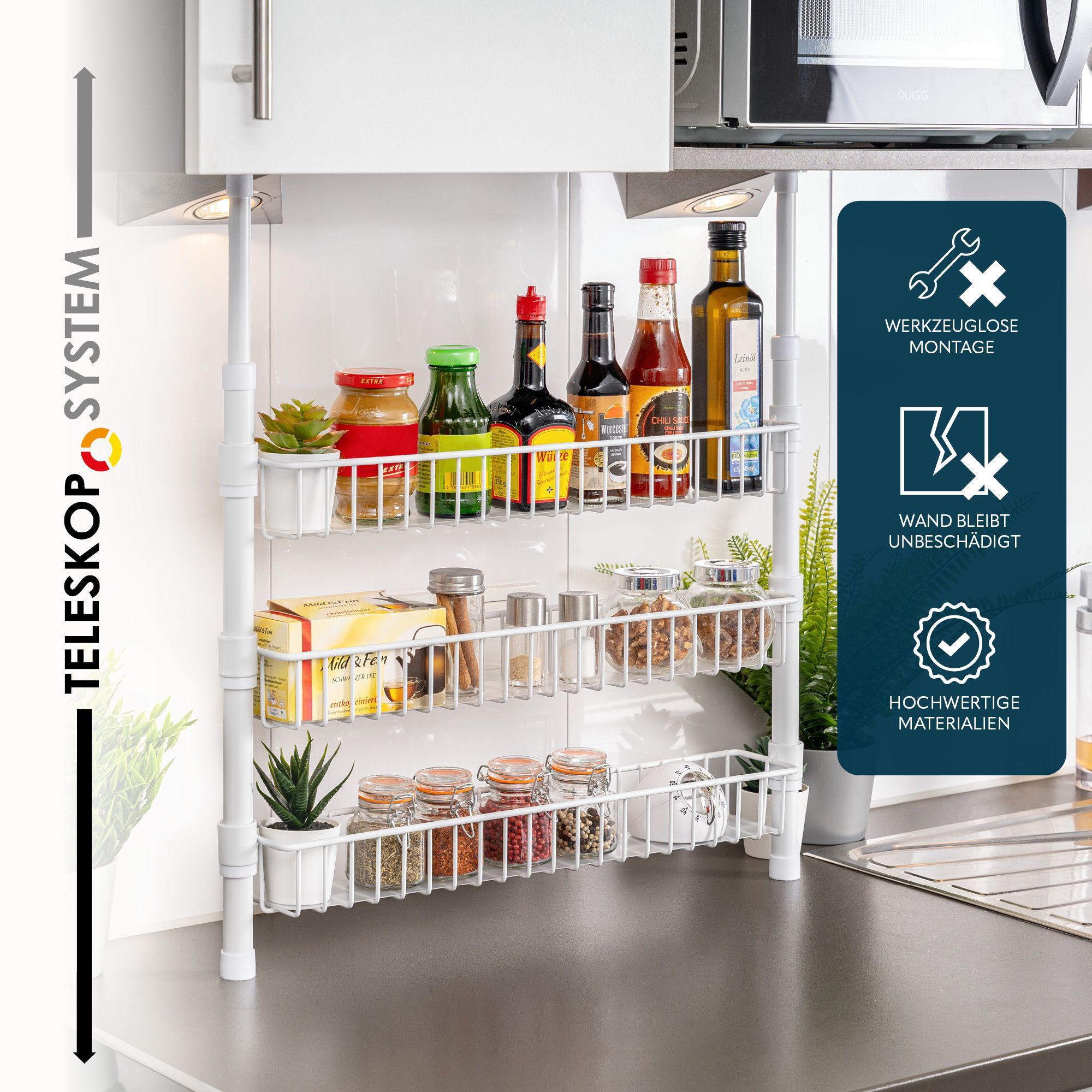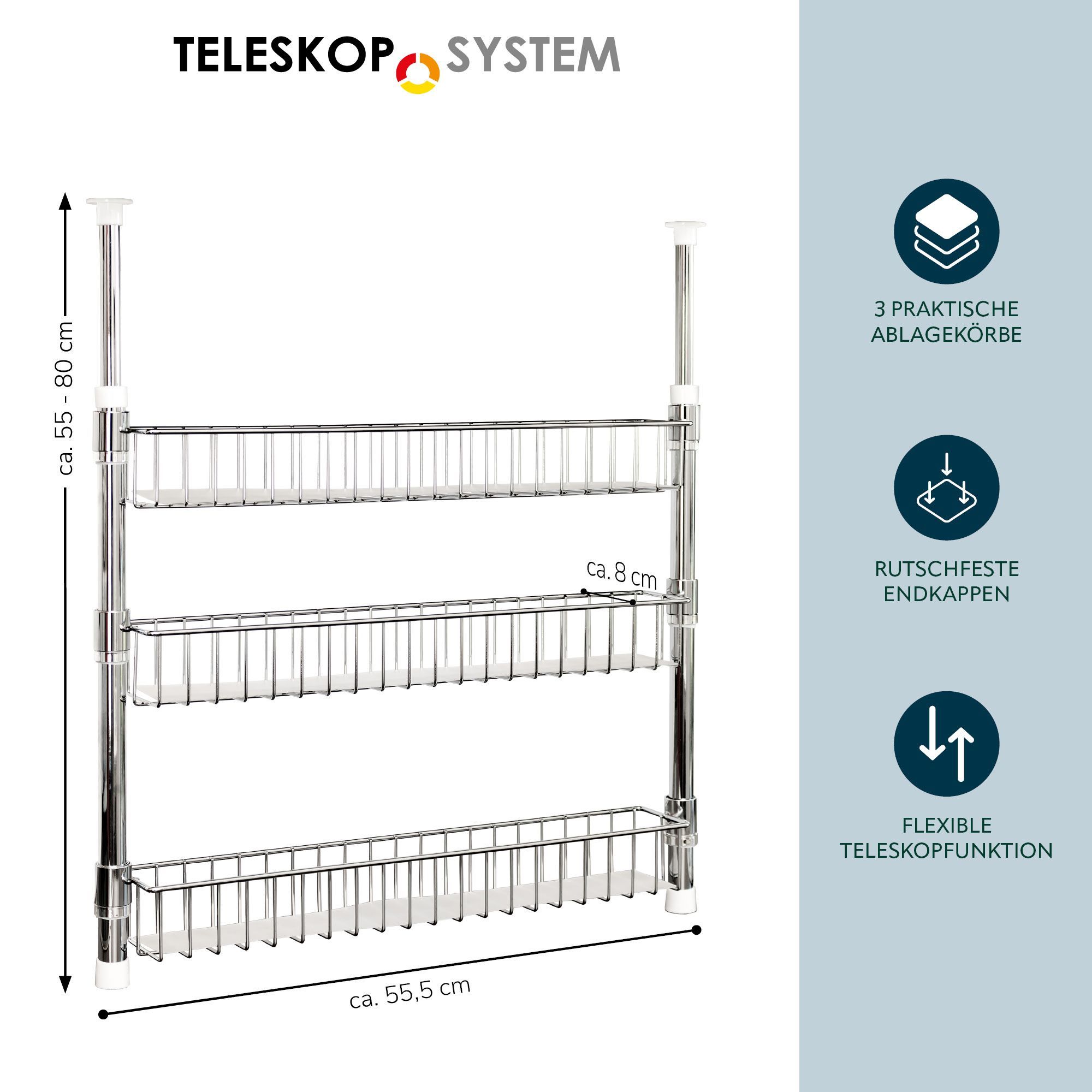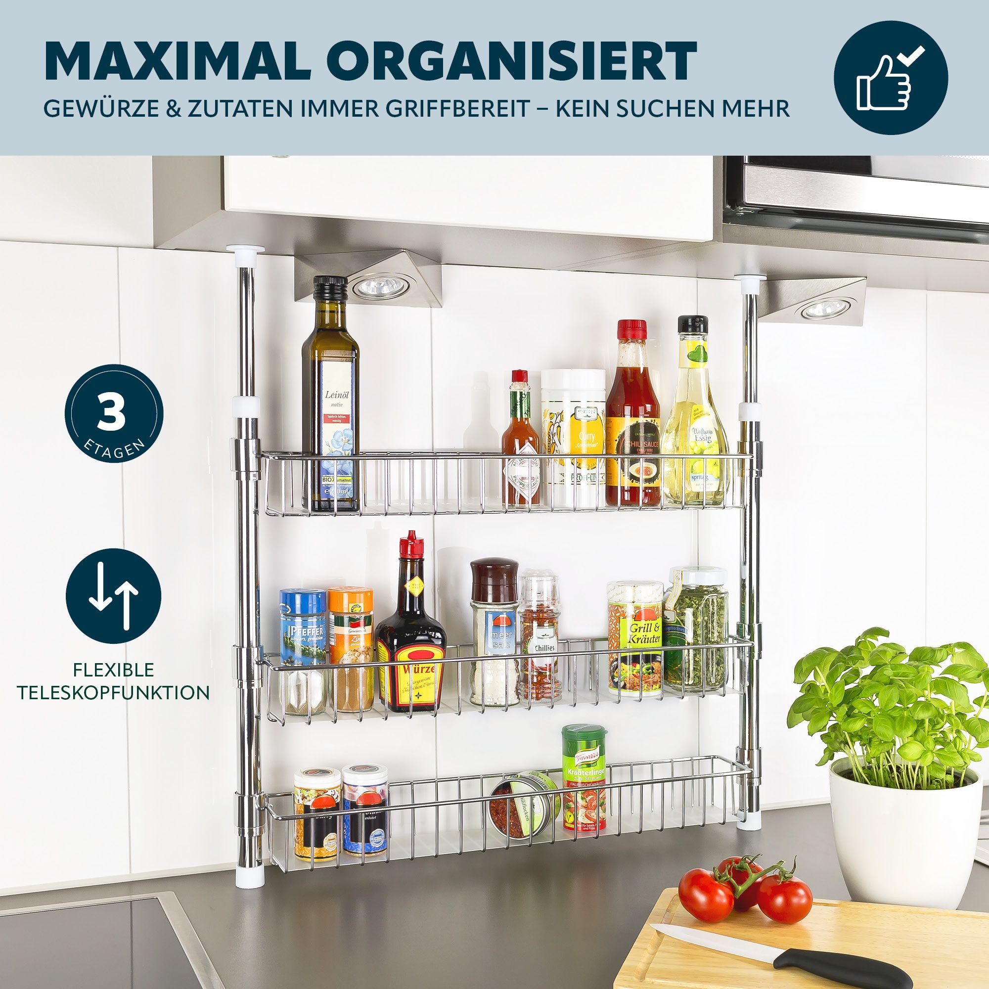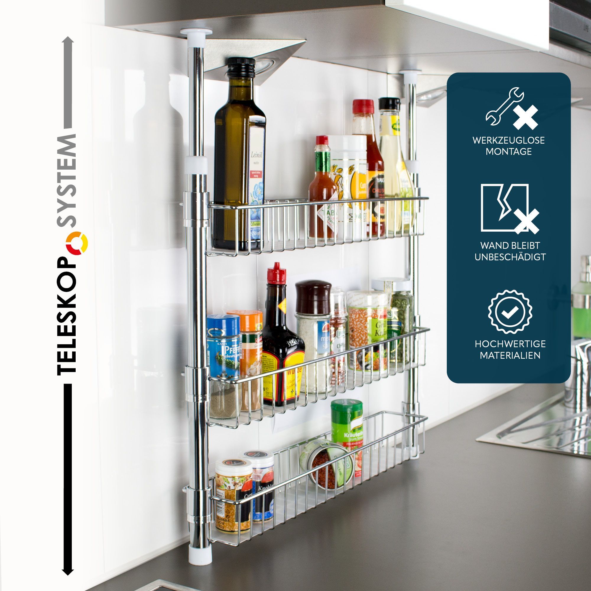 bremermann Teleskop-Gewürzregal, Teleskopregal mit 3 Korbablagen