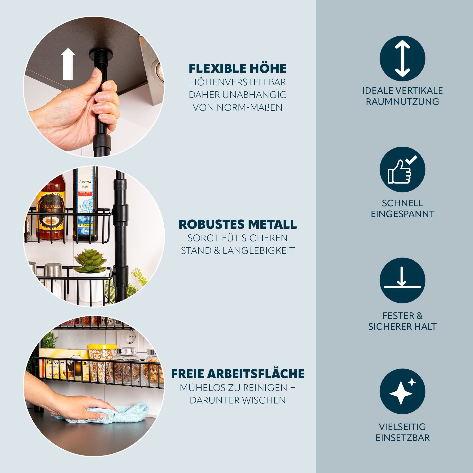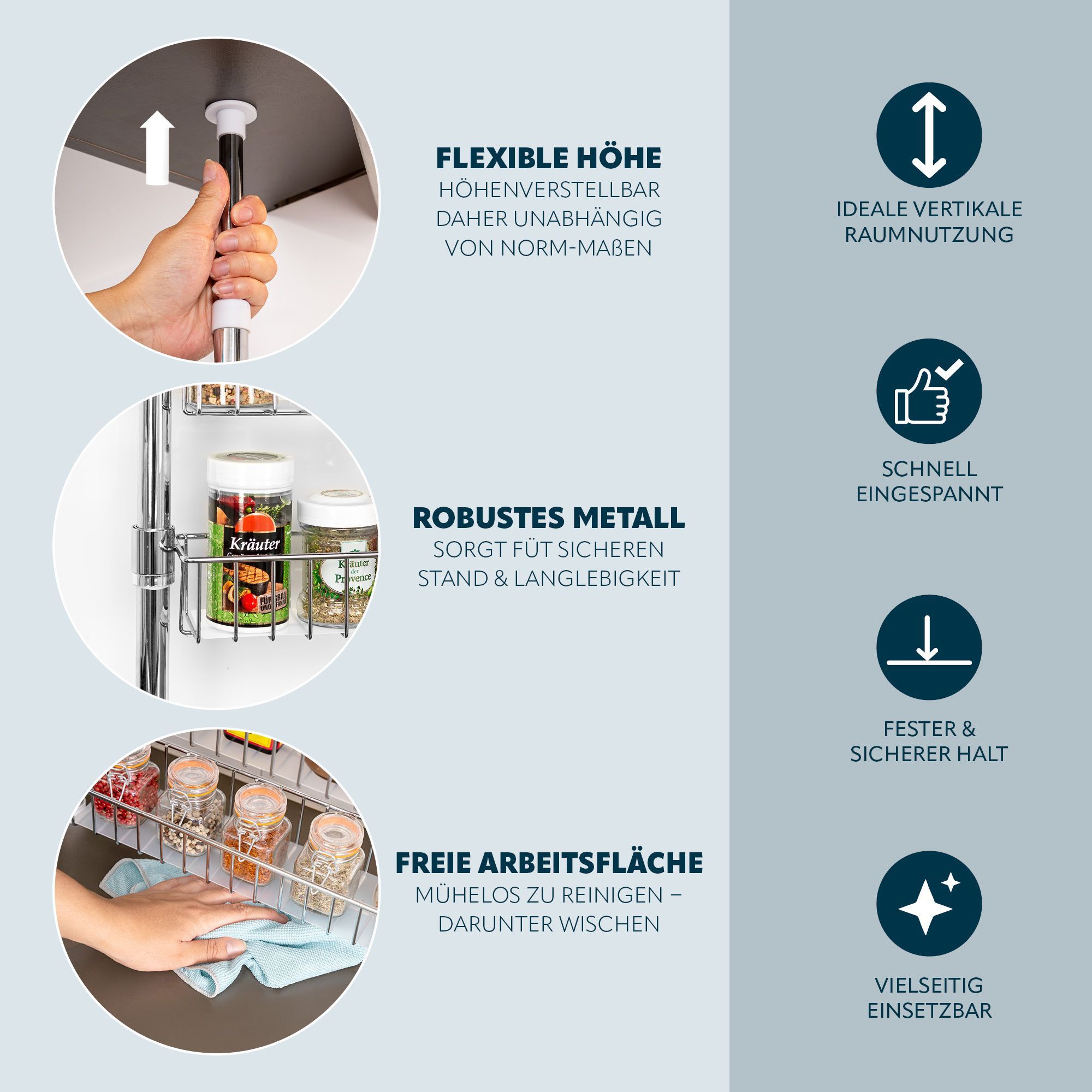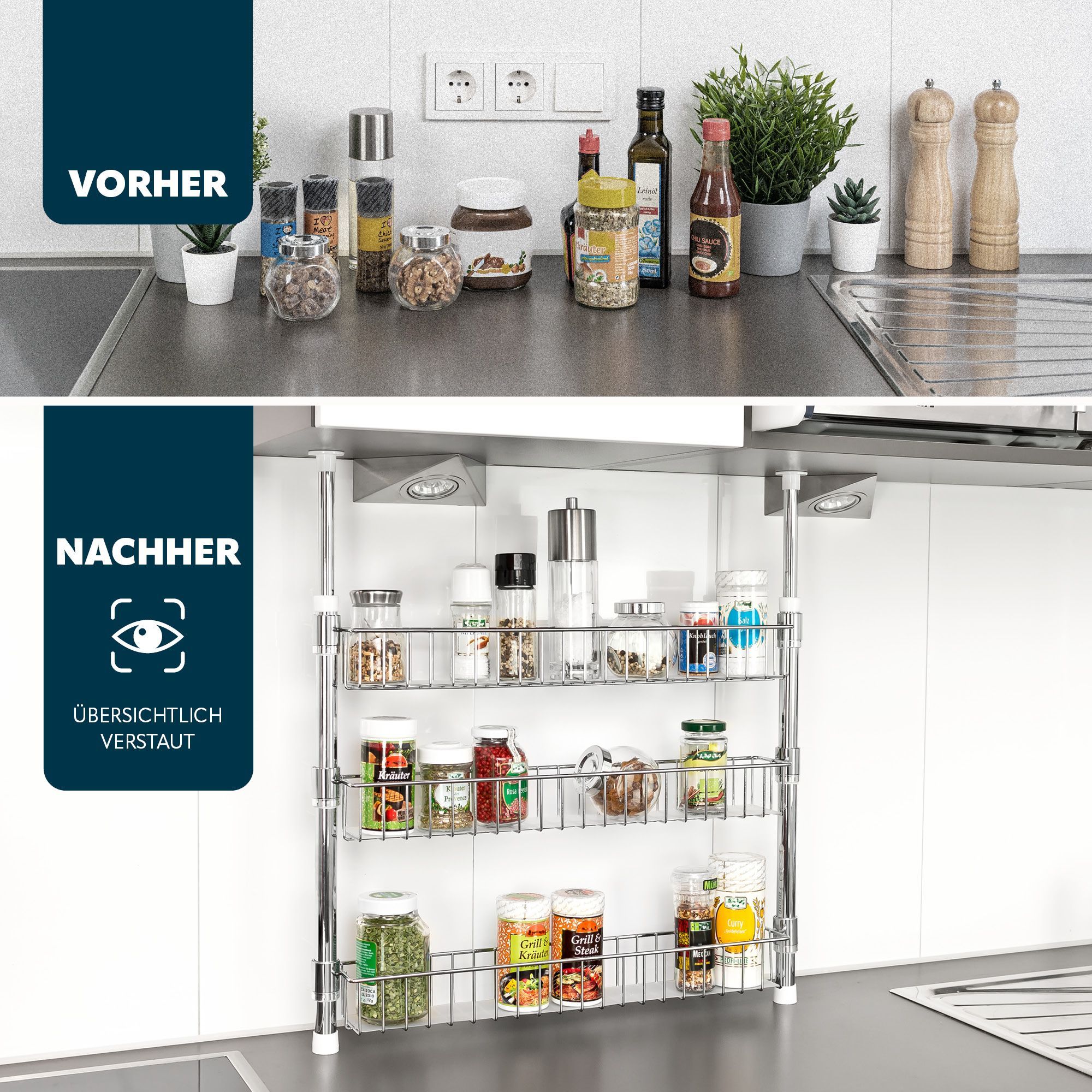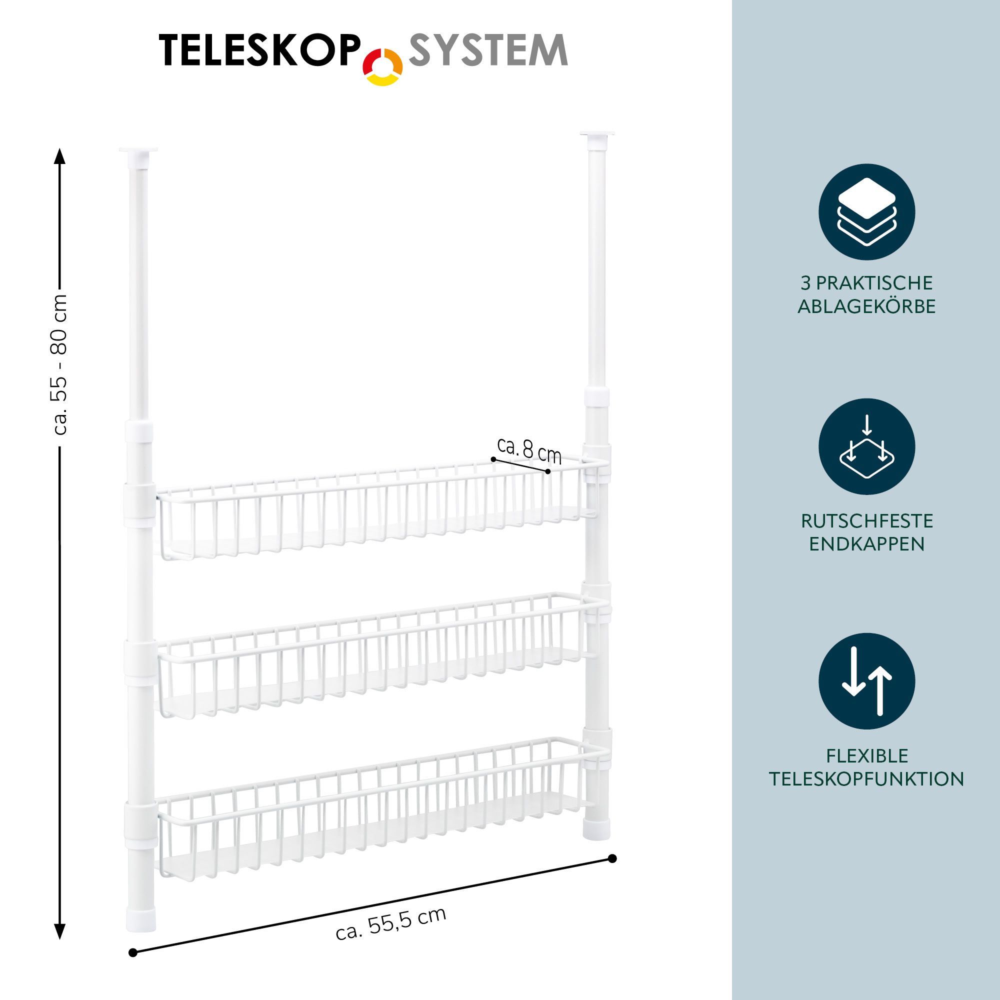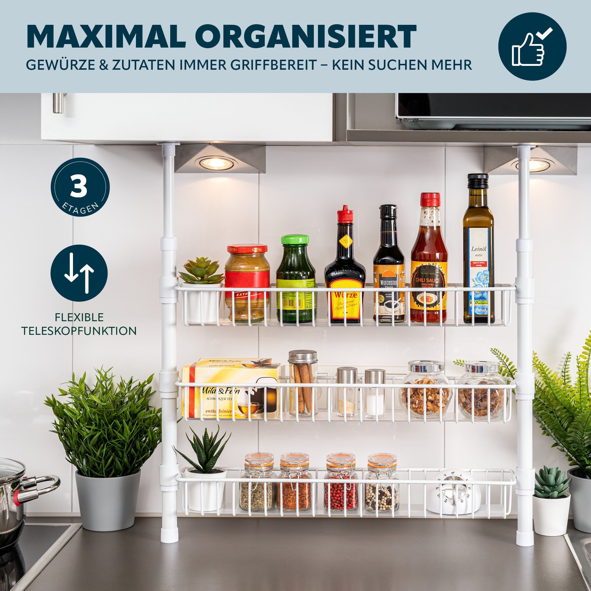bremermann Teleskop-Gewürzregal, Teleskopregal mit 3 Korbablagen