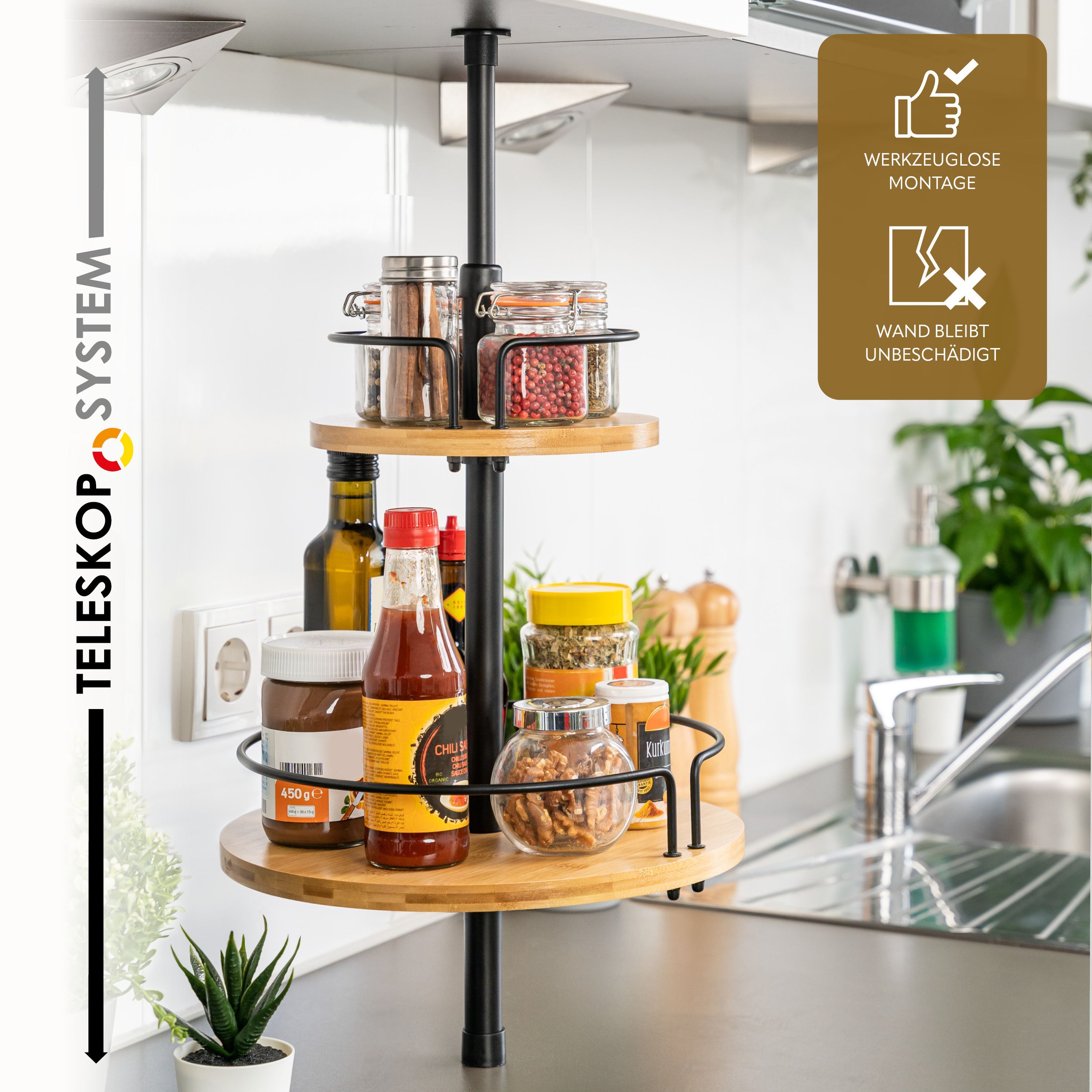 bremermann Teleskop-Regal, rund, Teleskopgewürzregal, 2 Regale drehbar schwarz