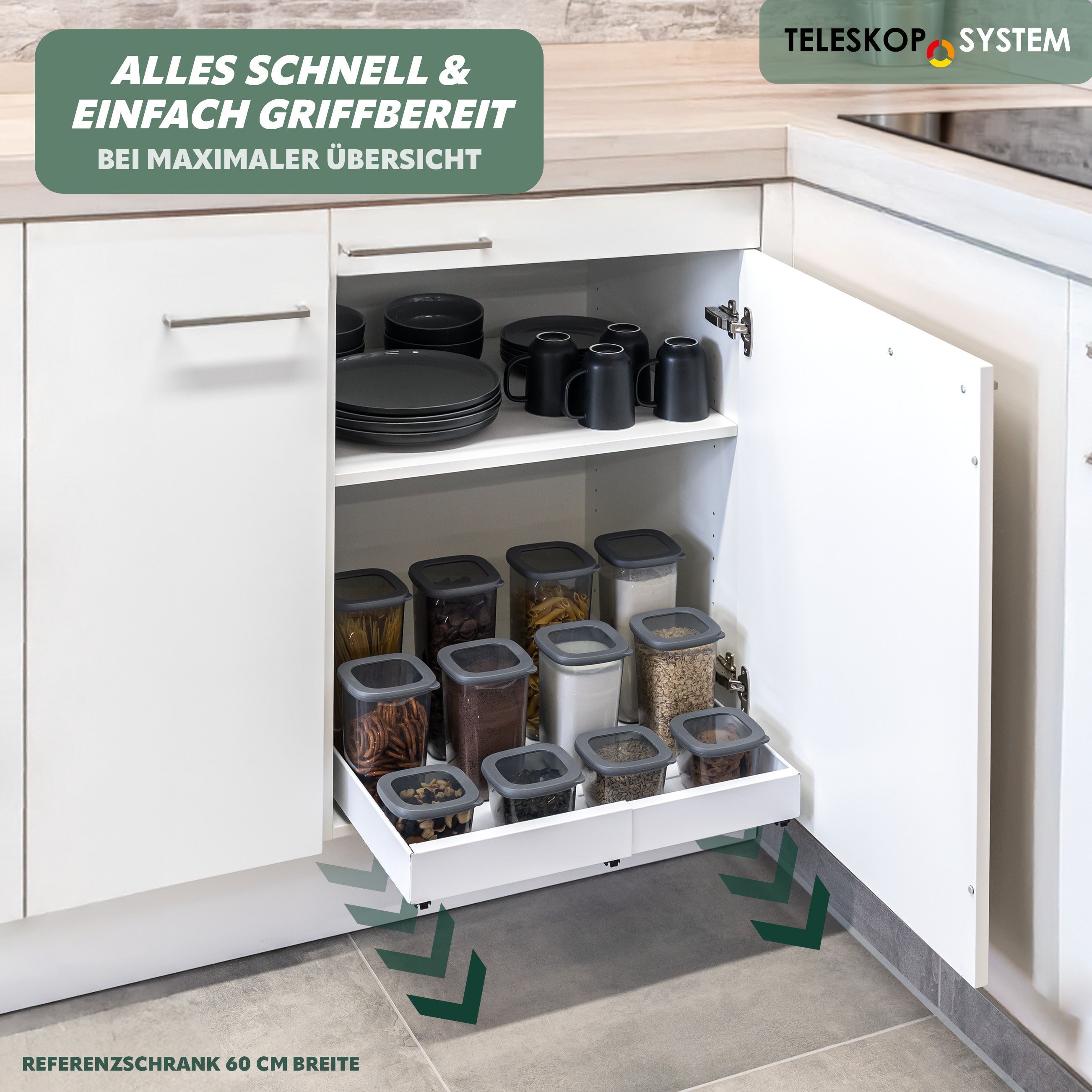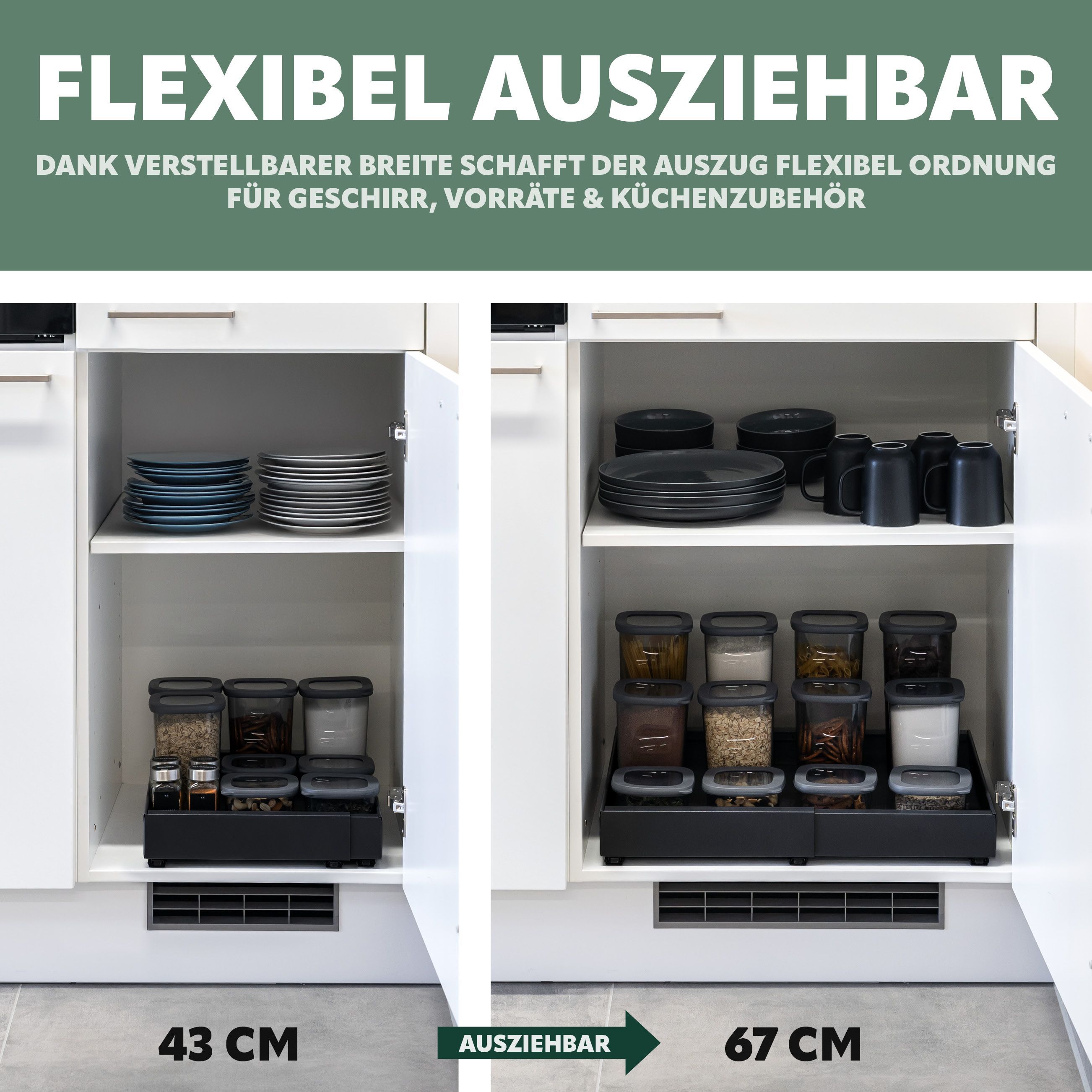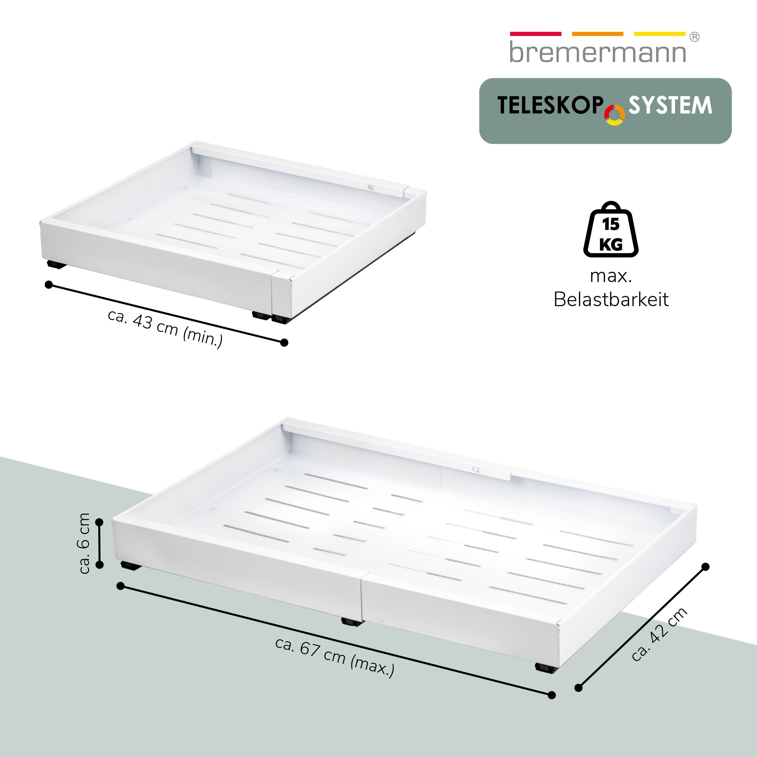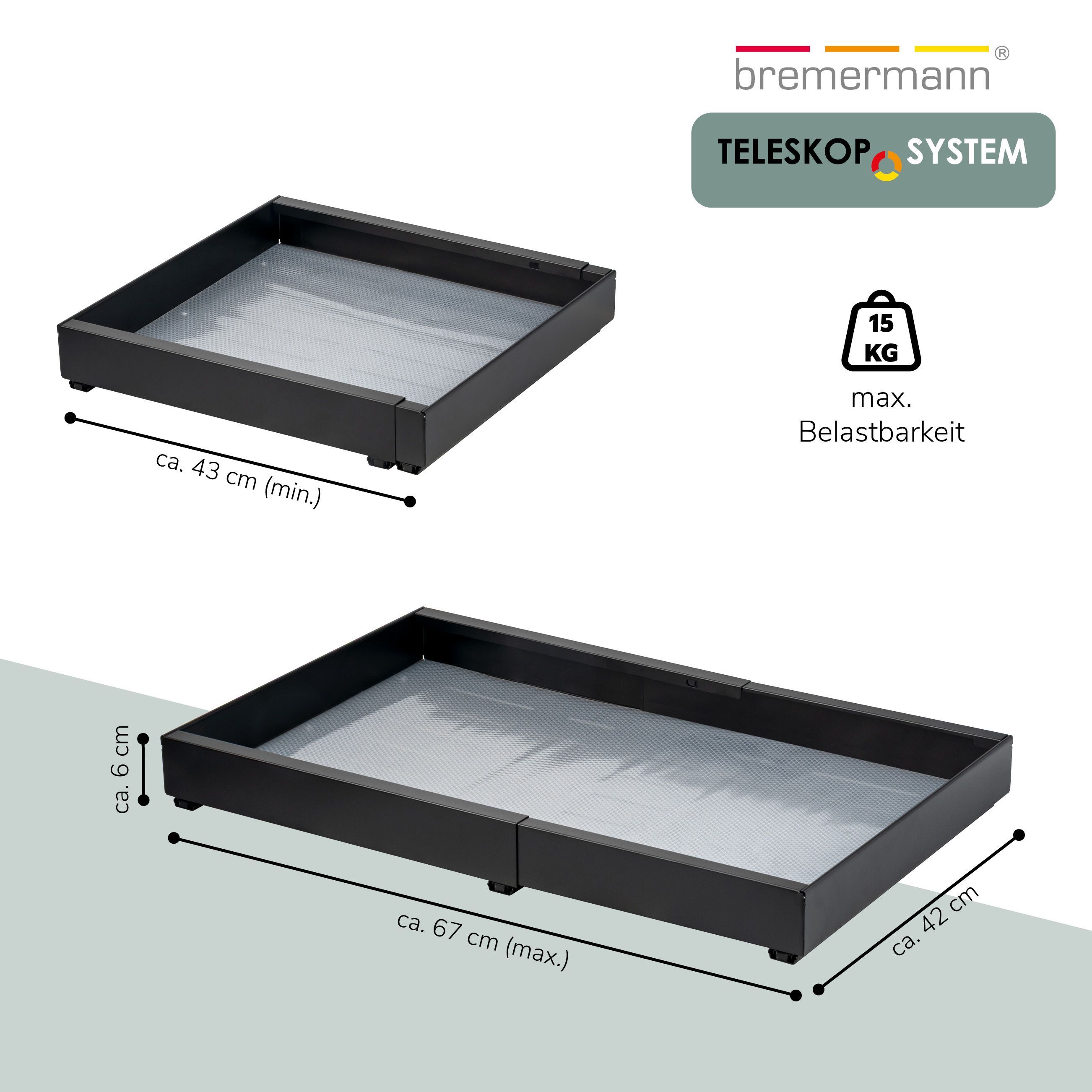 bremermann Teleskopschublade zum Kleben oder Bohren, Breite von 43-67 cm