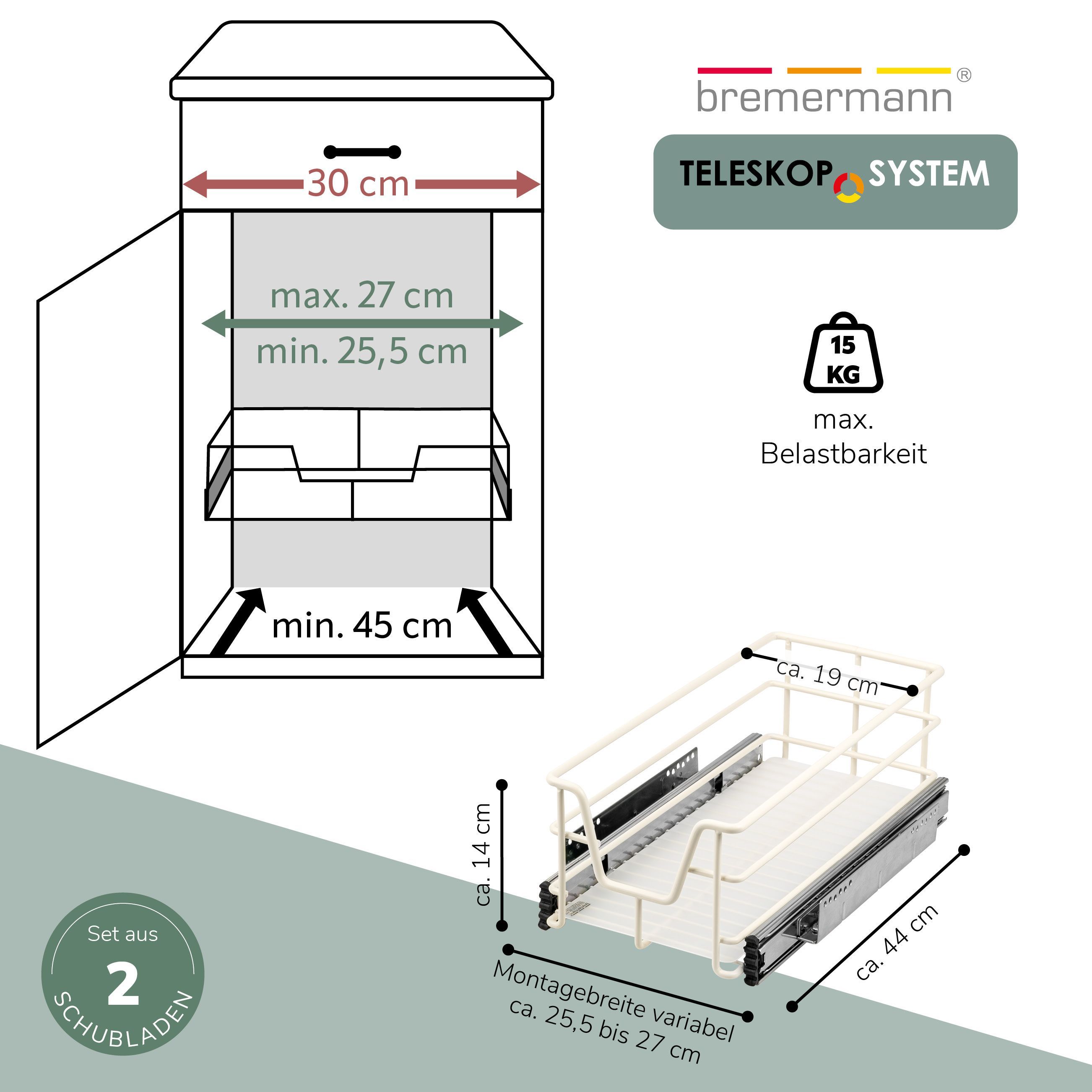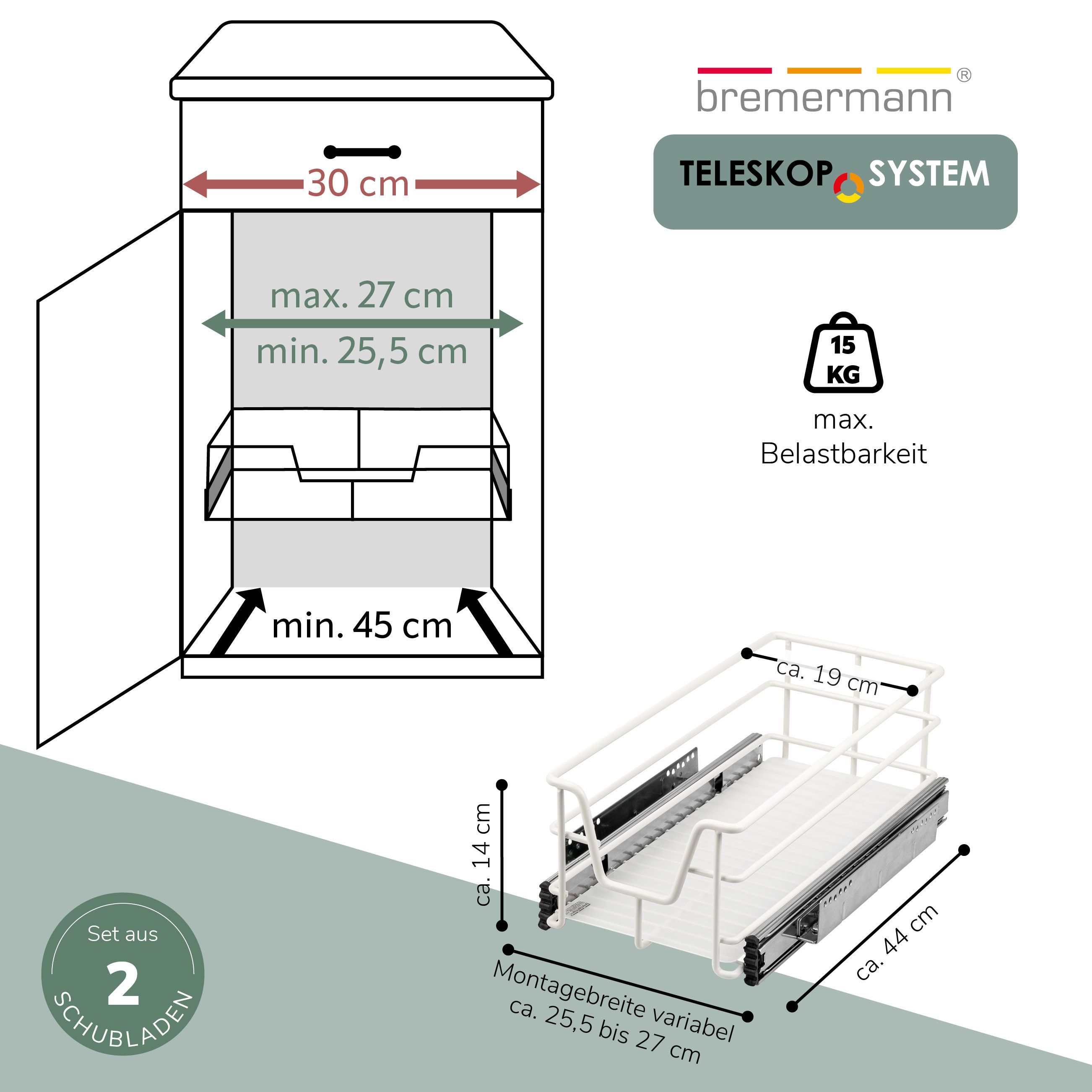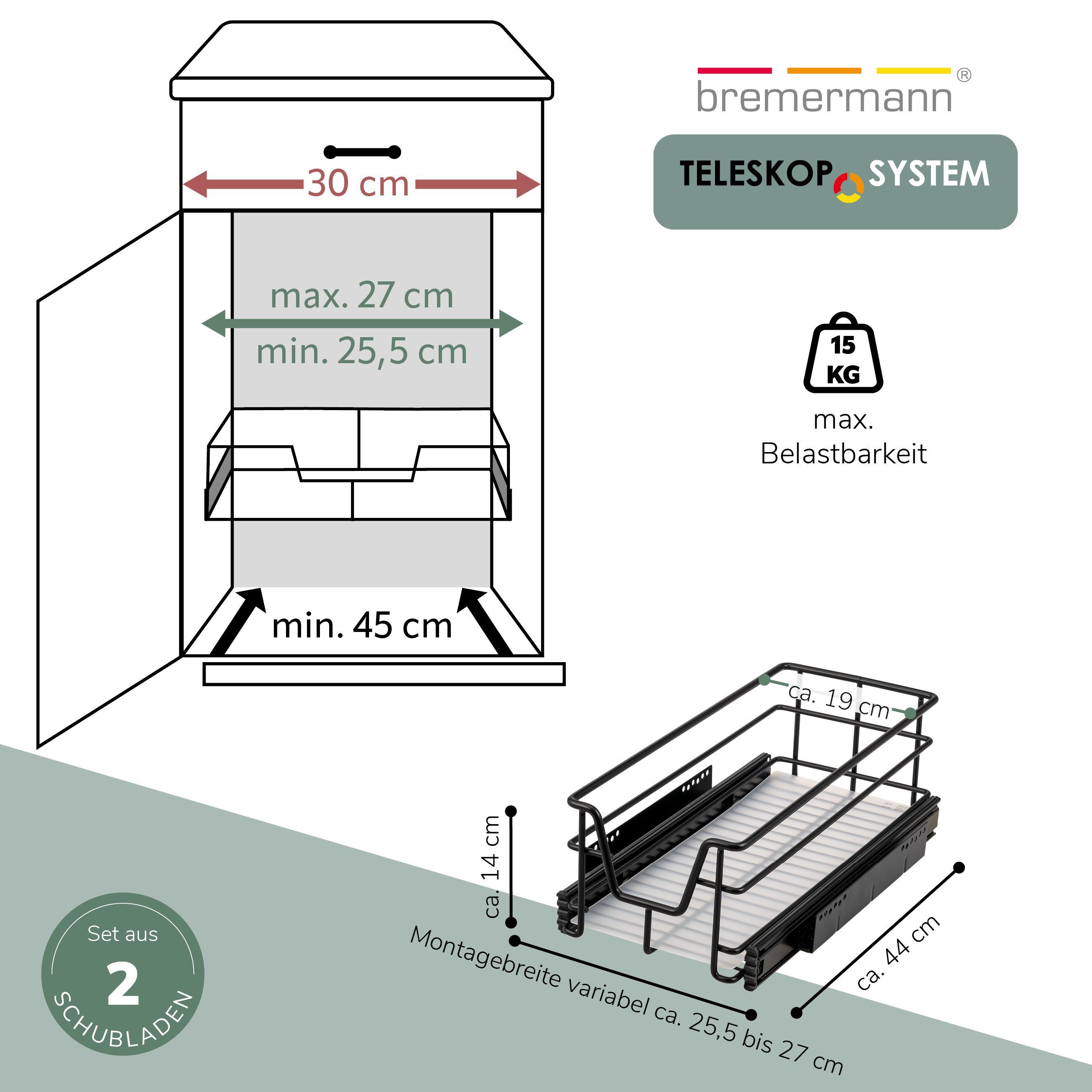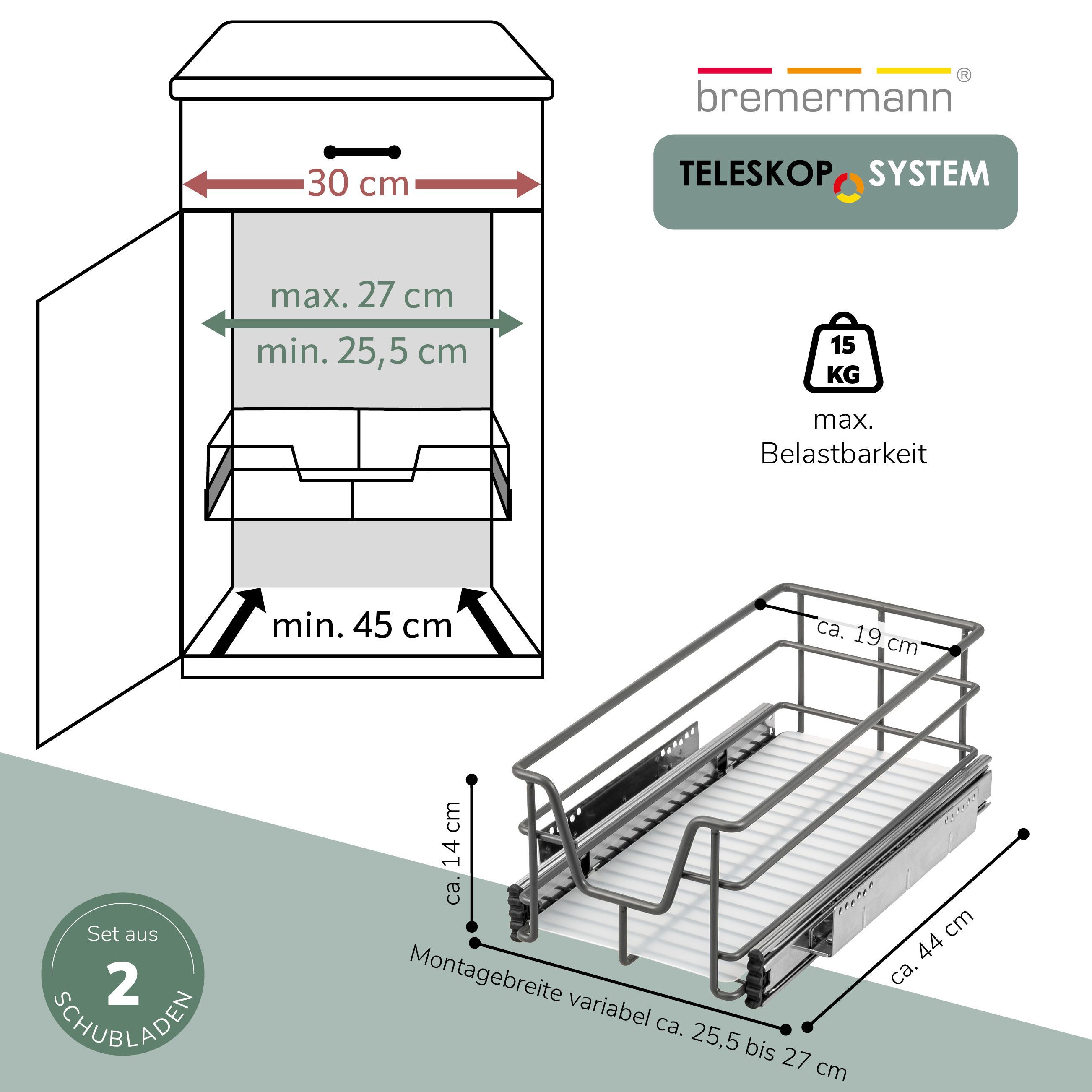 bremermann Teleskopschubladen 2er Set - für 40 cm Schrank, aus Metall