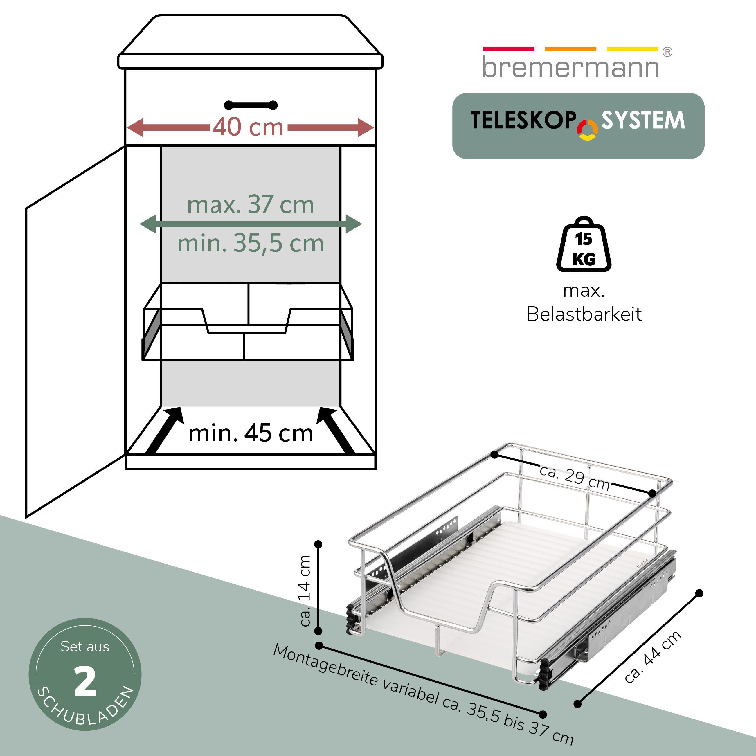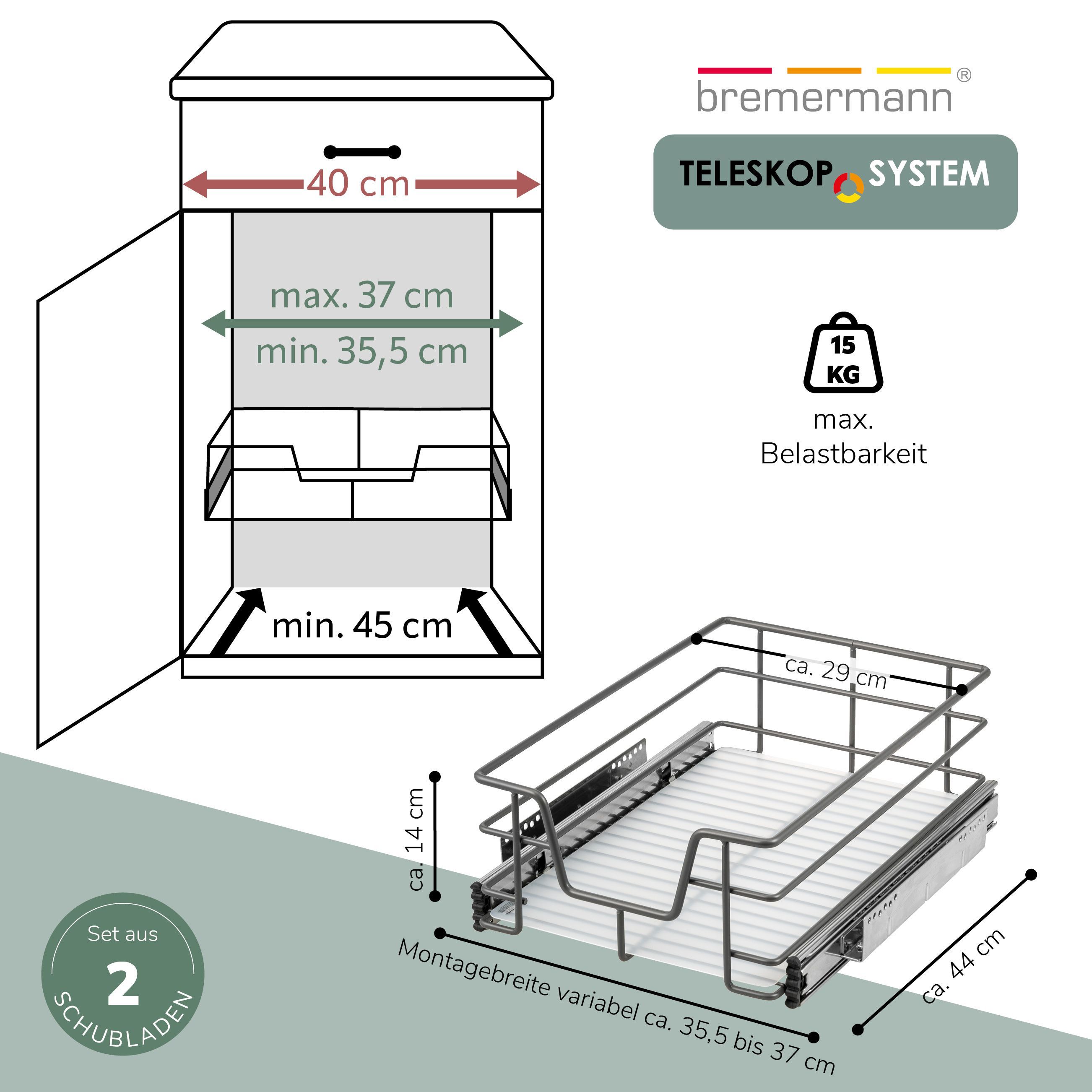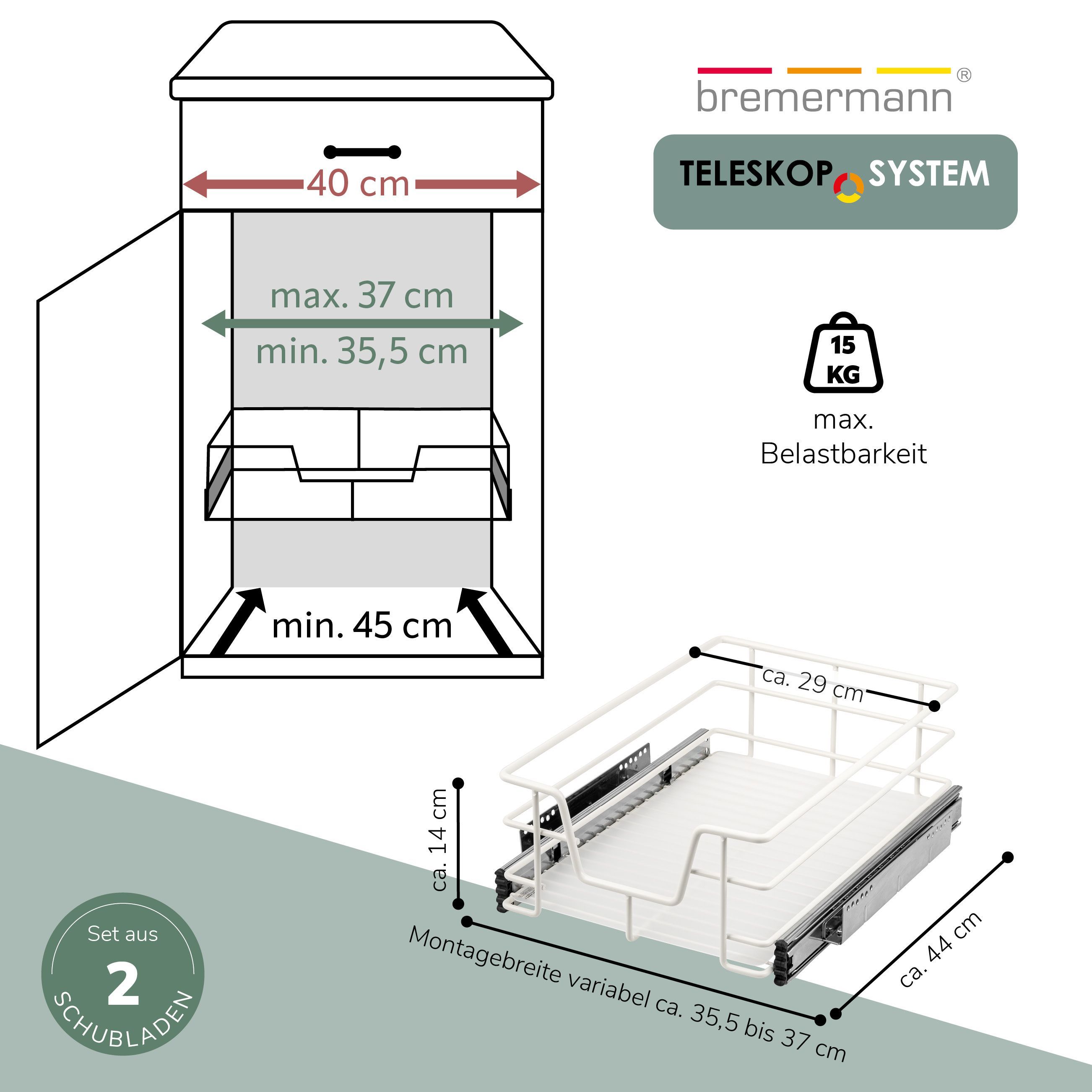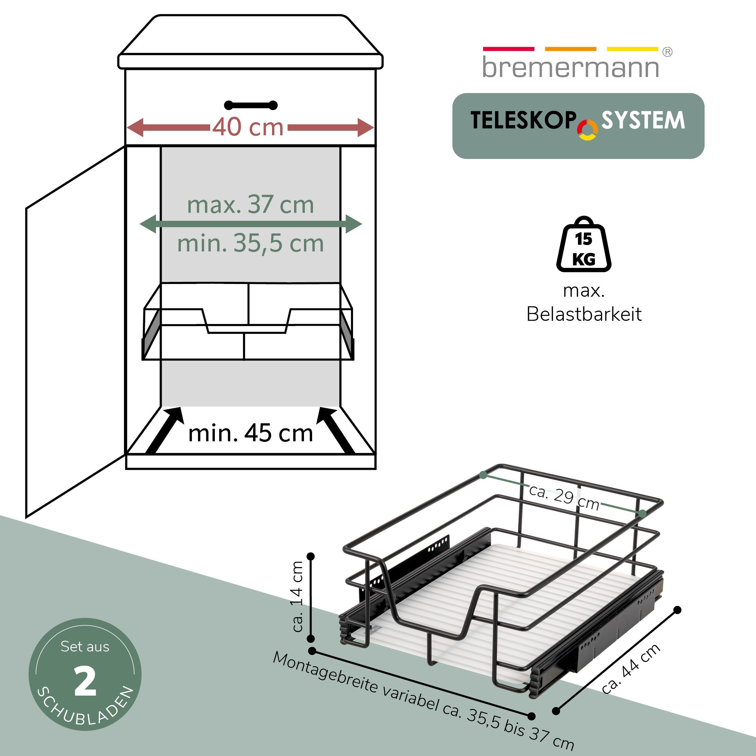 bremermann Teleskopschubladen 2er Set - für 40 cm Schrank, aus Metall