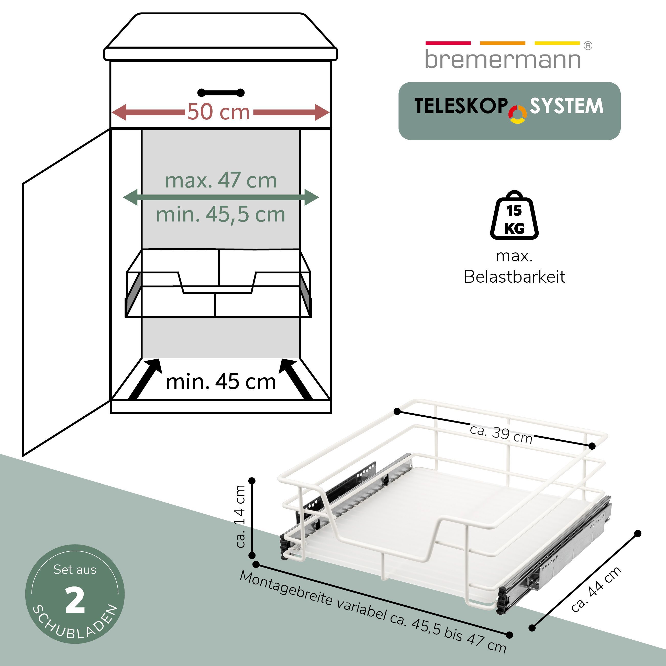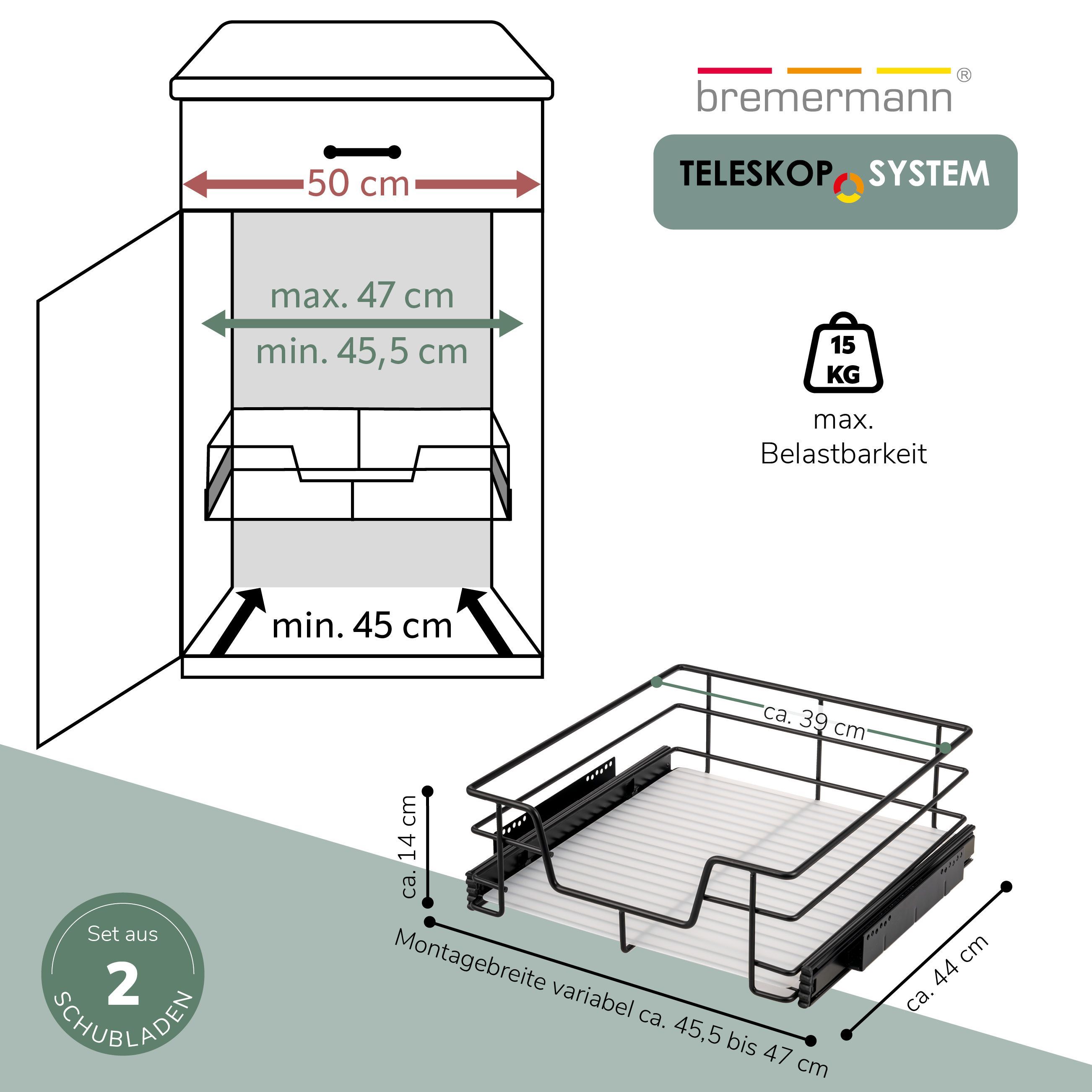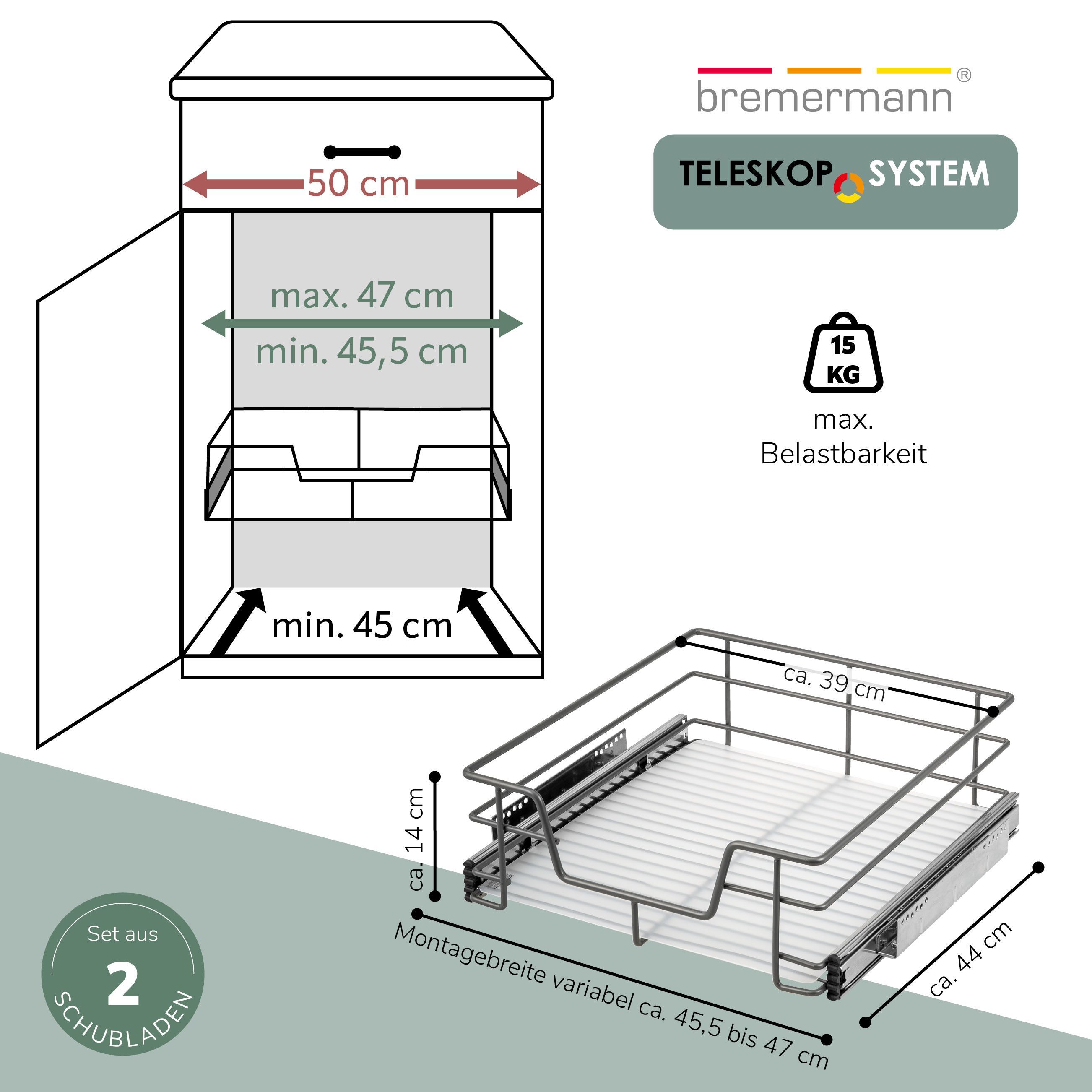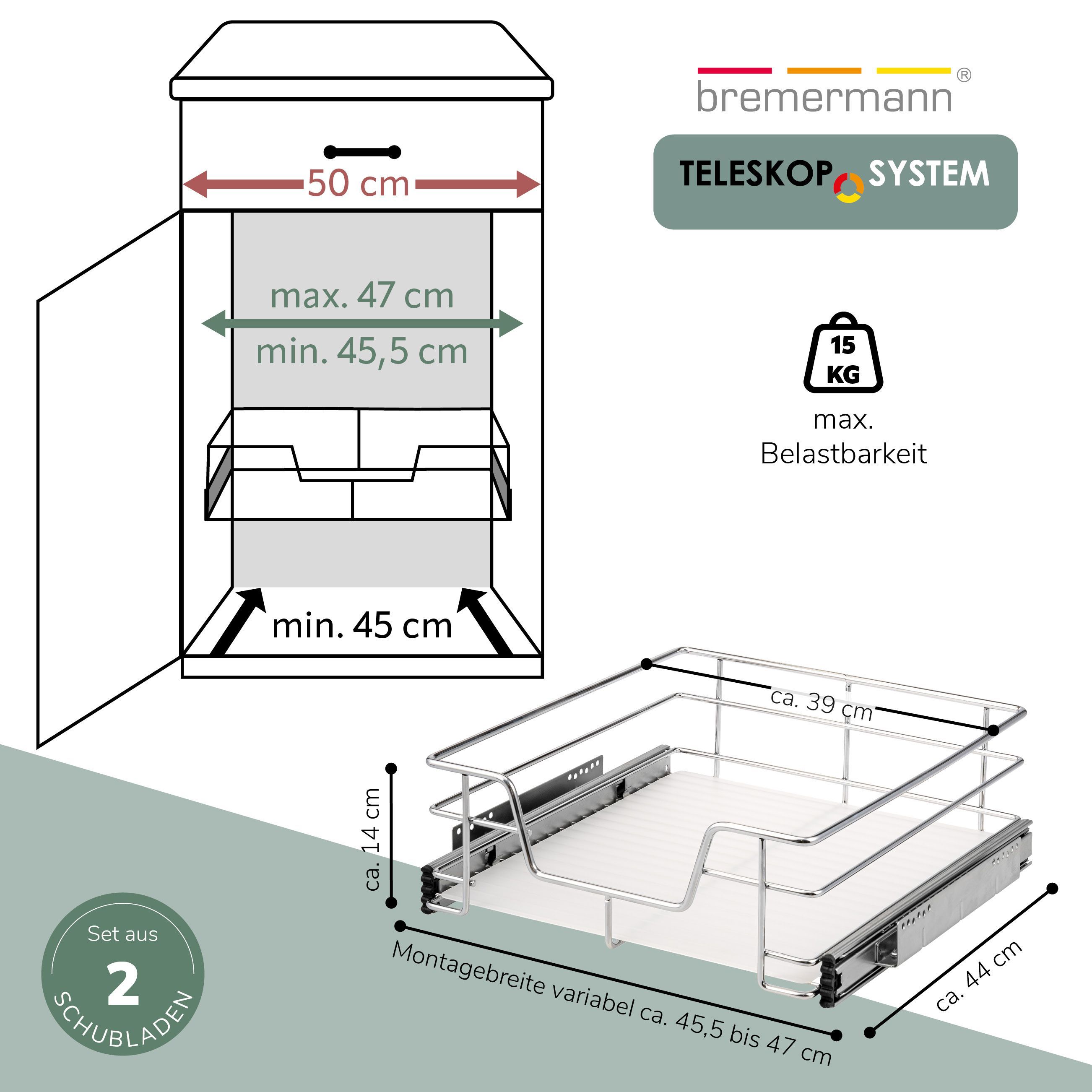 bremermann Teleskopschubladen 2er Set - für 50 cm Schrank, aus Metall