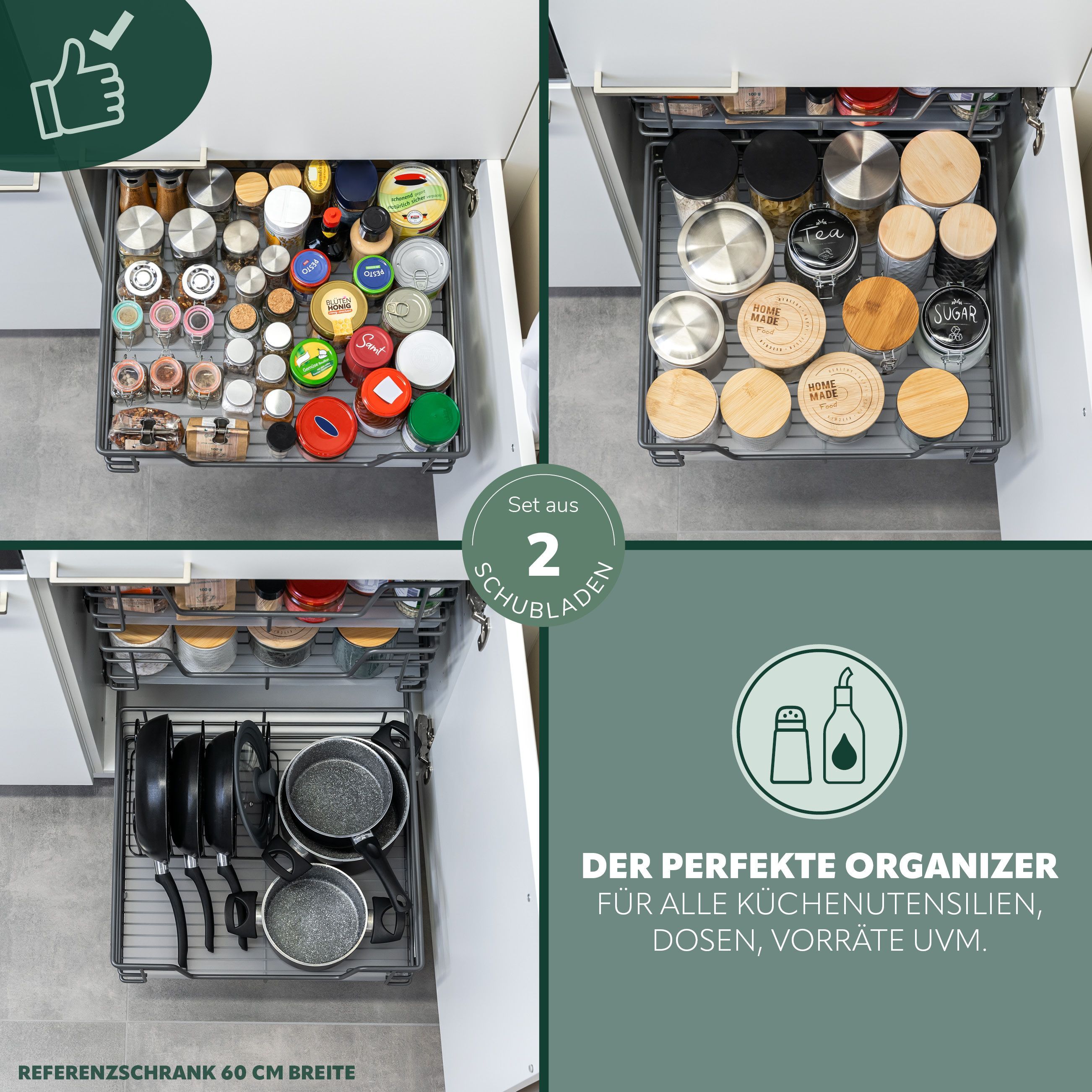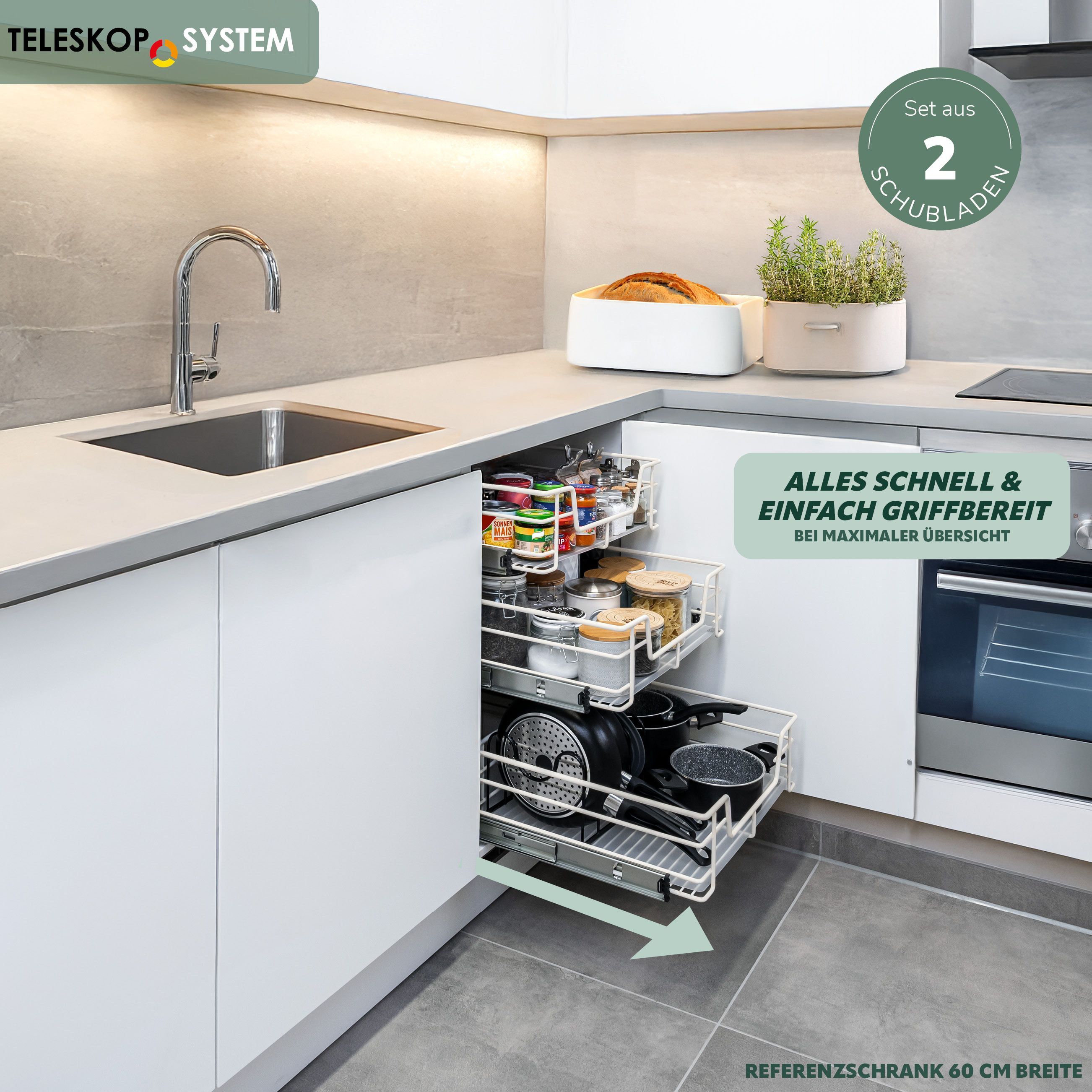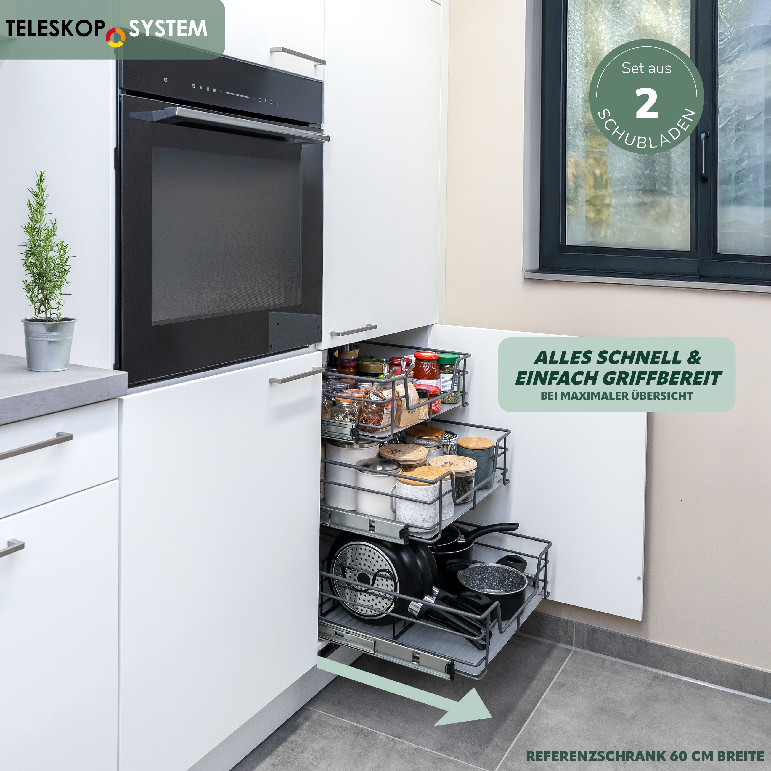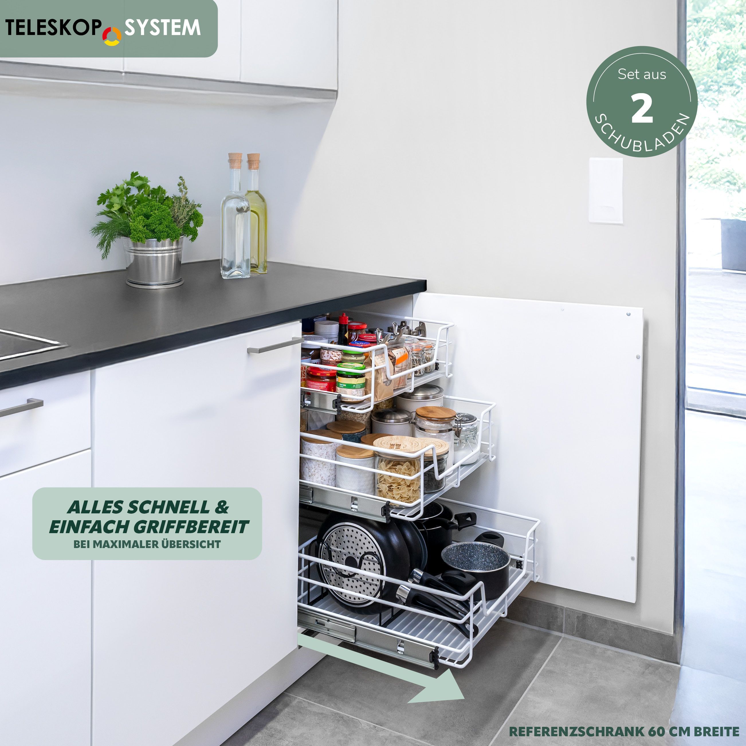 bremermann Teleskopschubladen 2er Set - für 50 cm Schrank, aus Metall