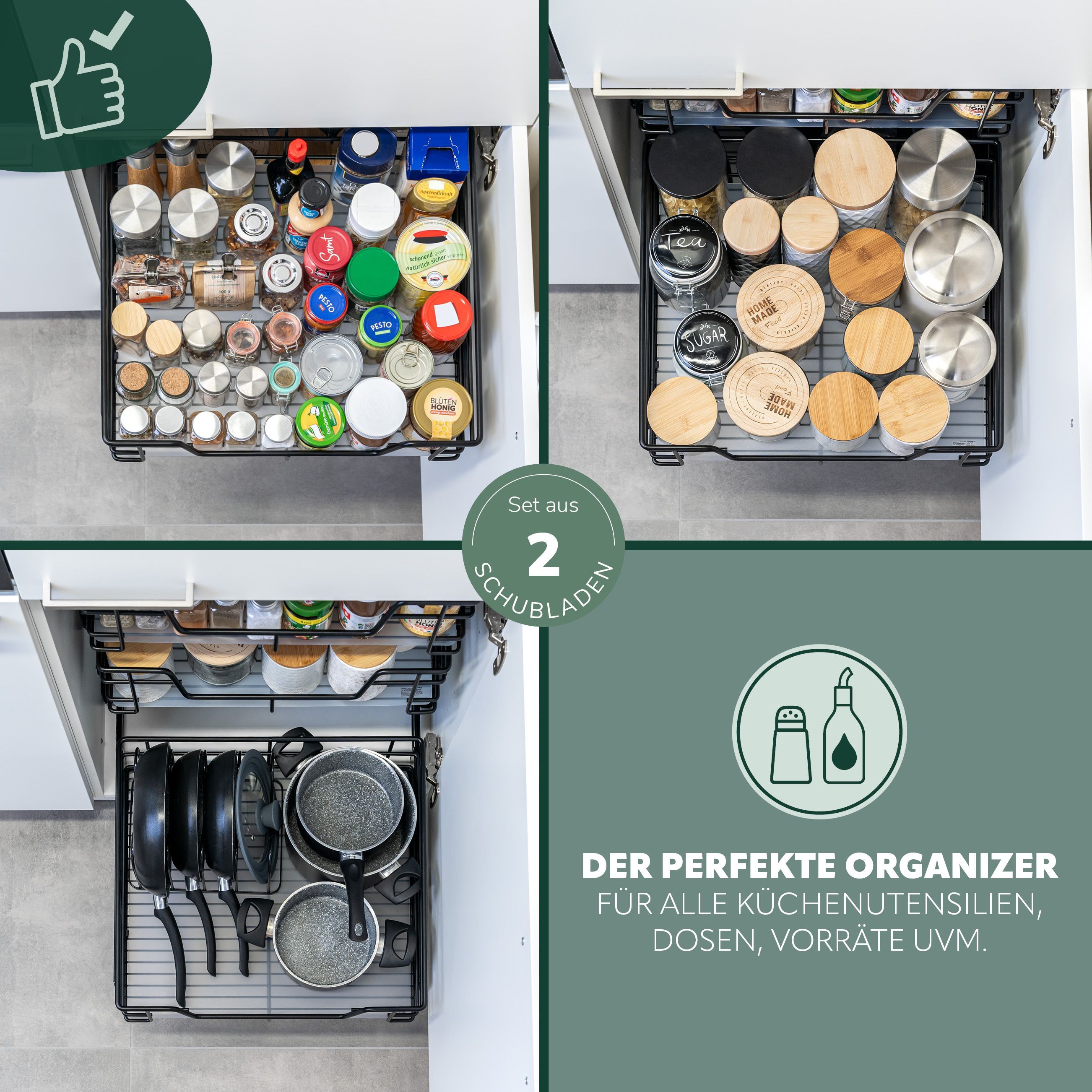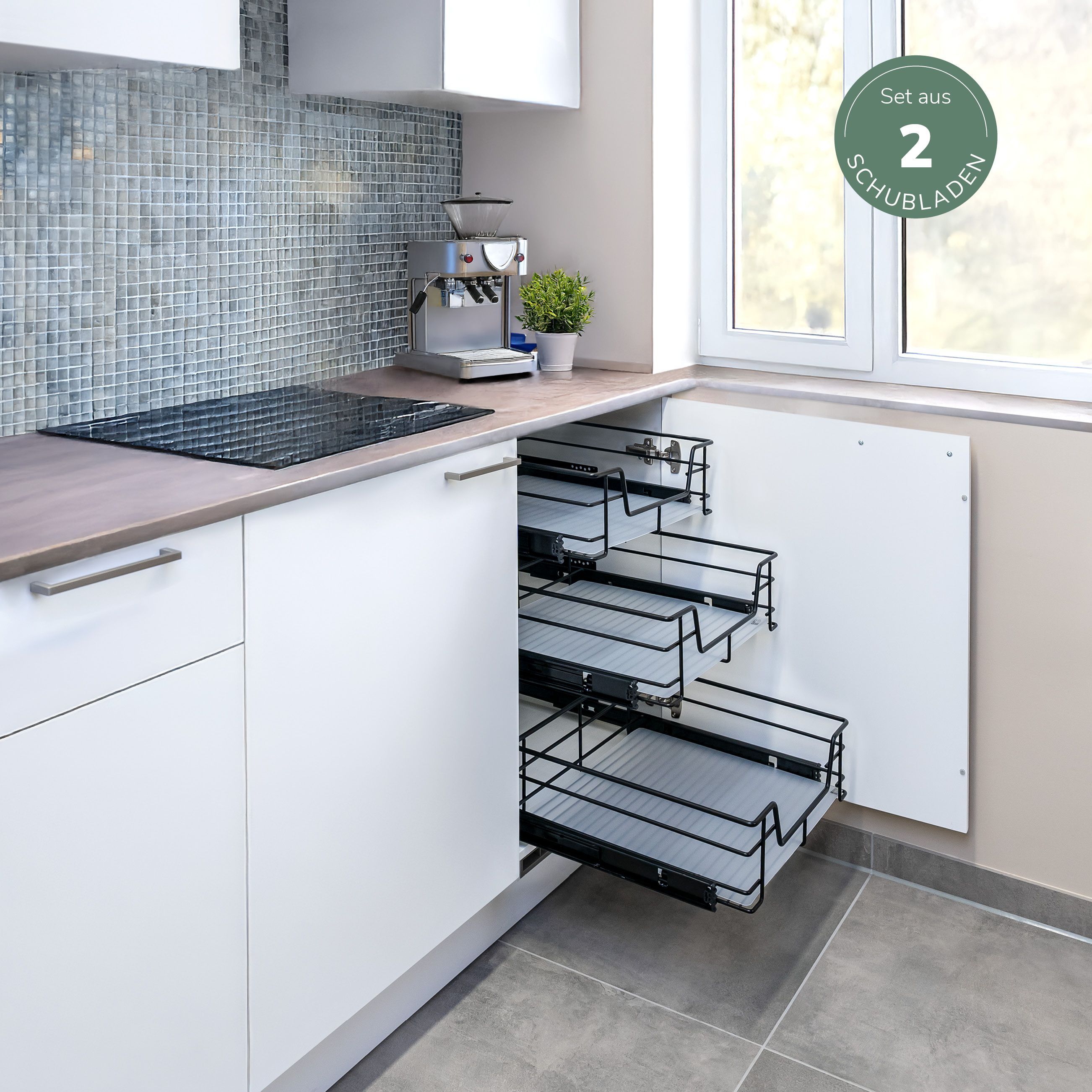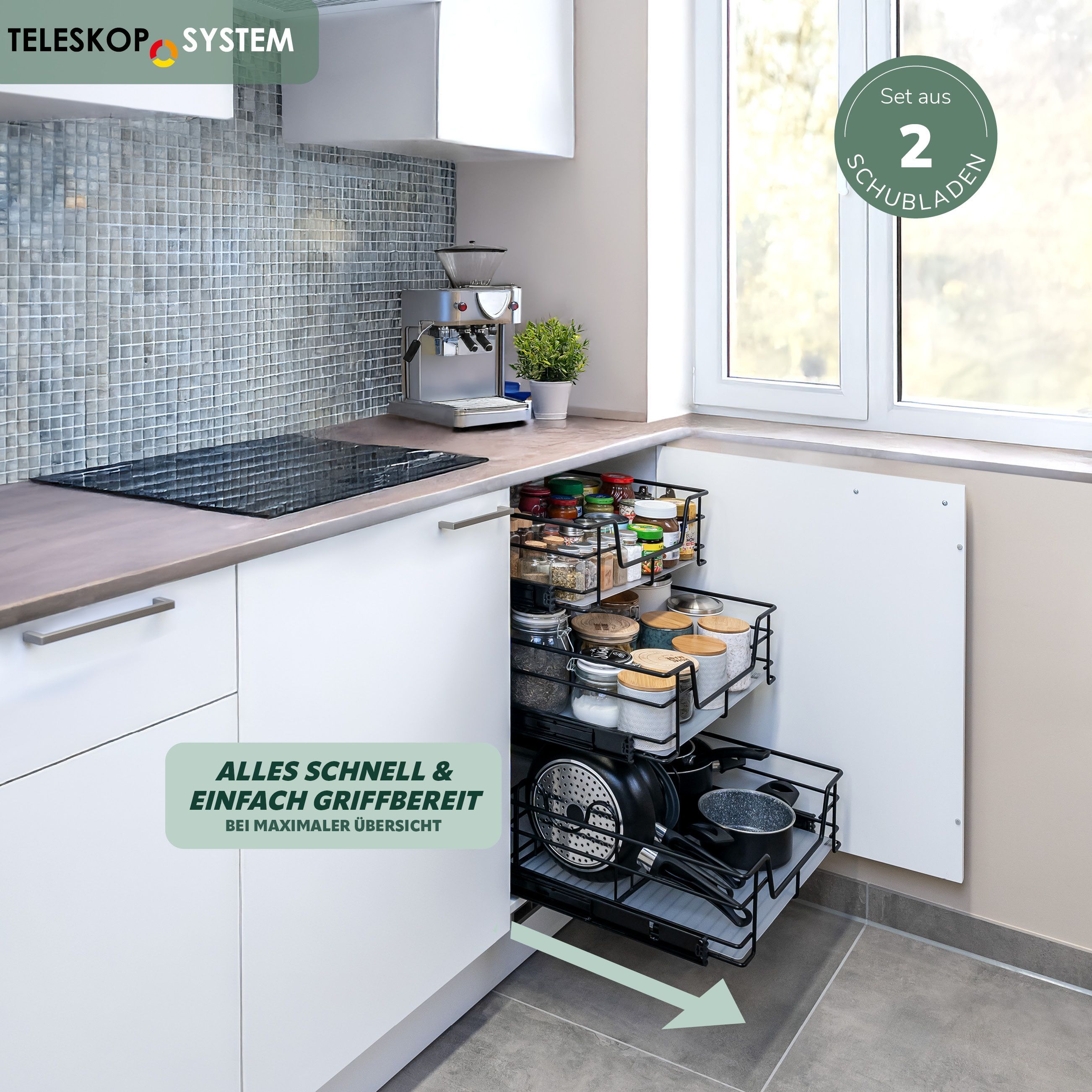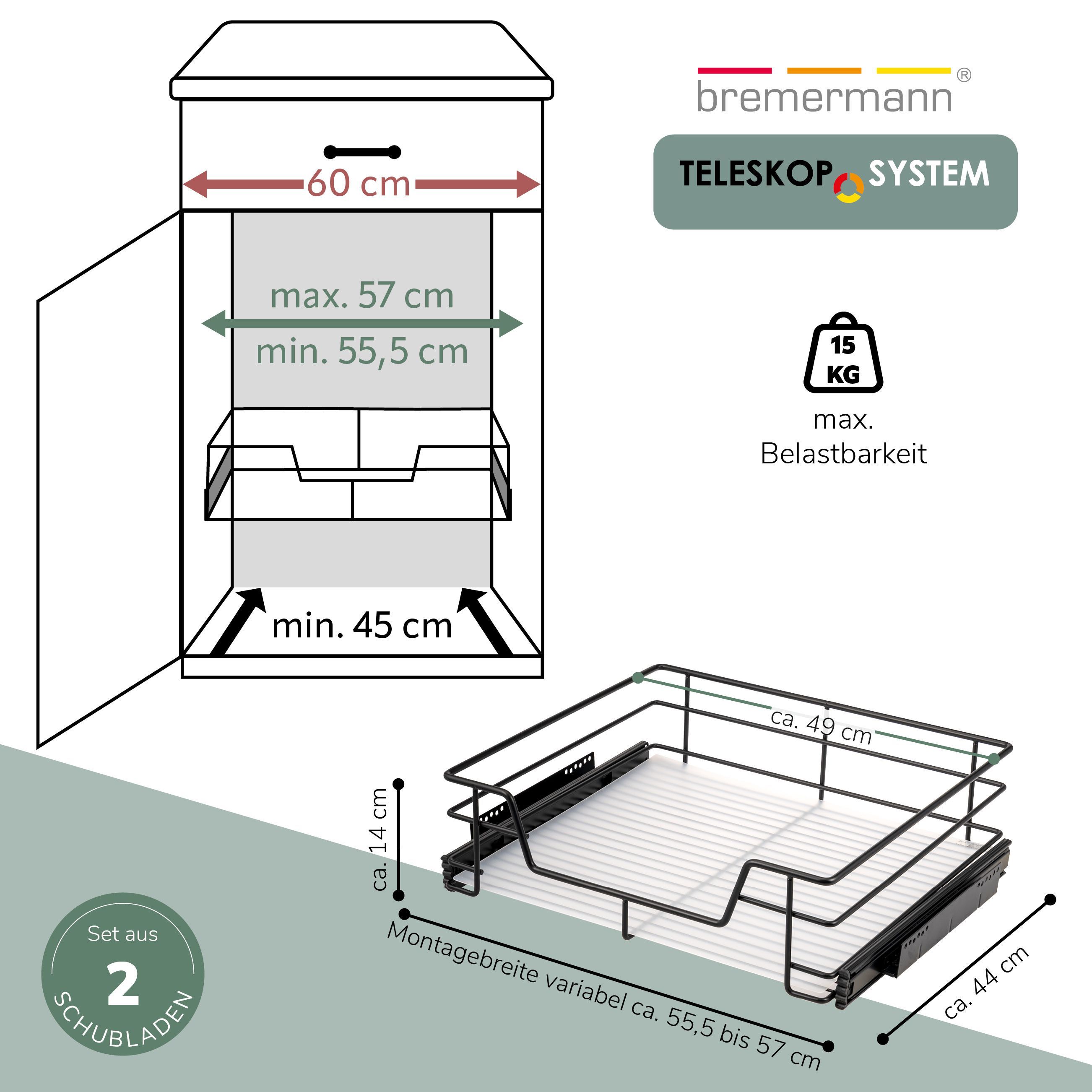 bremermann Teleskopschubladen 2er Set - für 60 cm Schrank, aus Metall (Schwarz)