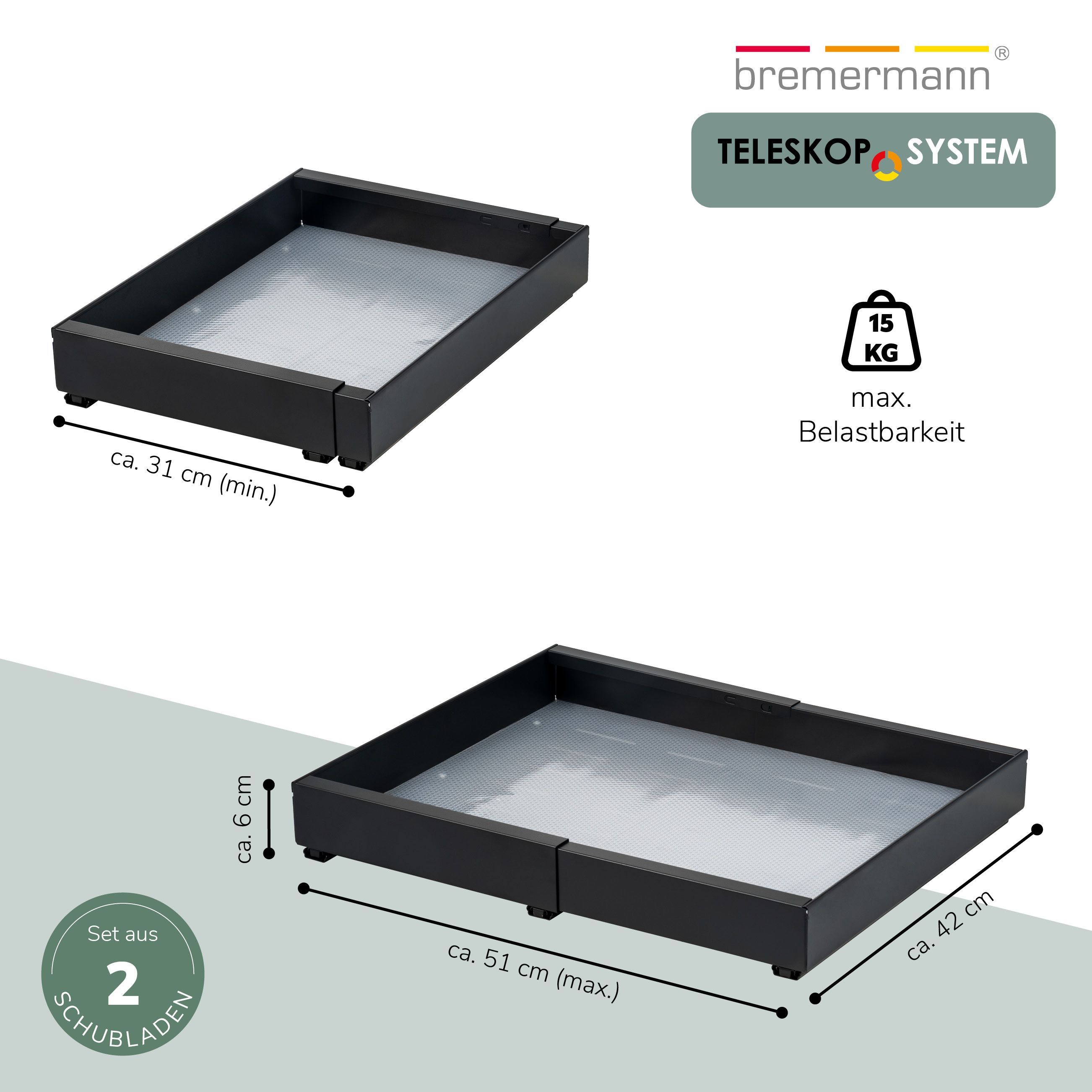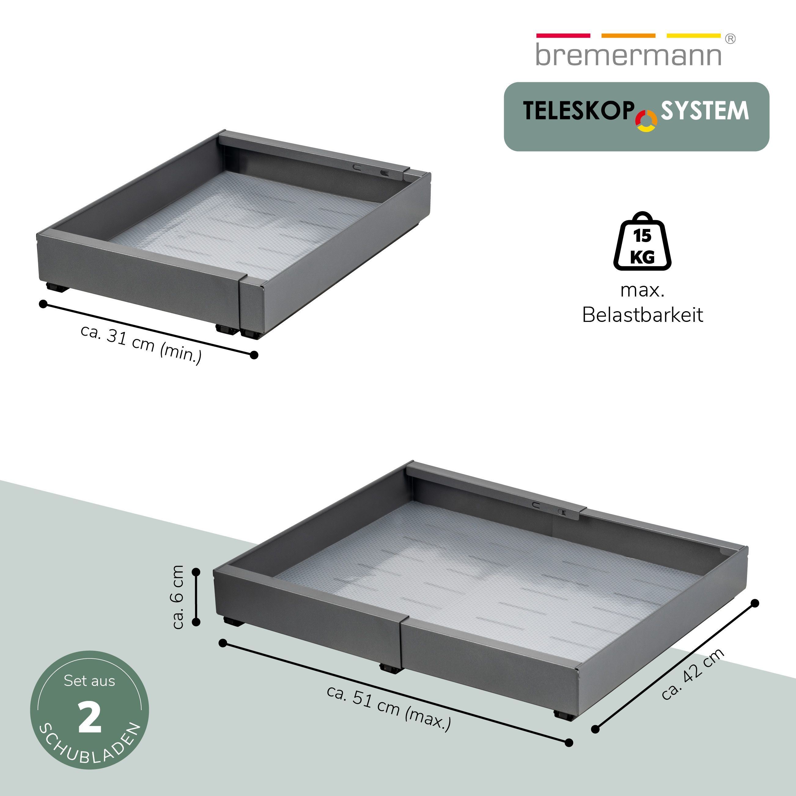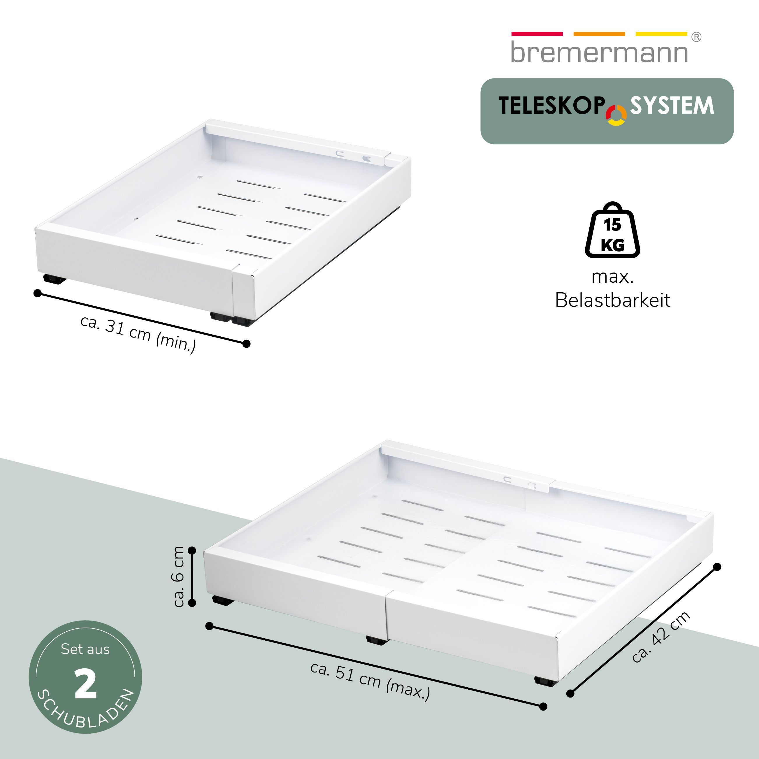 bremermann Teleskopschubladen 2er Set - zum Kleben oder Bohren, 31-51 cm