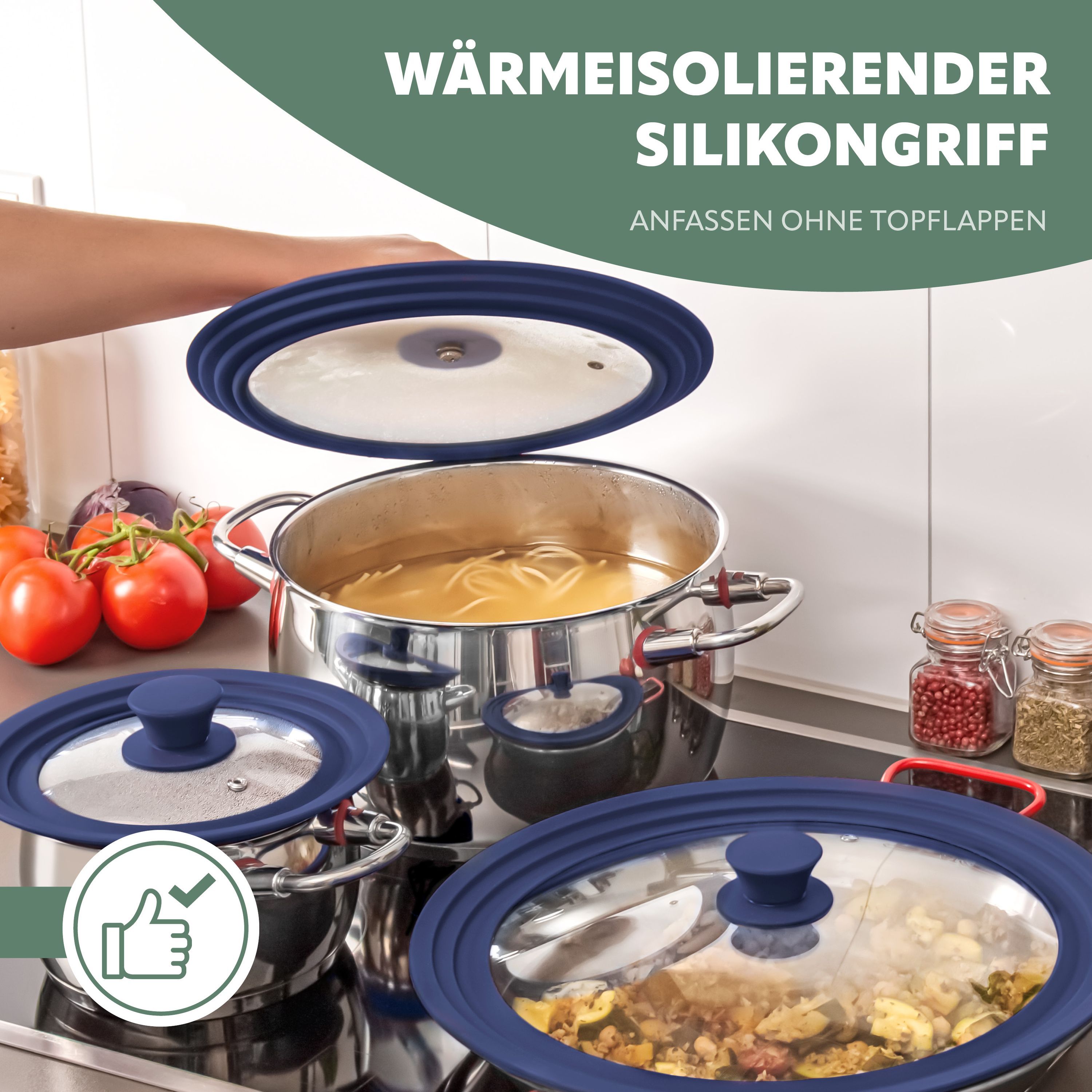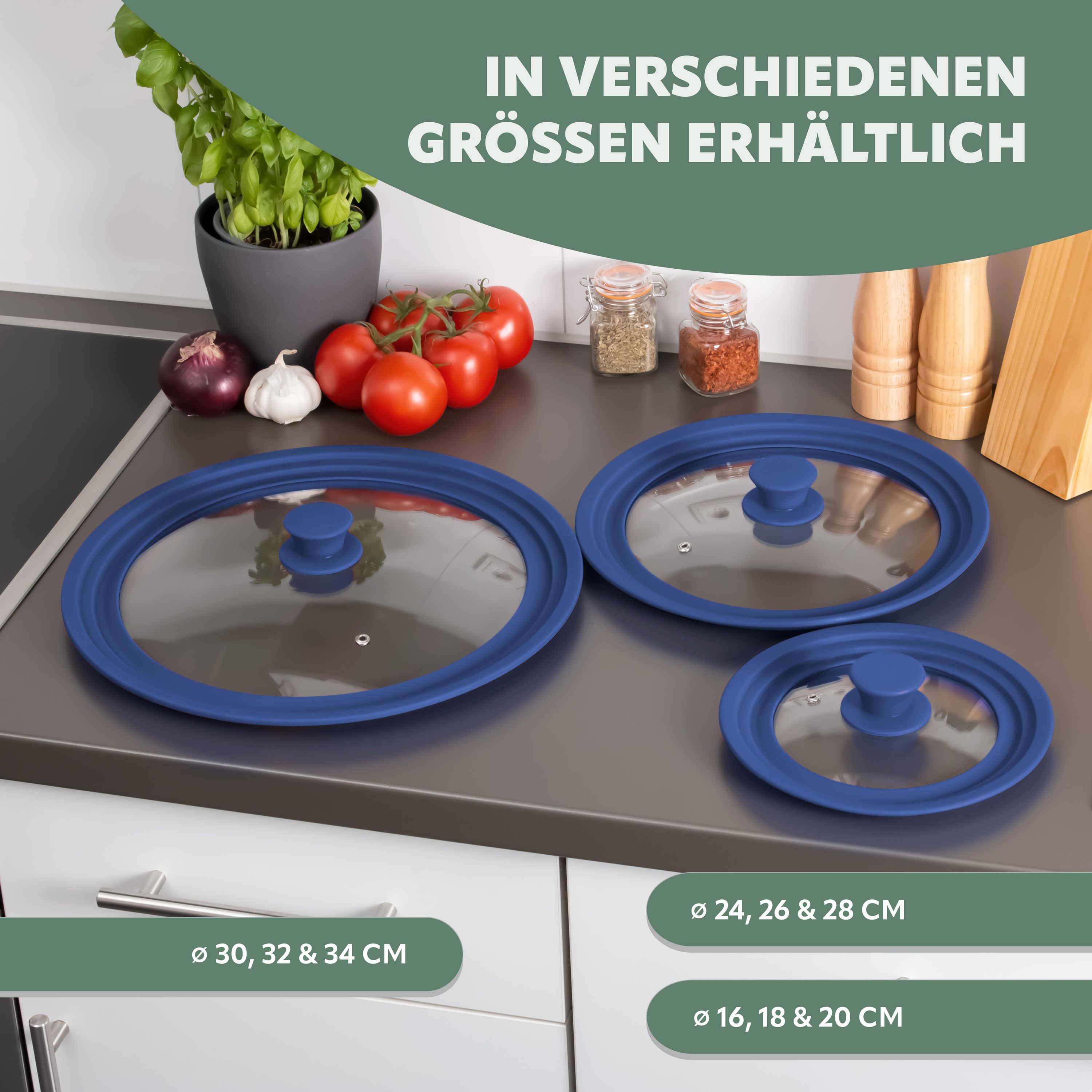 bremermann Universal-Glasdeckel mit Silikonrand, 30/32/34 cm, blau groß