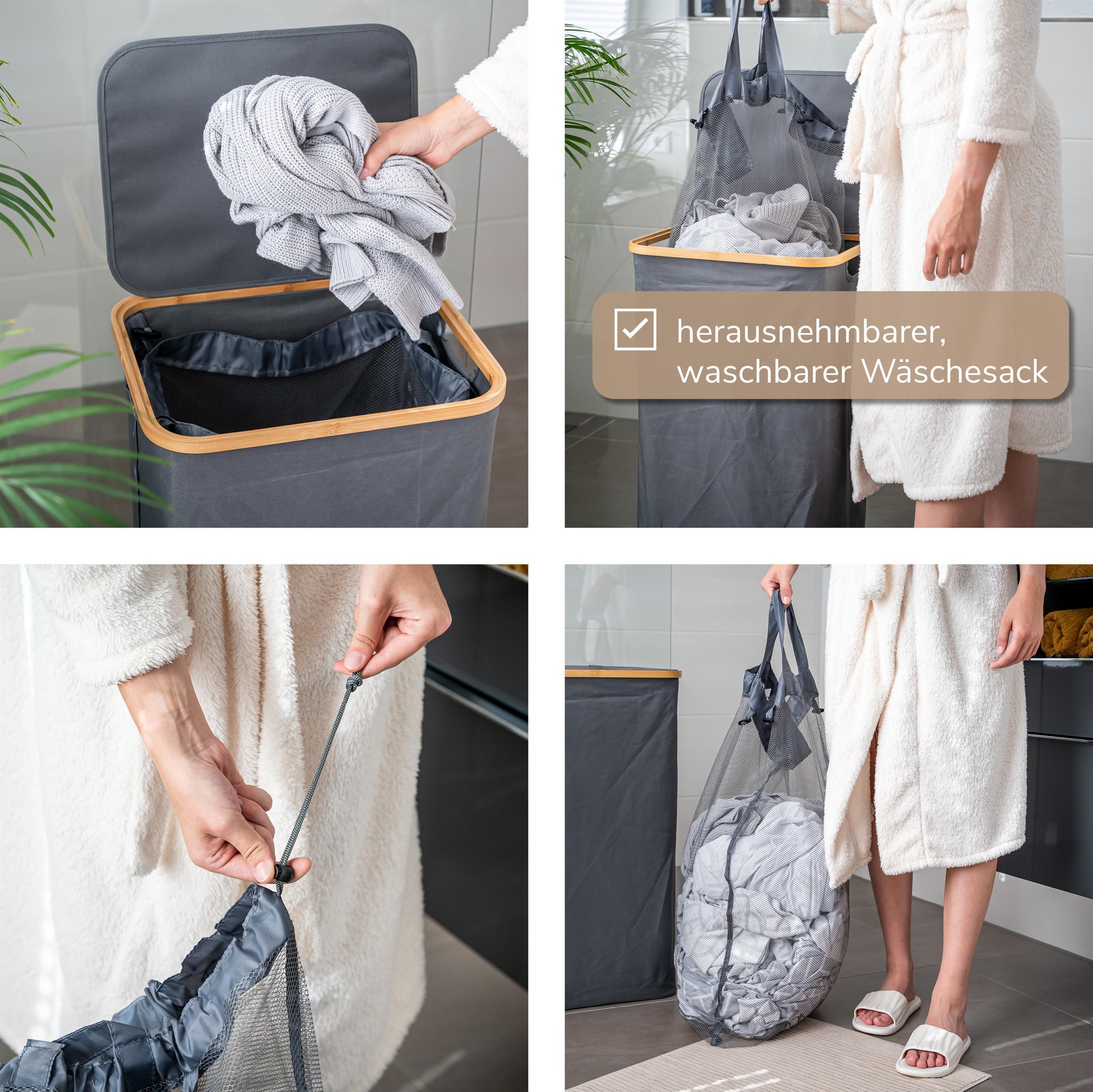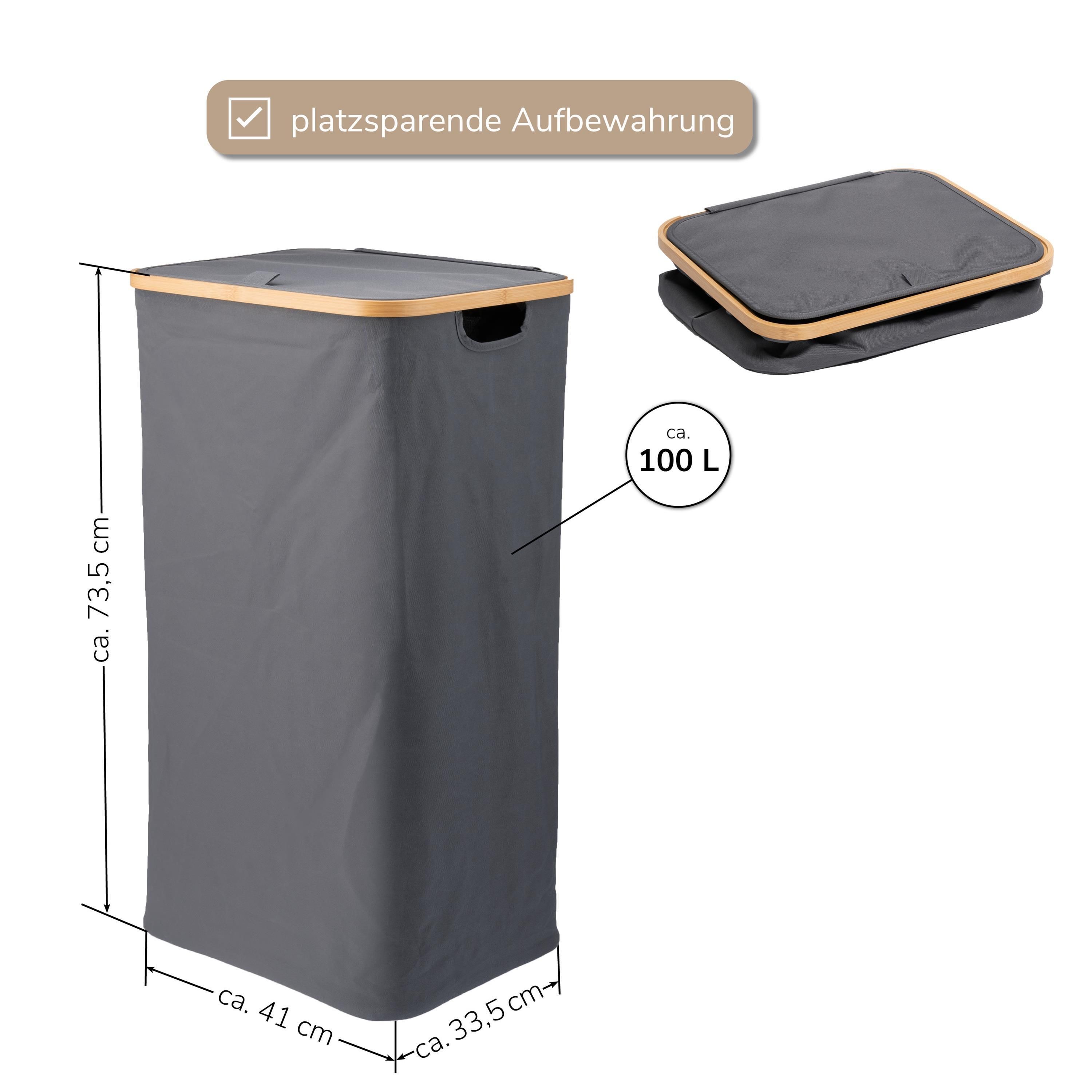 bremermann Wäschesammler mit herausnehmbarem Sack & Deckel, ca. 100 Liter, grau