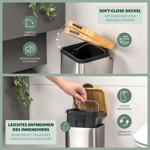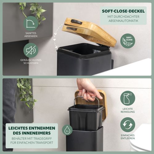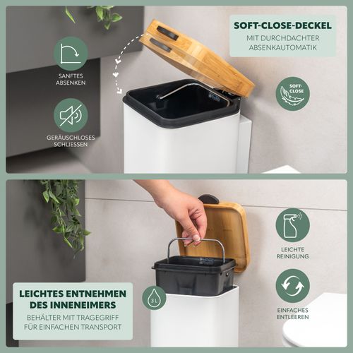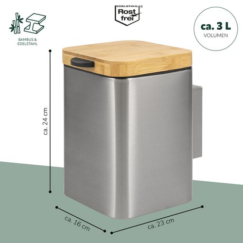 bremermann Wand-Kosmetikeimer 3 l, Badmülleimer 2-Wege-Montage, eckig