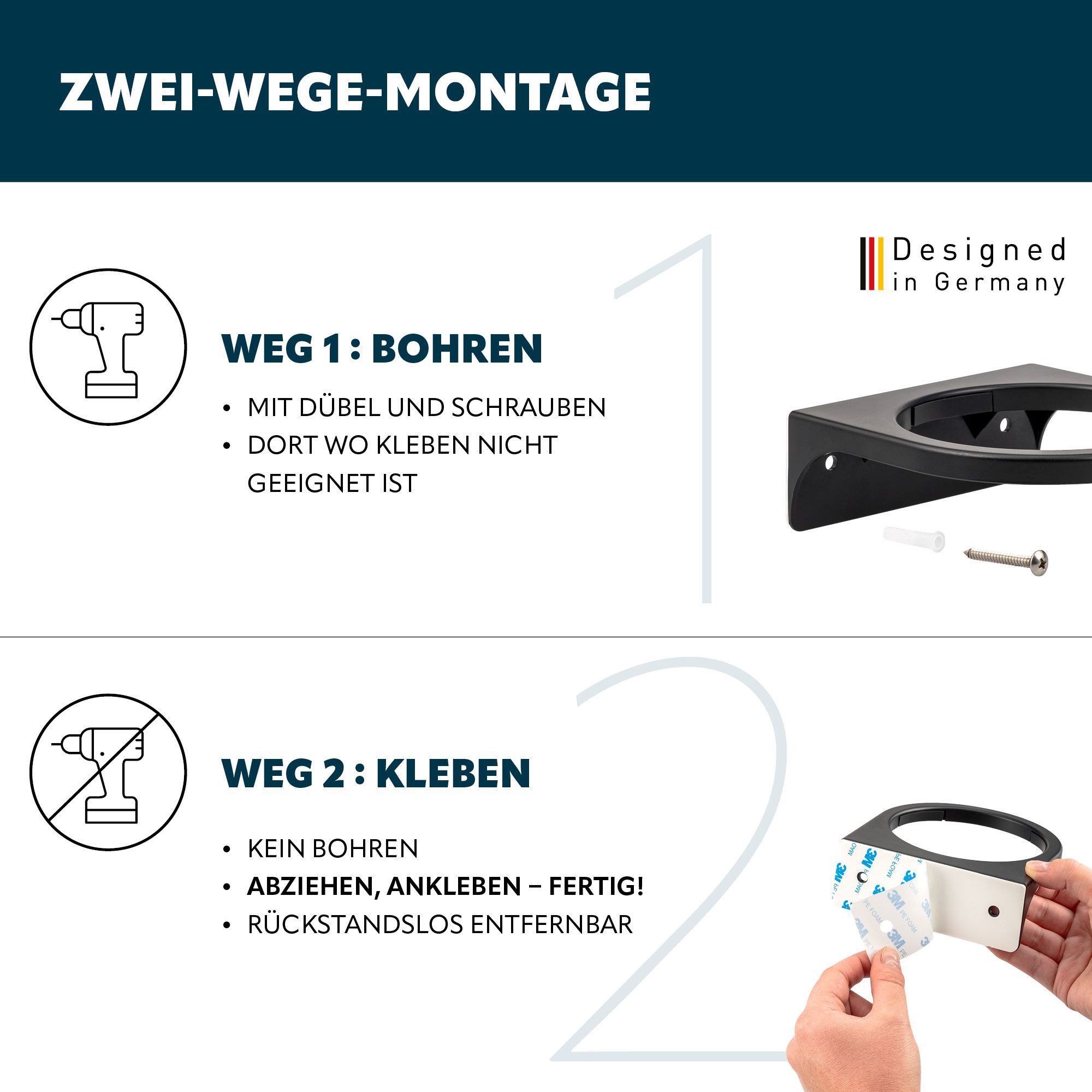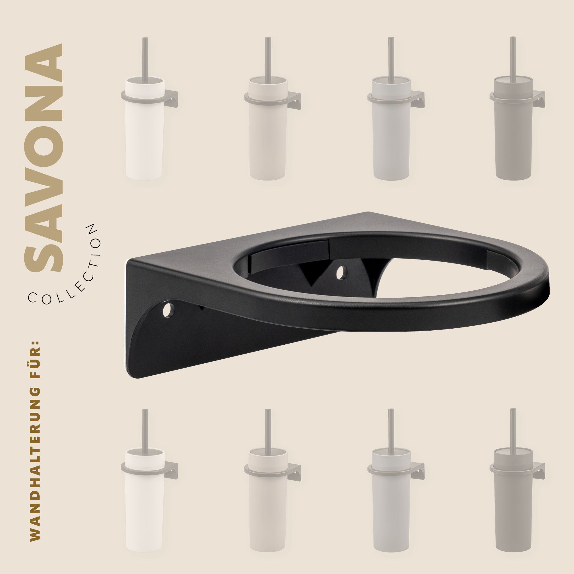 bremermann Wandhalterung für SAVONA-WC-Bürsten, Aufhängung rund, schwarz