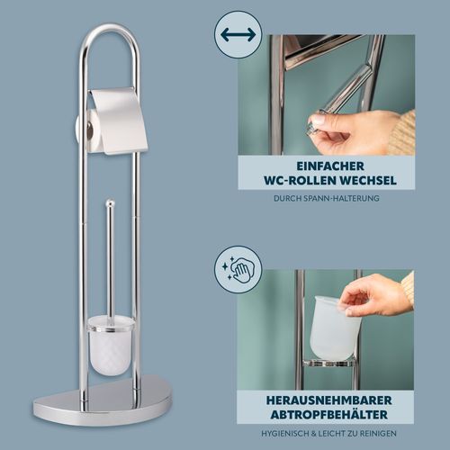 bremermann WC-Garnitur mit Rollen- und Bürstenhalter, schwerer Fuß, freistehend