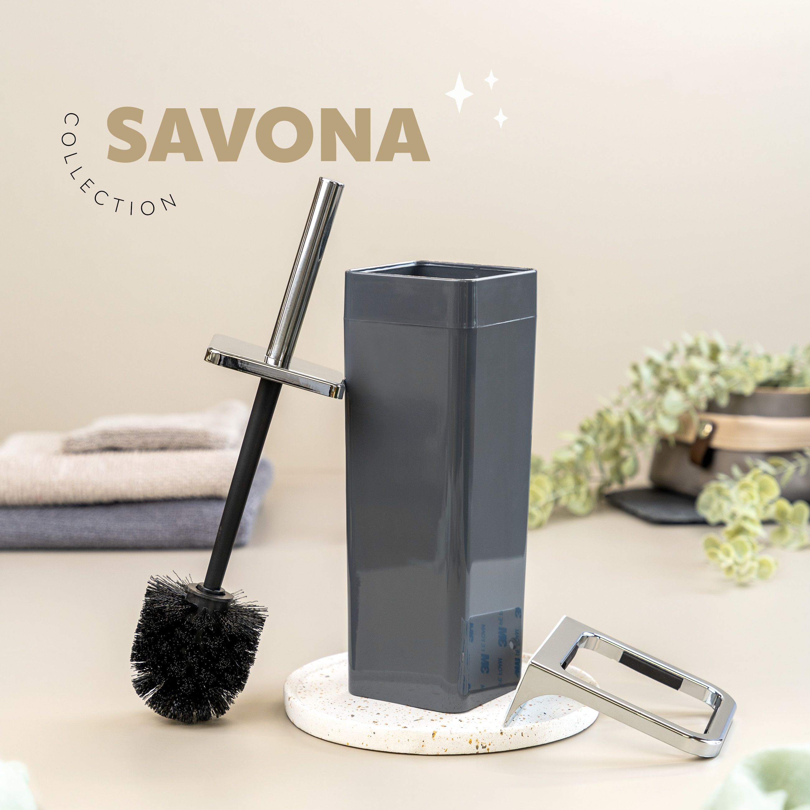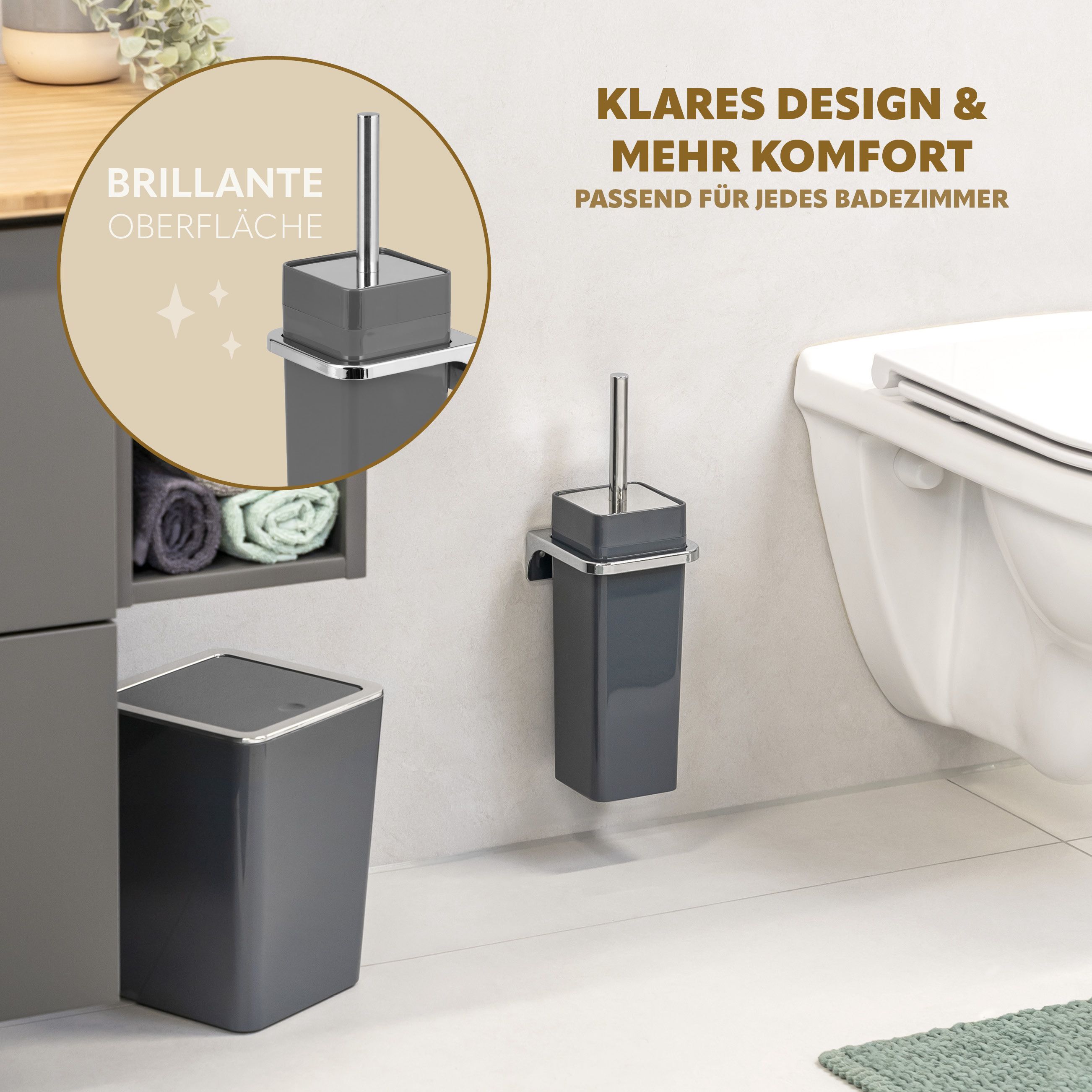 bremermann WC-Garnitur SAVONA inkl. Wandhalterung, eckig - grau