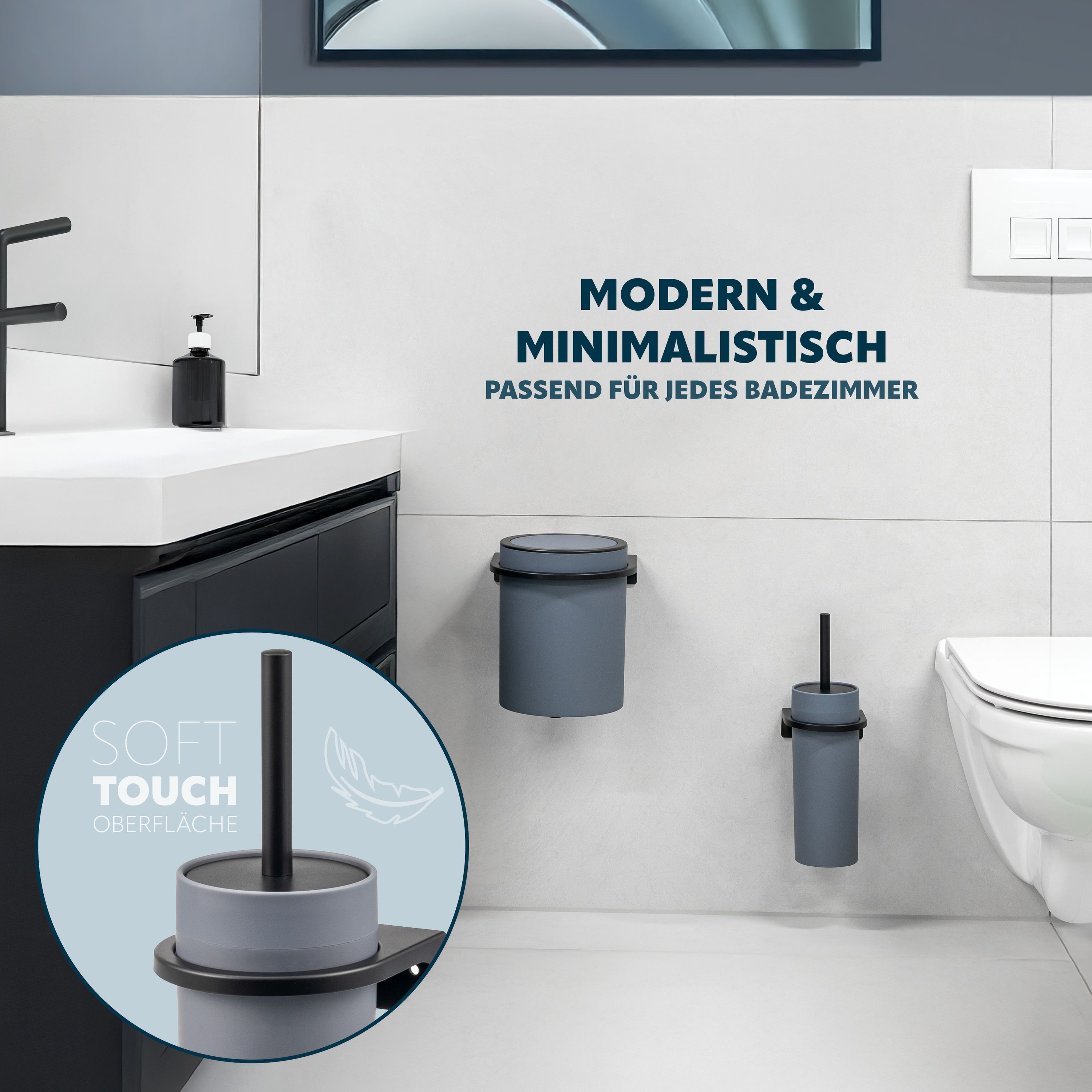 bremermann WC-Garnitur SAVONA Softtouch inkl. Wandhalterung, rund
