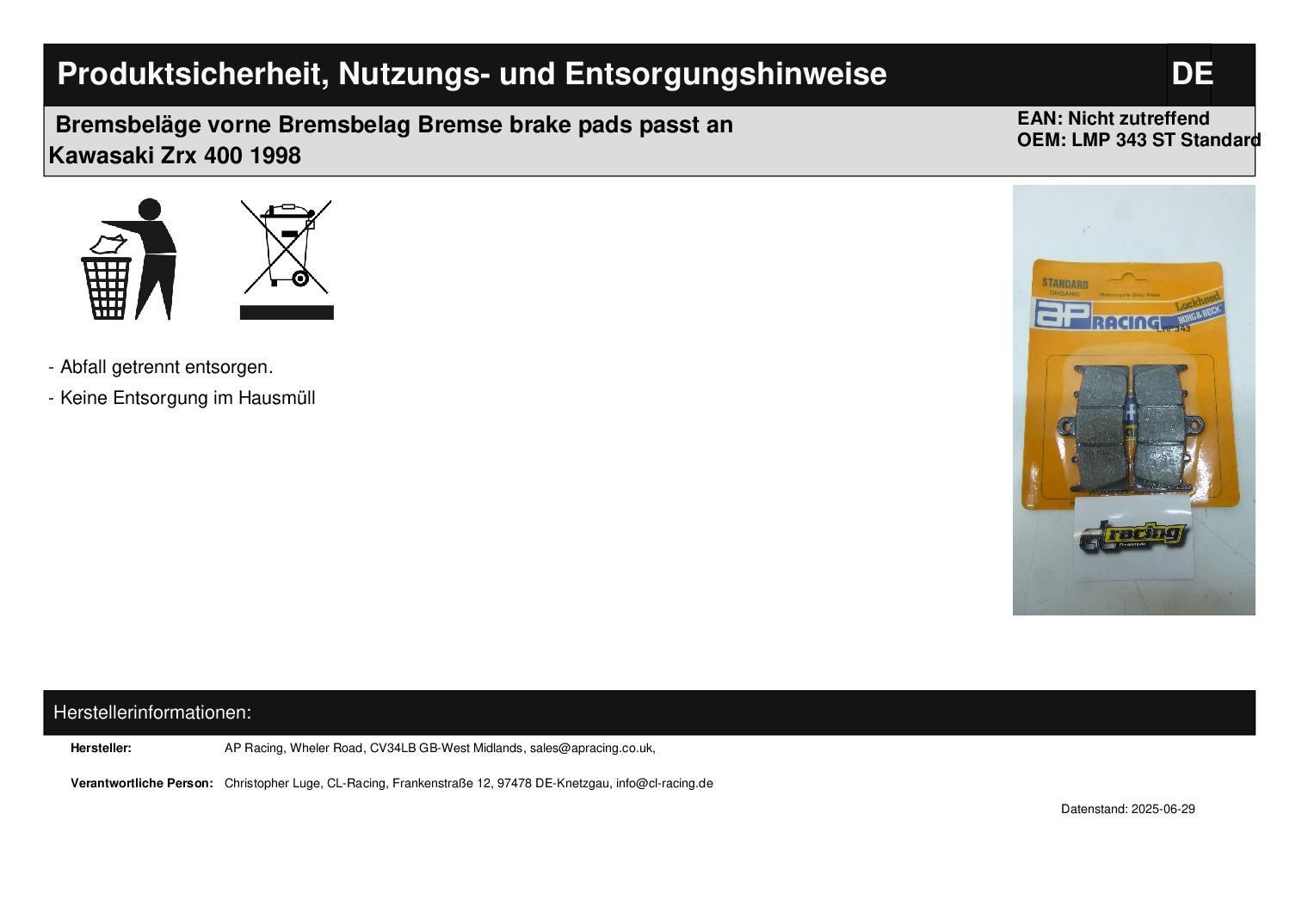 Bremsbeläge vorne Bremsbelag Bremse brake pads passt an Kawasaki Zrx 400 1998 In dieser Auktion gibt es folgenden Artikel zu kaufen: Bremsbeläge vorne (siehe Foto) Modell: passend für Kawasaki ZRX 400 Bj.: 98 Lieferumfang: 1 Paar Artikelzustand: neu Bei Unklarheiten oder Fragen bitte erst E-Mail sch