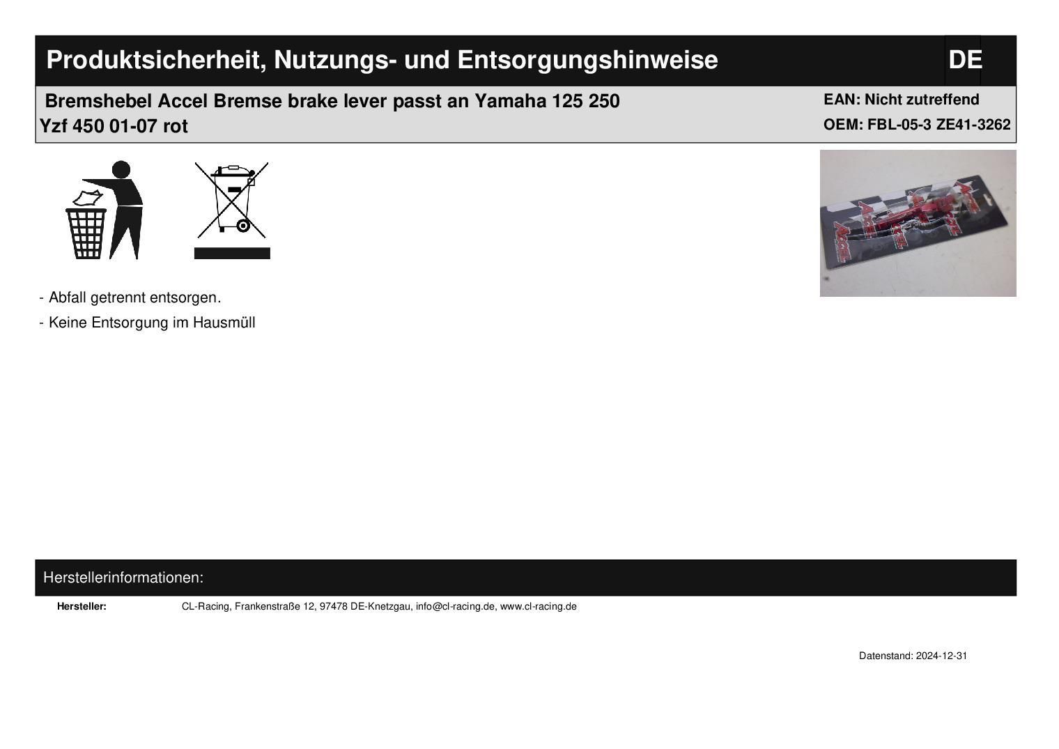 Bremshebel Accel Bremse brake lever passt an Yamaha 125 250 Yzf 450 01-07 rot In dieser Auktion gibt es folgenden Artikel zu kaufen: Bremshebel (siehe Foto) Hersteller: Accel Modell: passend für Yamaha YZ 80, 85 Bj.: 01 - 10 YZ 125, 250 Bj.: 01 - 07 YZF 250 Bj.: 01 - 06 YZF 428, 450 Bj.: 01 - 07 pas