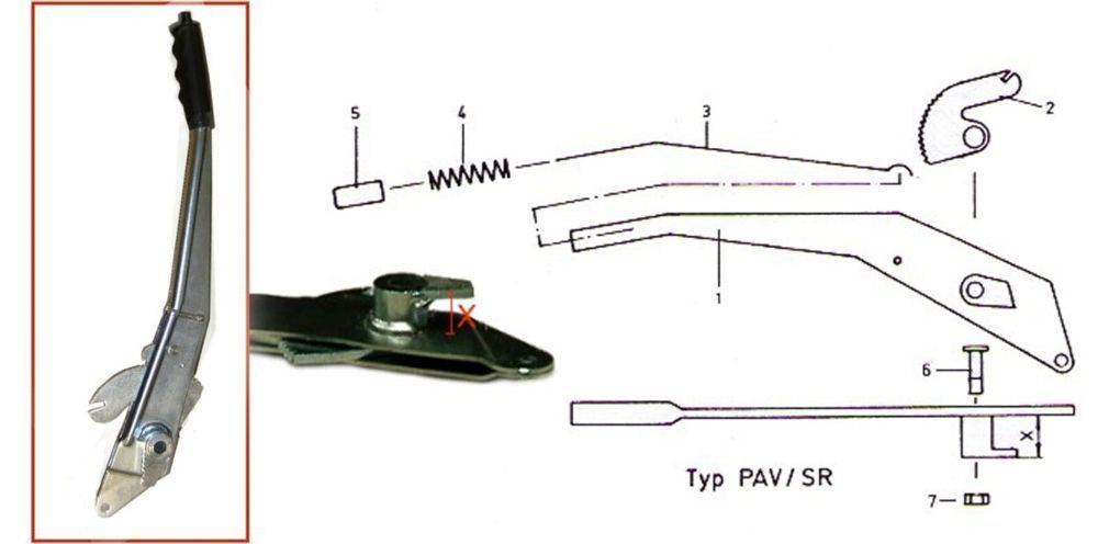 Bremshebel für Peitz PAV/ SR Auflaufbremsen, Handbremshebel mit Maß X=52mm 80025