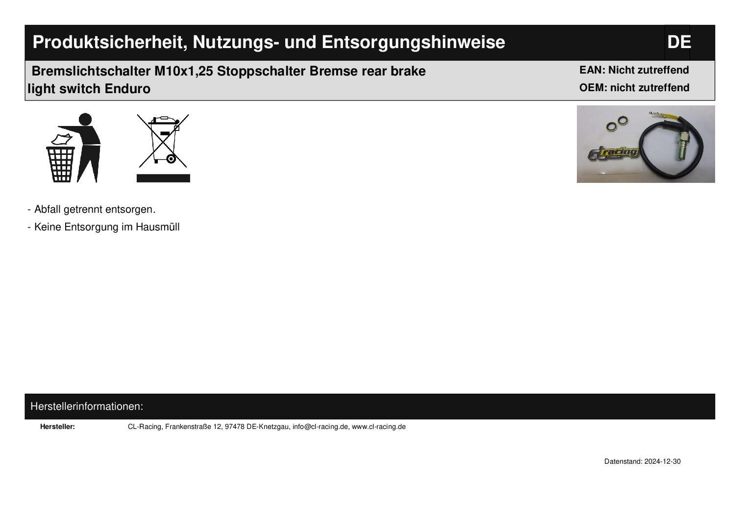 Bremslichtschalter M10x1,25 Stoppschalter Bremse rear brake light switch Enduro