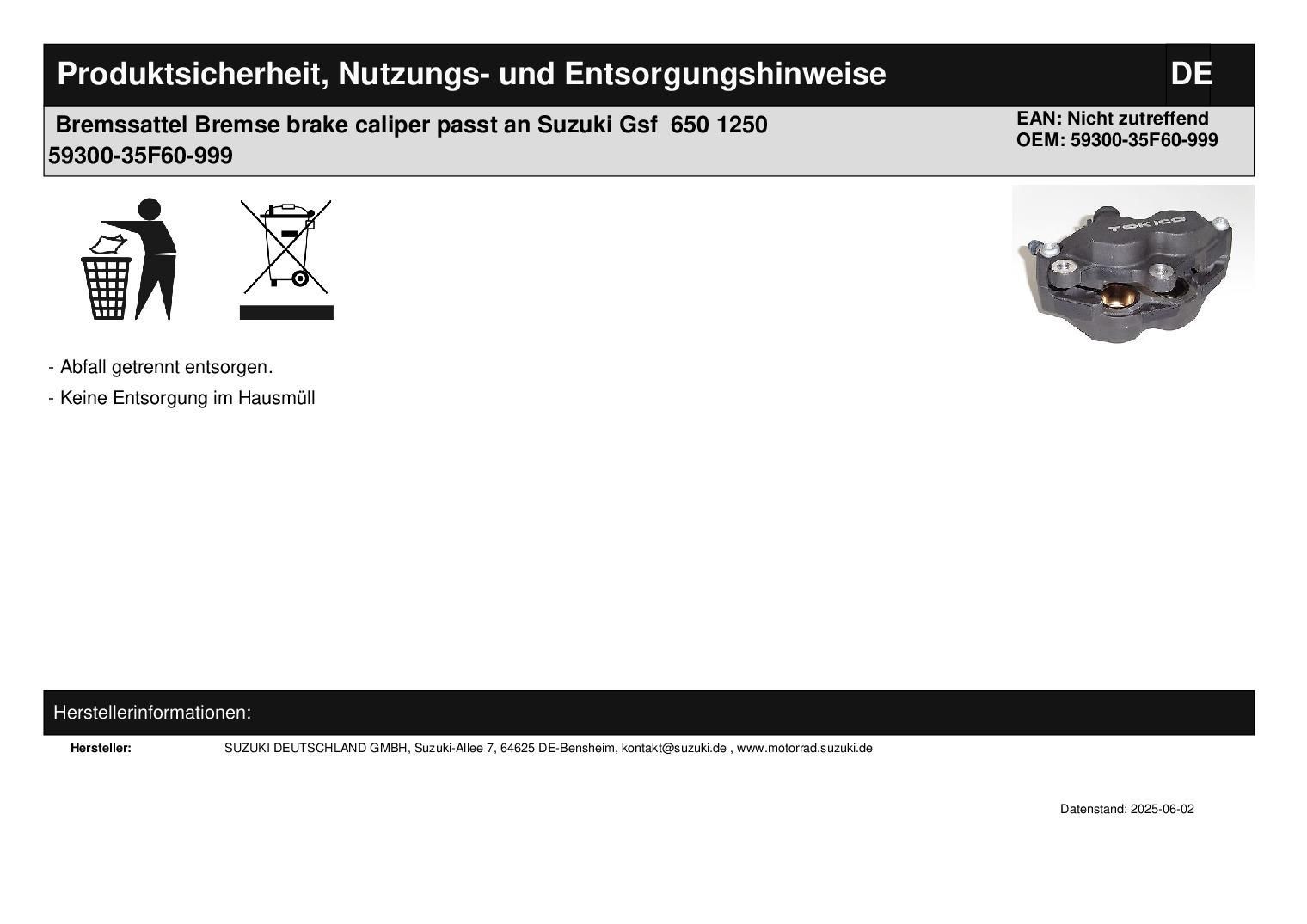 Bremssattel Bremse brake caliper passt an Suzuki Gsf 650 1250 59300-35F60-999