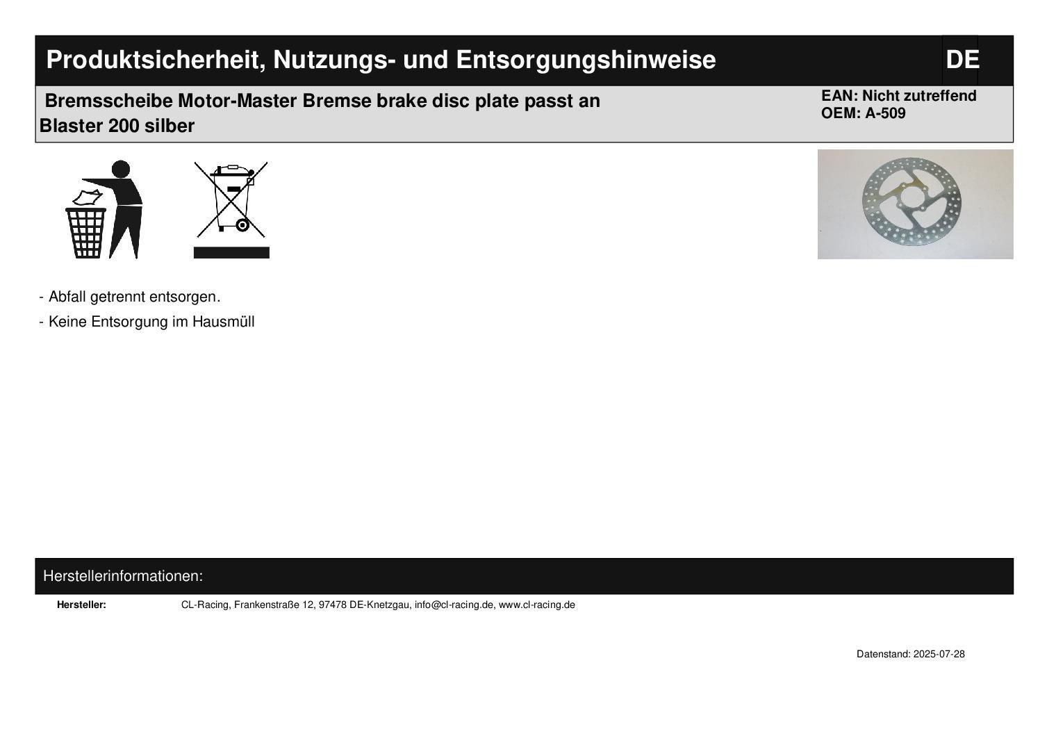 Bremsscheibe Motor-Master Bremse brake disc plate passt an Blaster 200 silber