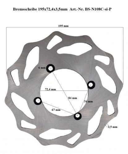 Bremsscheibe Racing NRG 195mm/72,4mm offen Bremse NTR Cross KTM