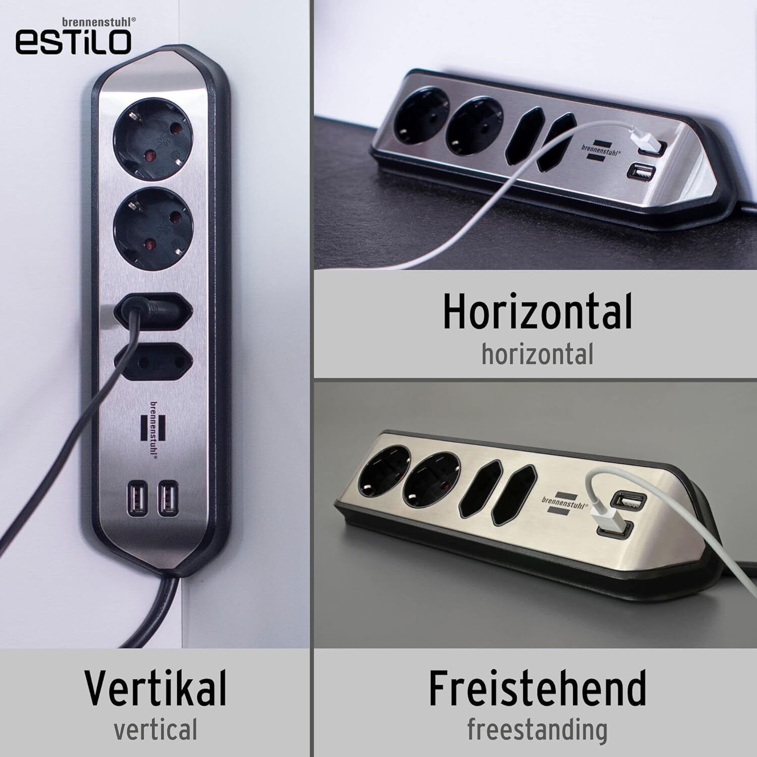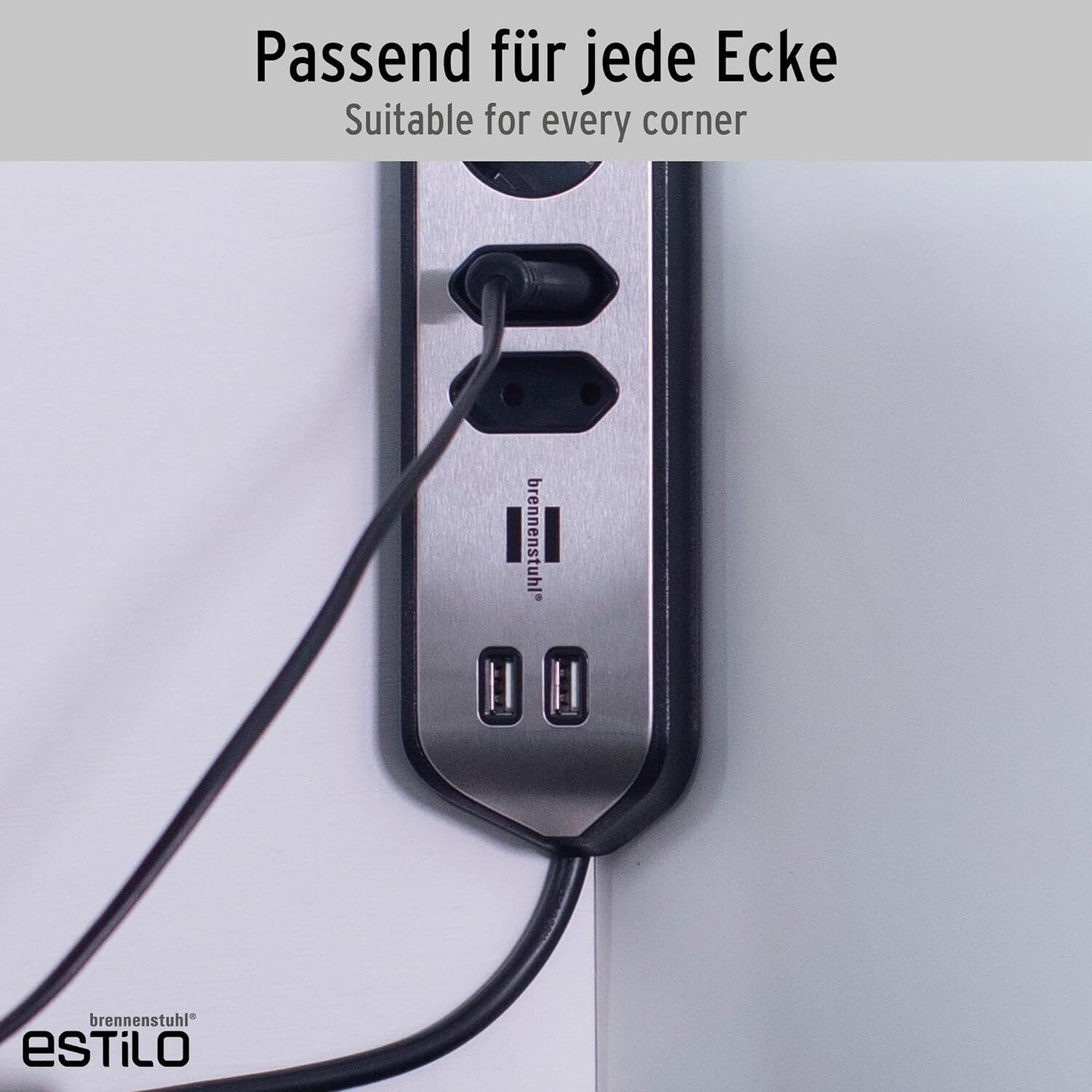 brennenstuhl Brennenstuhl Estilo Ecksteckdosenleiste 4-Fach Tischsteckdose USB Schwarz