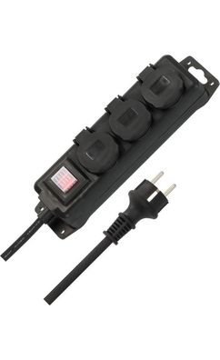 • Steckdosenverteiler H07RN-F 3G1,5 3-fach IP44 Kabel-L.2m Gummi-Neopren schwarz
