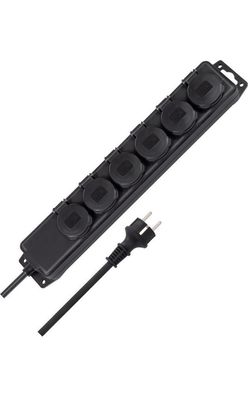 • Steckdosenverteiler H07RN-F 3G1,5 6-fach IP44 Kabel-L.2m Gummi-Neopren schwarz